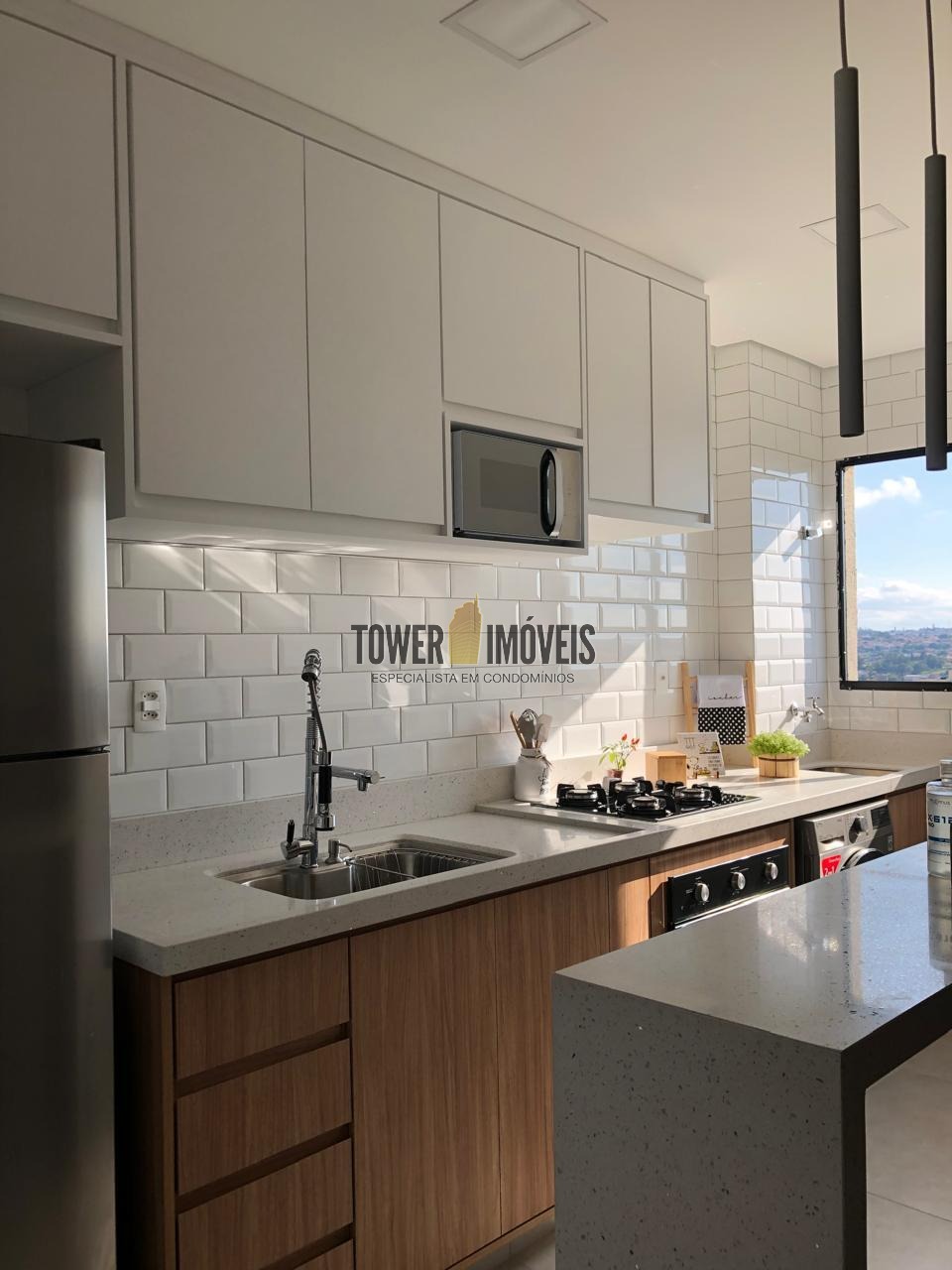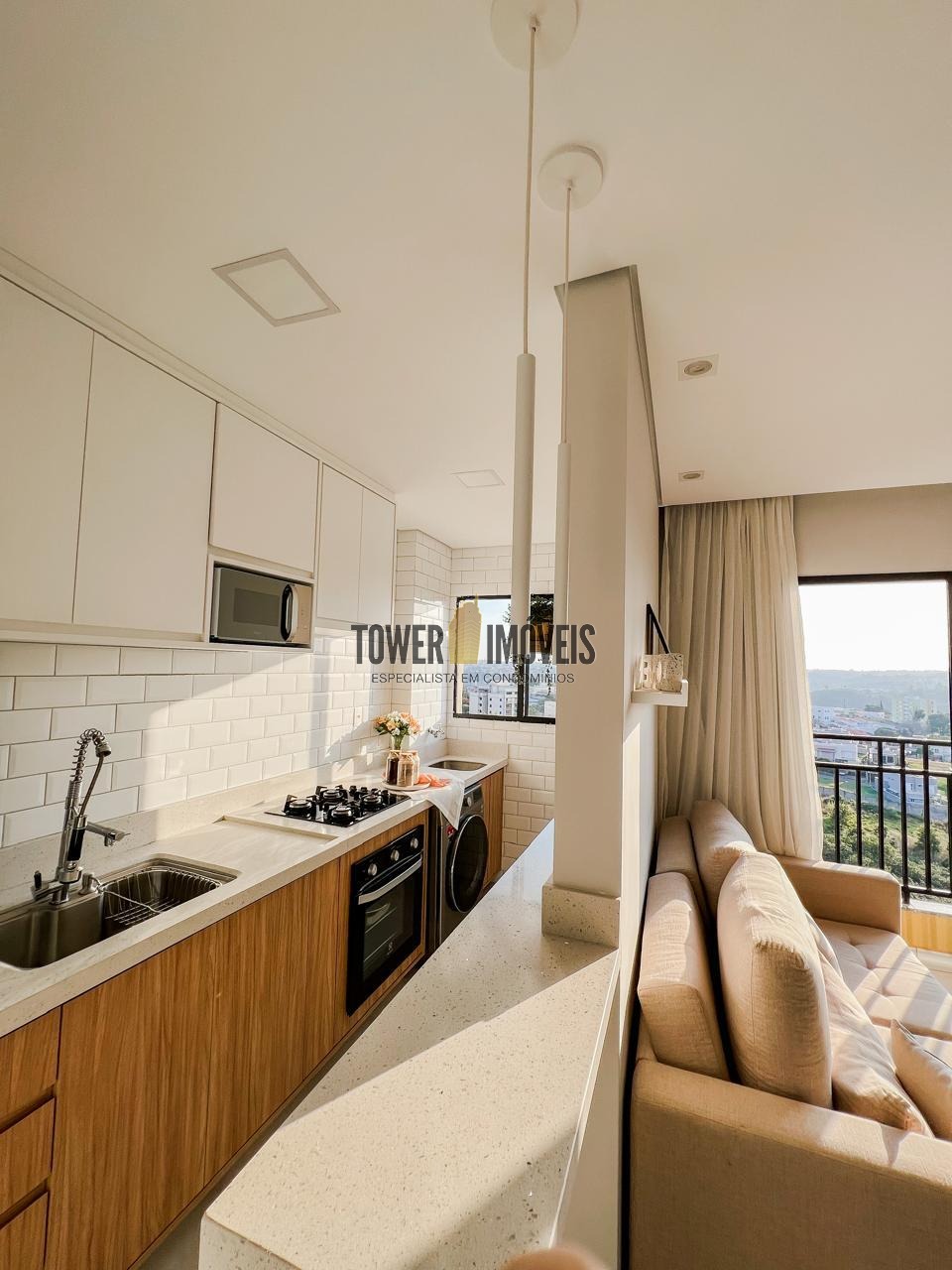 Apartamento com 47m², com 2 quartos, sala, cozinha e área de serviço, rico em armários e uma vista da varanda espetacular!