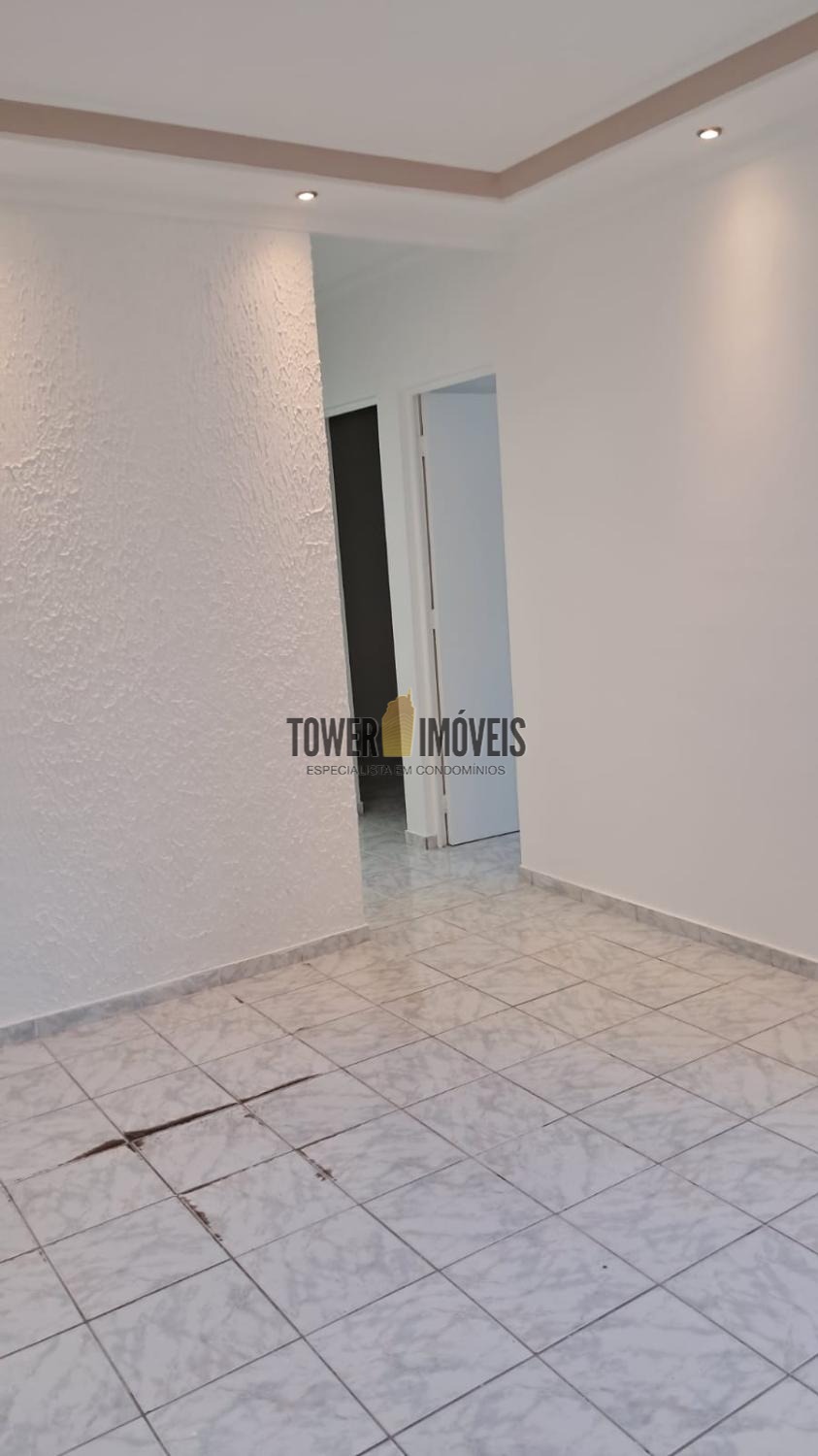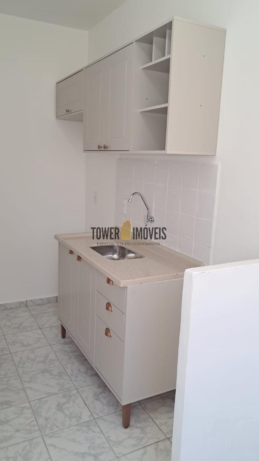 Apartamento de 45 m², composto por 2 quartos, sala, cozinha planejada, 1 banheiro e 1 vaga de garagem.