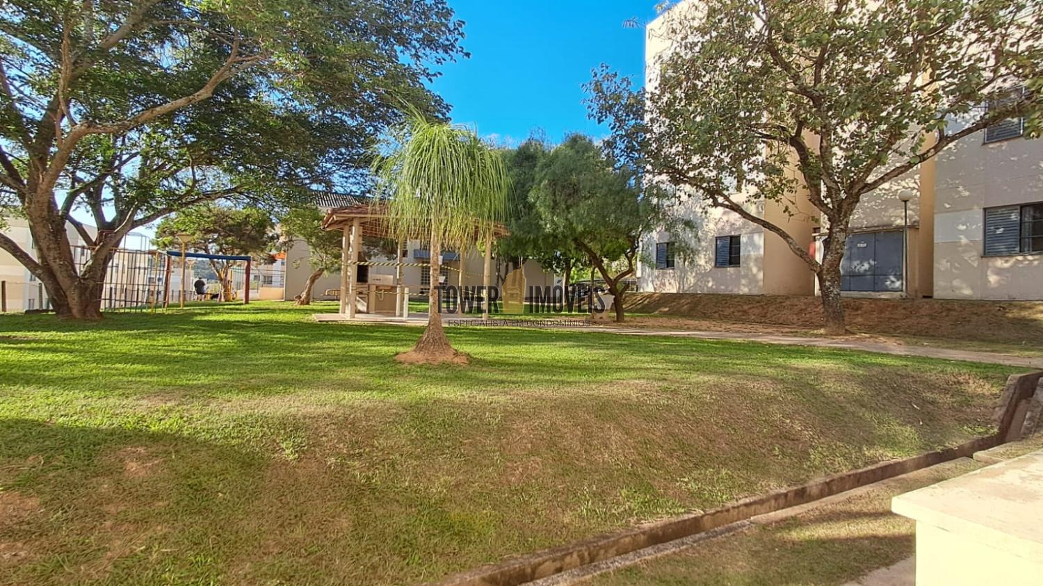 Condomínio conta com salão de festas, campo de futebol, quiosque com churrasqueiras, e playground.