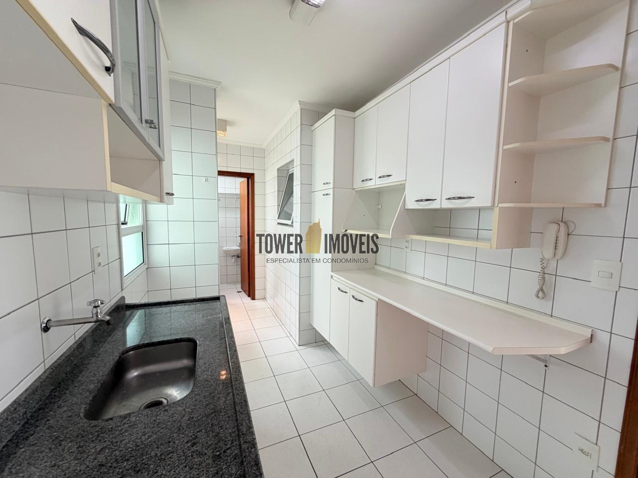 A cozinha planejada é funcional e moderna, integrada à área de serviço. O apartamento dispõe ainda de 3 vagas de garagem, um grande diferencial na categoria.