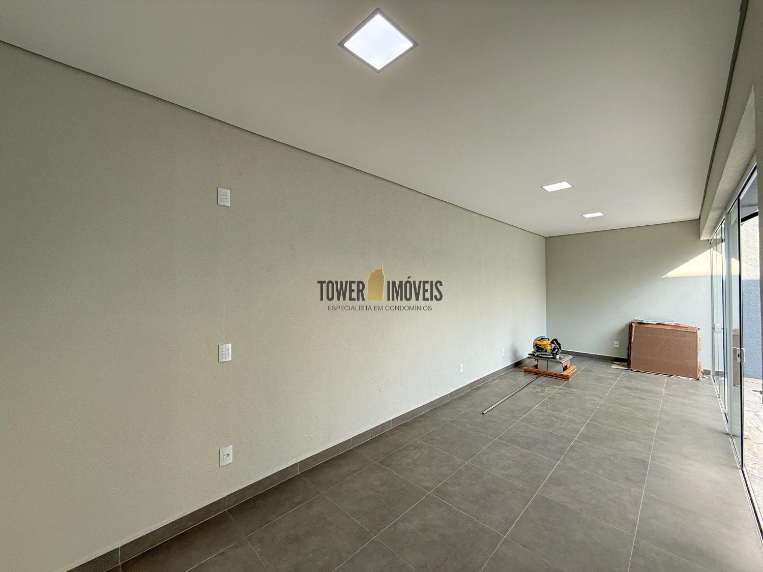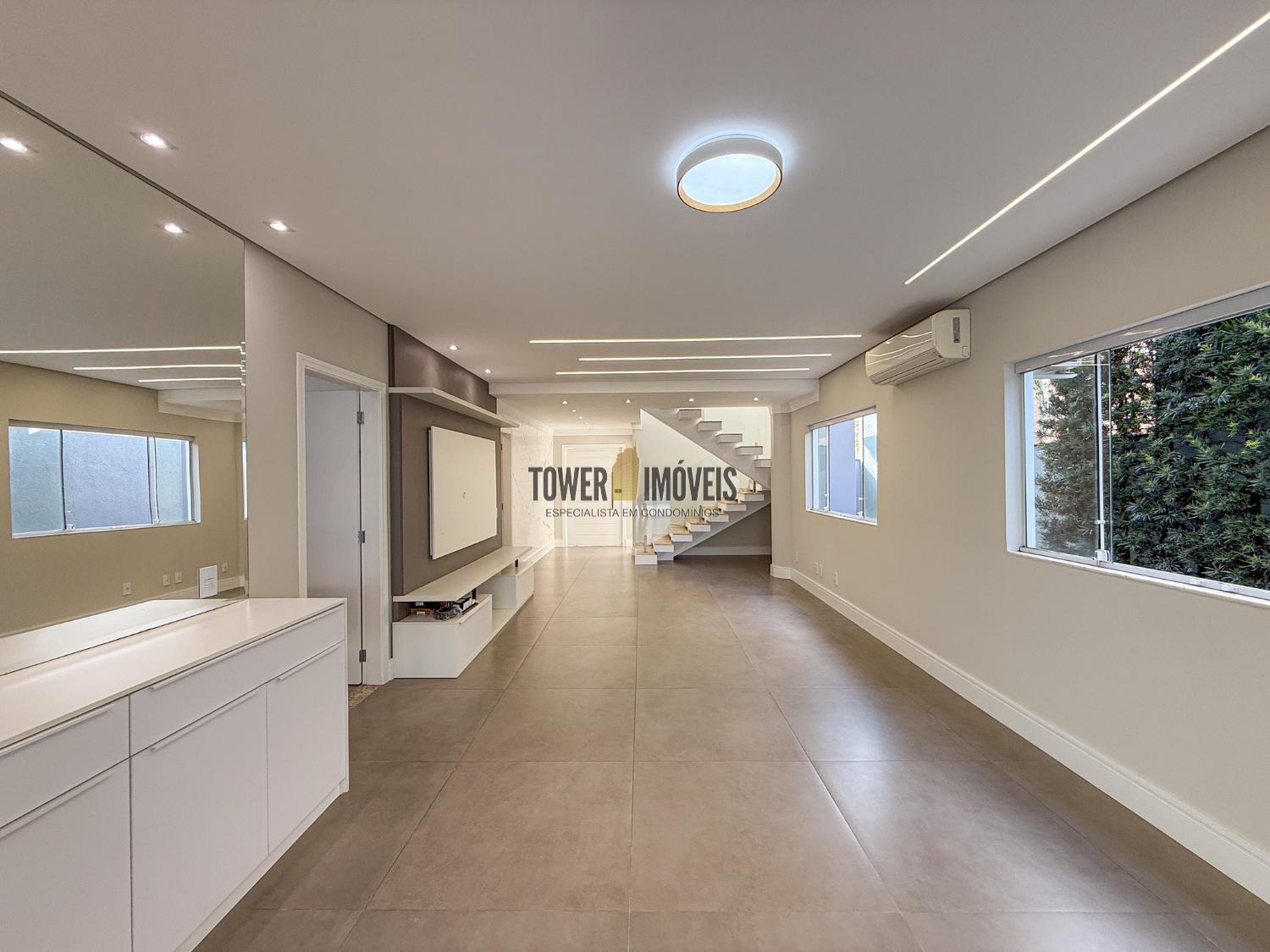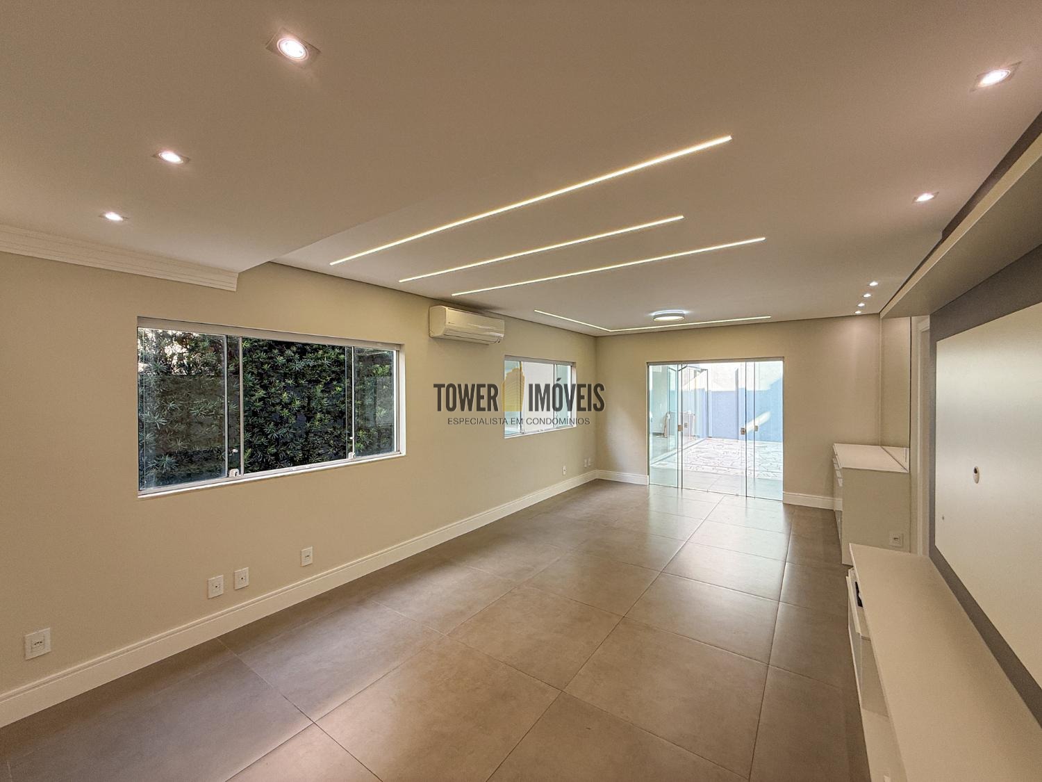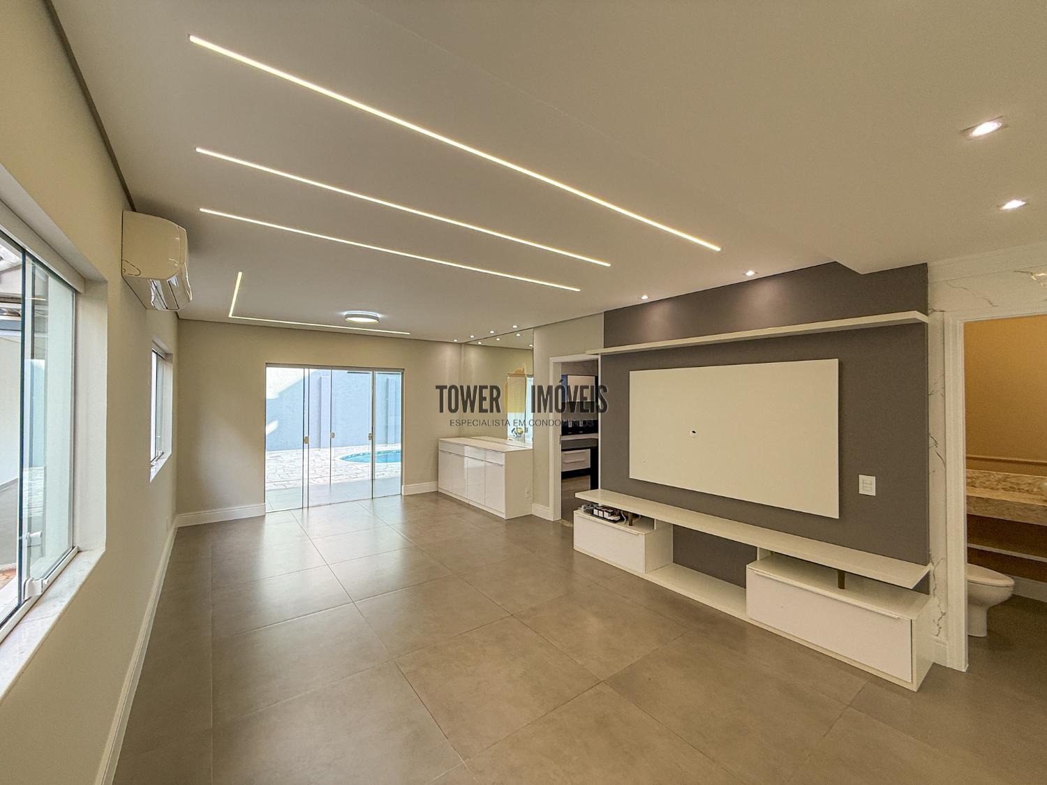 - Sala de estar com painel de TV
