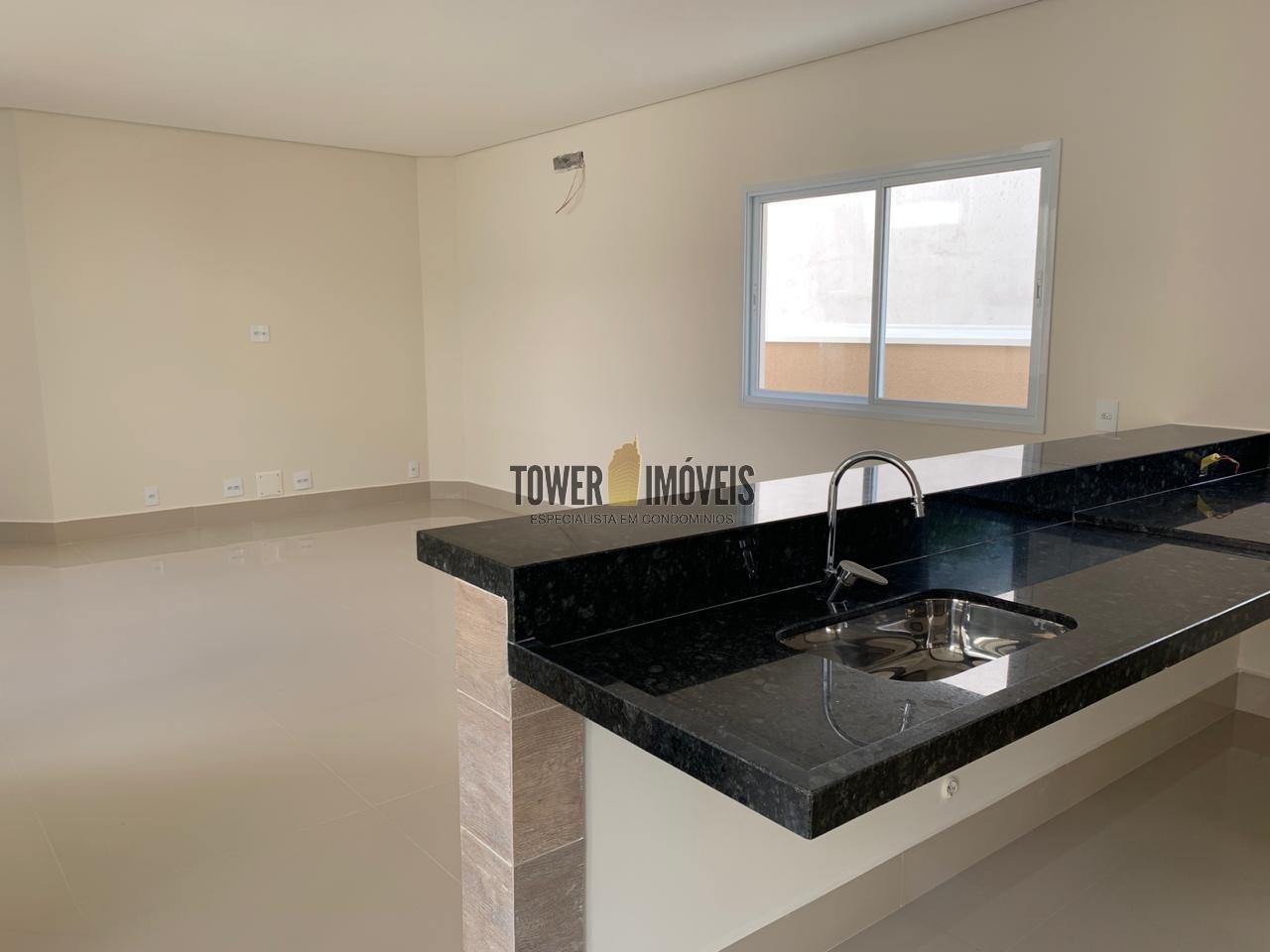 Espaço gourmet integrado a cozinha e com churrasqueira.