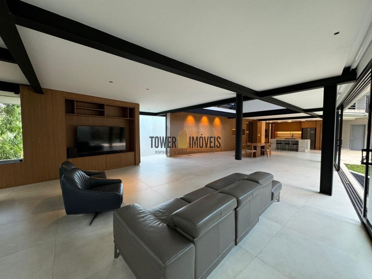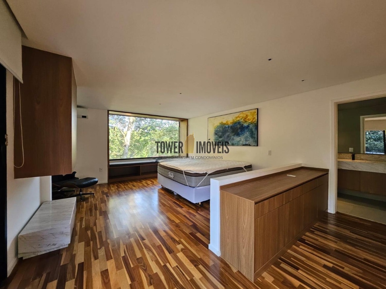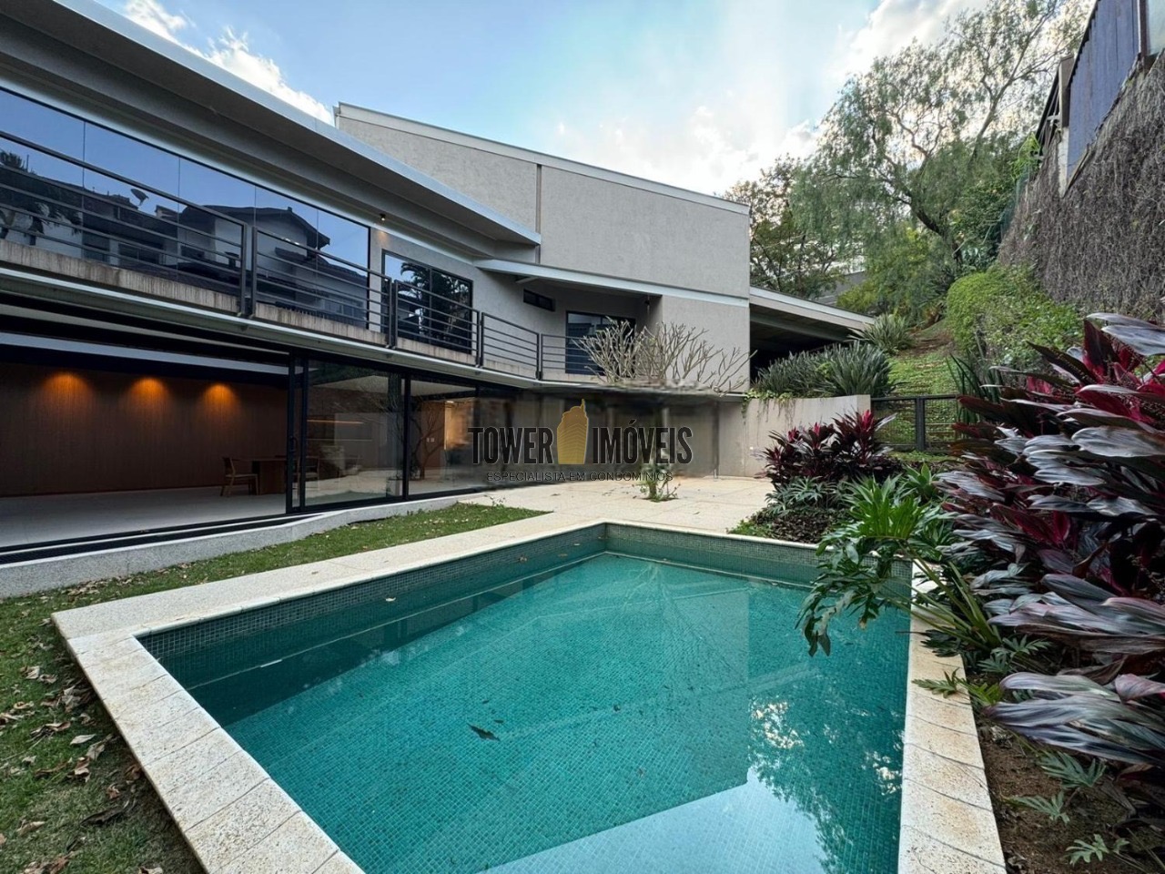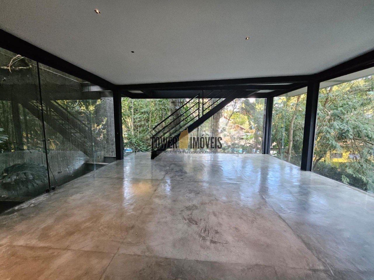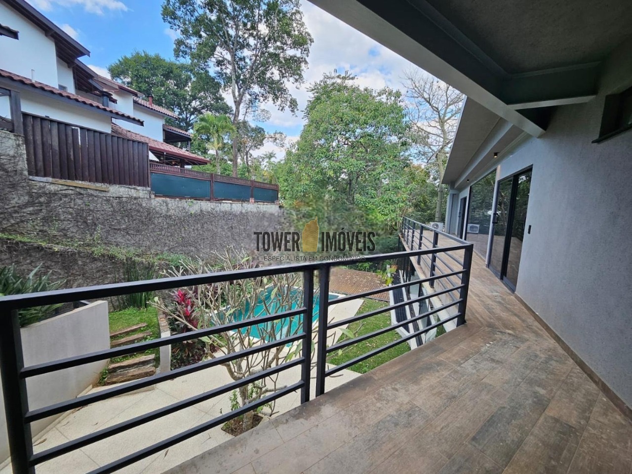 Possui 3 suítes com armários embutidos, sendo 2 suítes com closet e a suíte do casal com cortina automatizada, sala de estar, sala de jantar ampla, cozinha americana com armários embutidos, lavanderia, lavabo, belíssimo quintal rodeado por muita área verde, piscina, sala de TV com fechamento em vidro, vista para mata e com banheiro social.