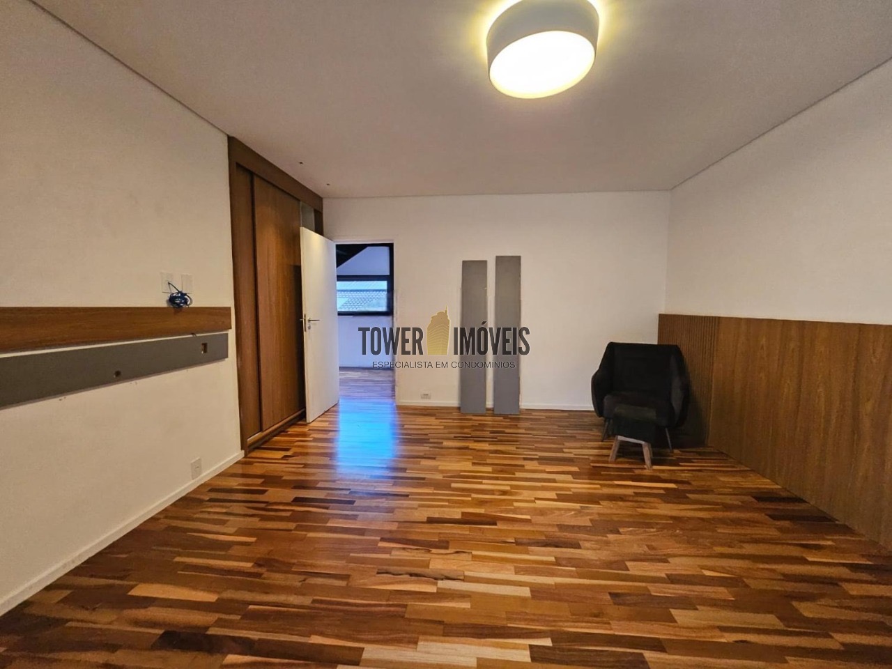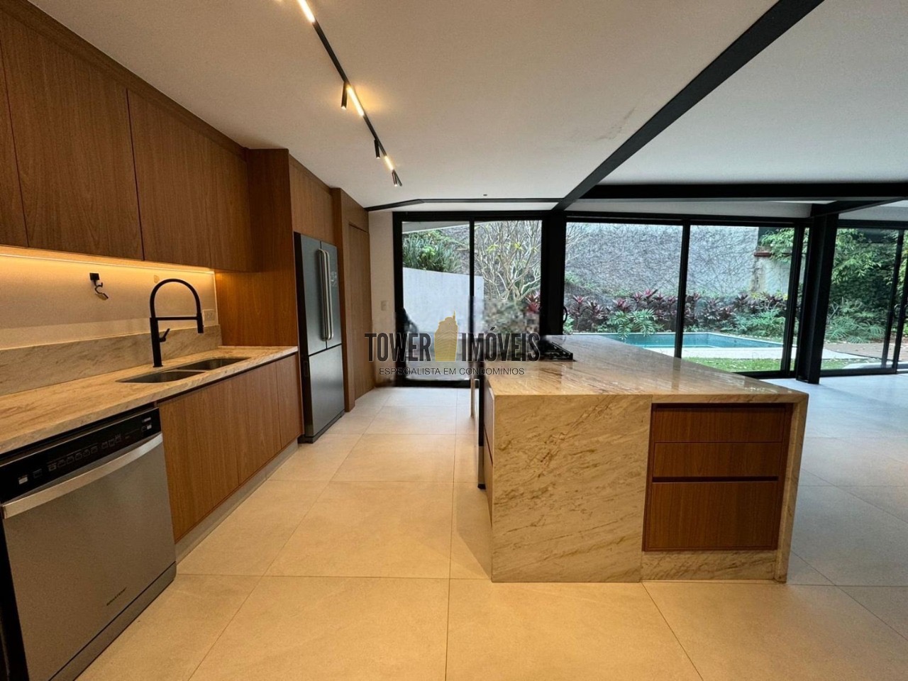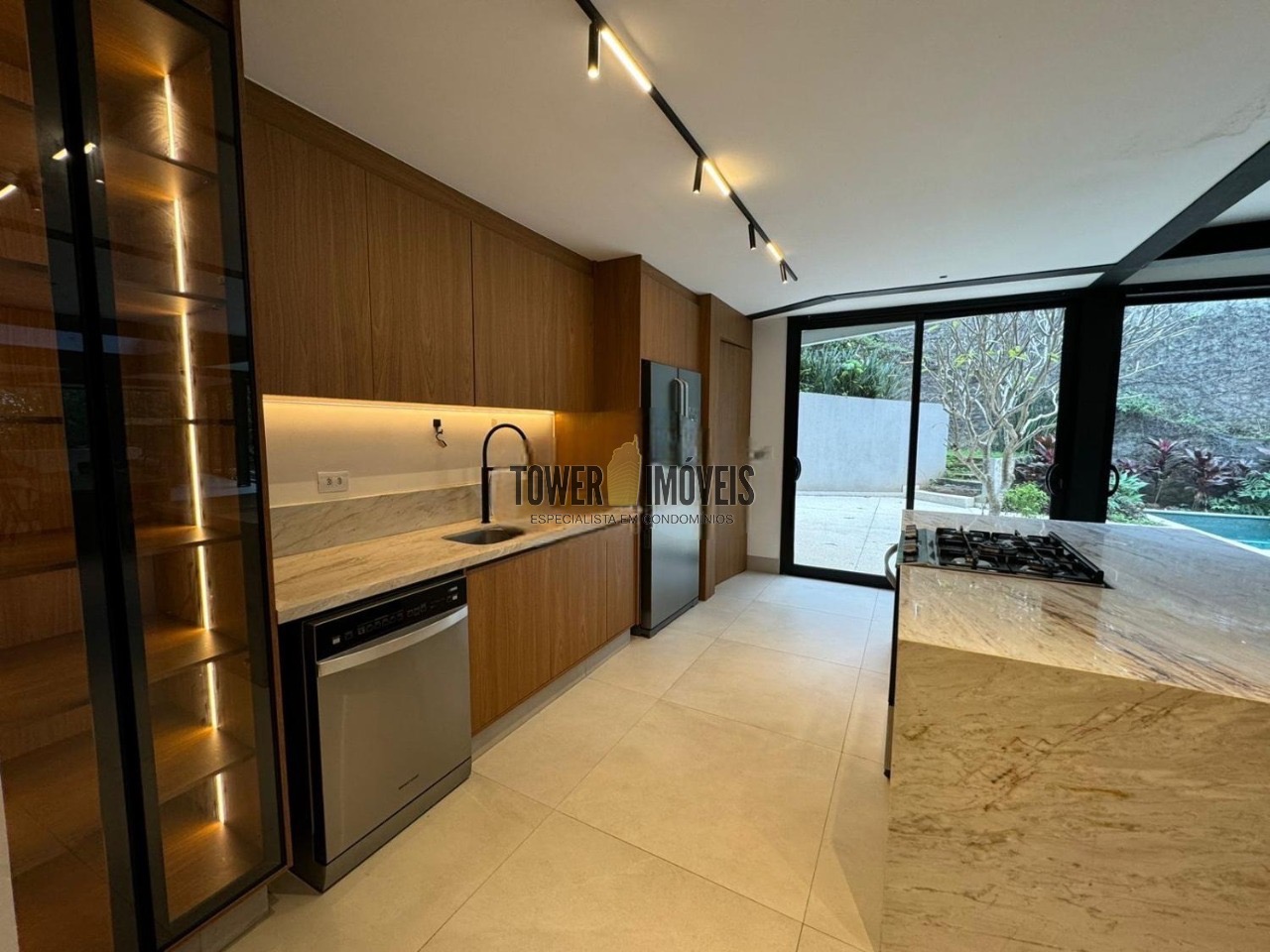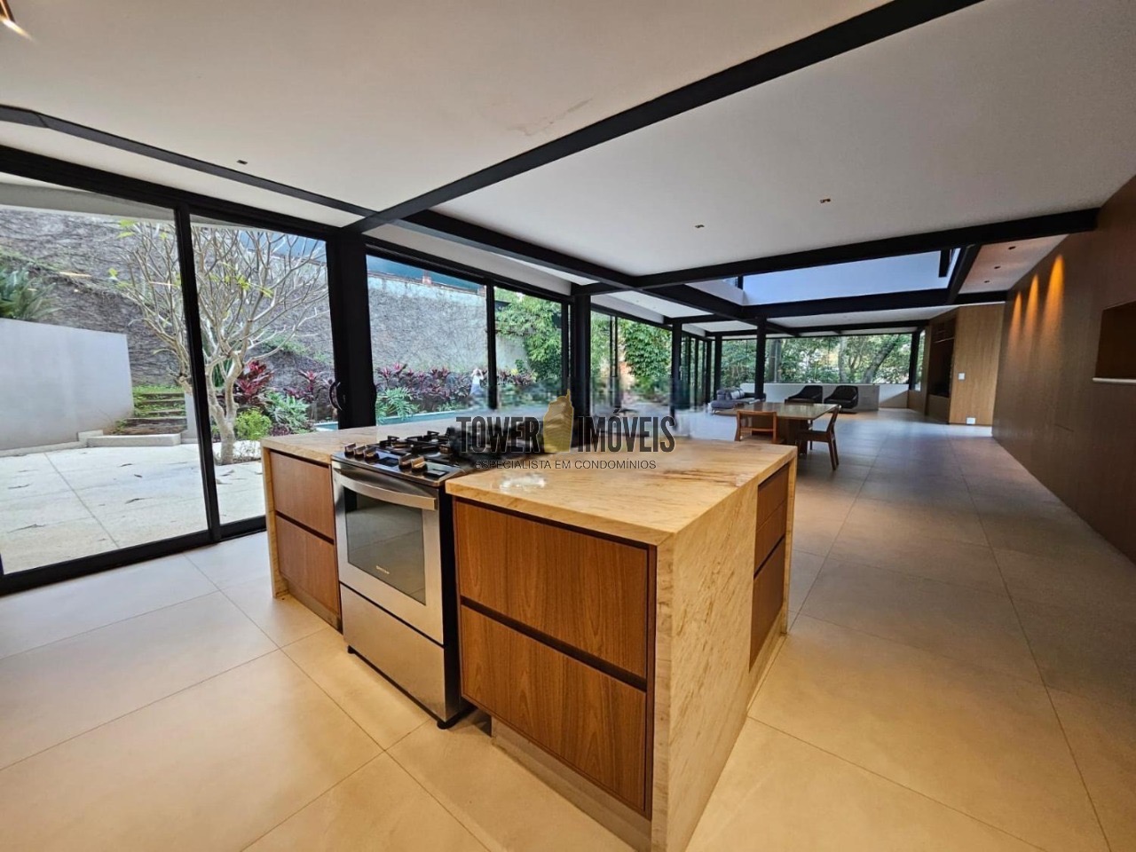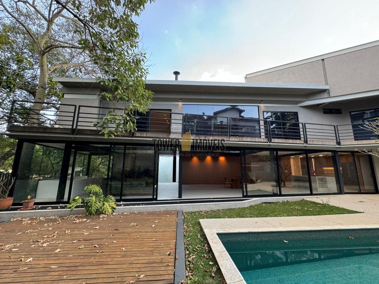 Possui 3 suítes com armários embutidos, sendo 2 suítes com closet e a suíte do casal com cortina automatizada, sala de estar, sala de jantar ampla, cozinha americana com armários embutidos, lavanderia, lavabo, belíssimo quintal rodeado por muita área verde, piscina, sala de TV com fechamento em vidro, vista para mata e com banheiro social.