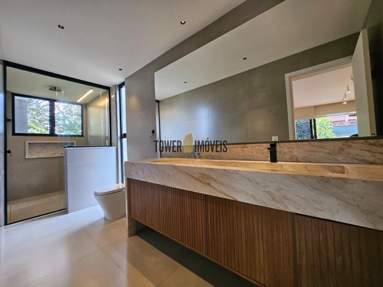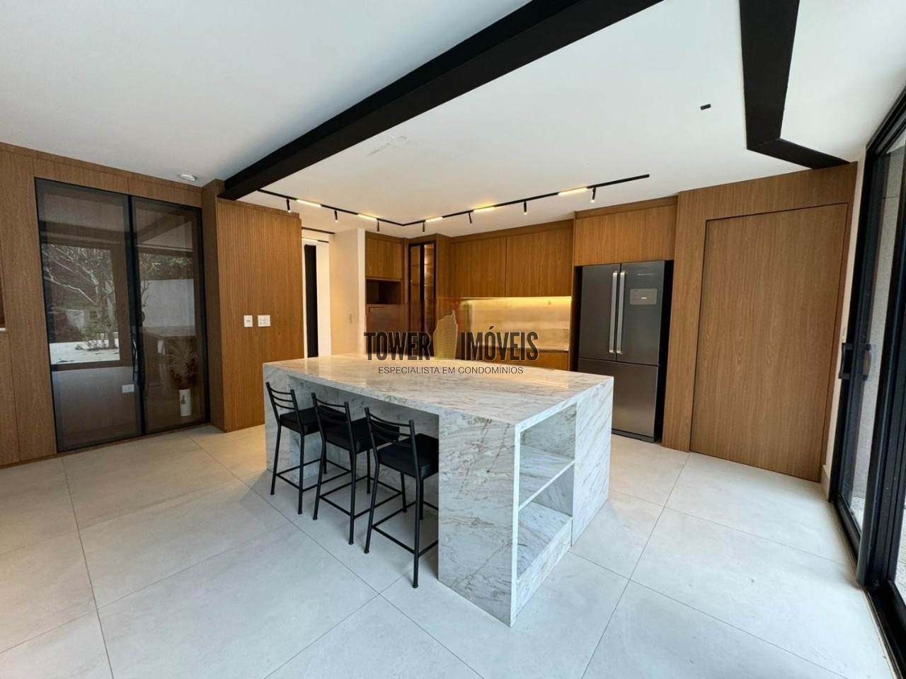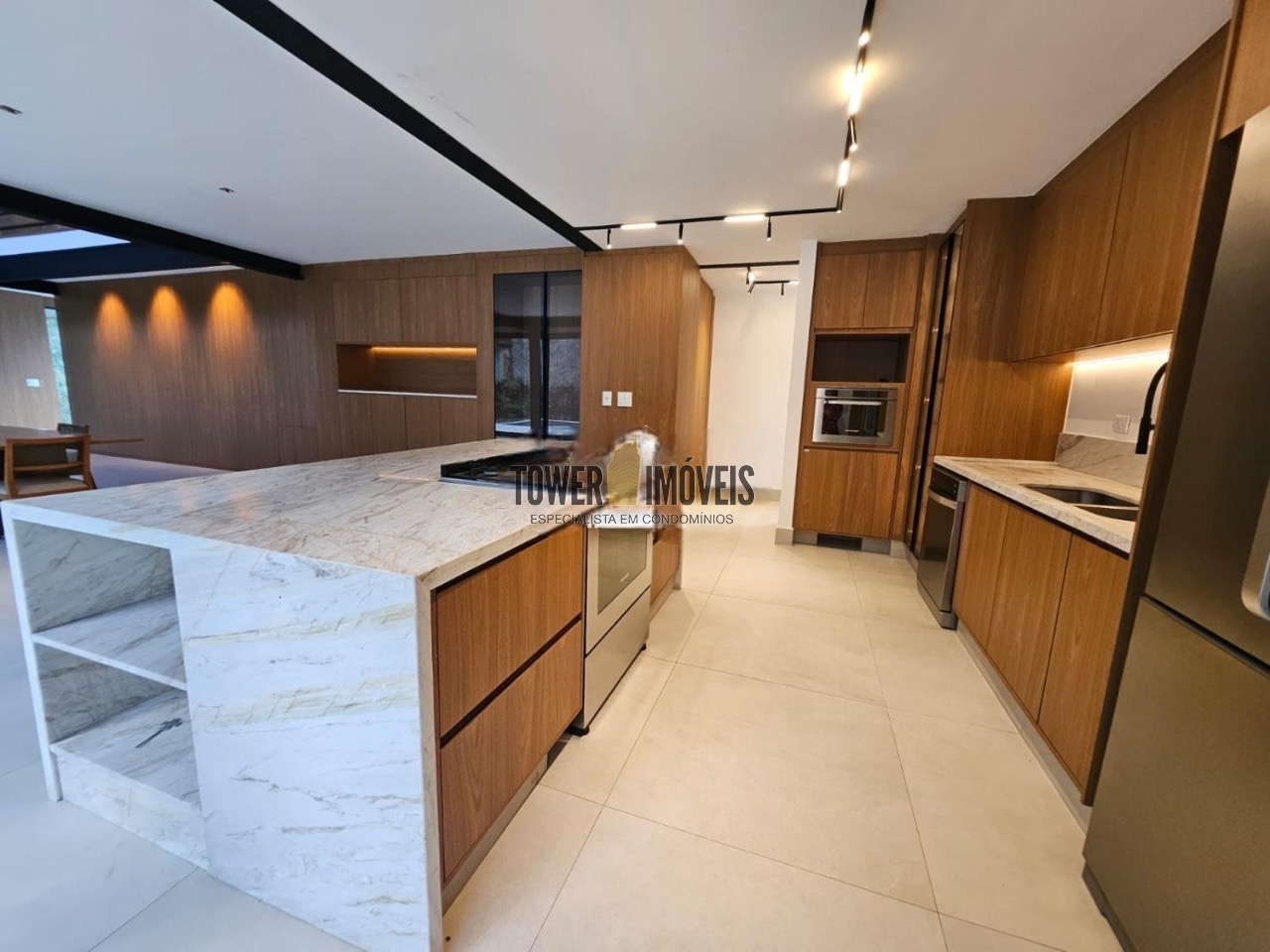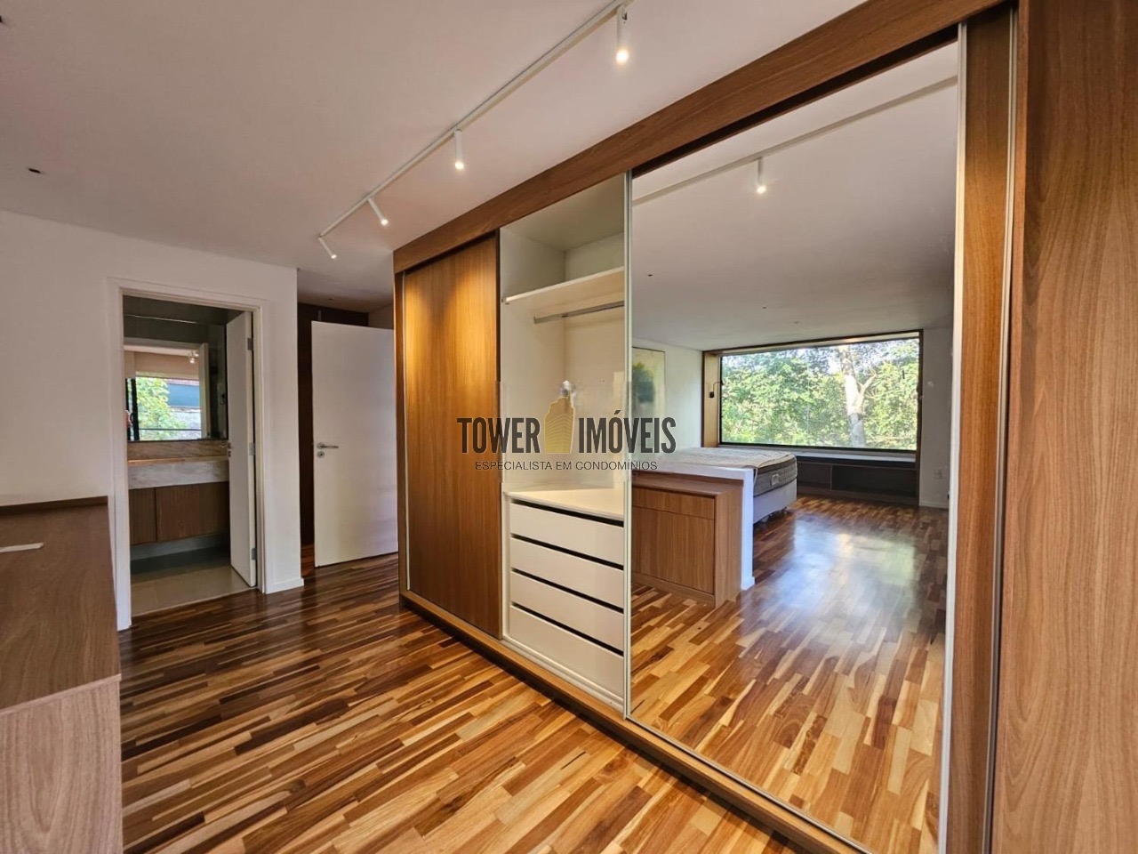 Possui 3 suítes com armários embutidos, sendo 2 suítes com closet e a suíte do casal com cortina automatizada, sala de estar, sala de jantar ampla, cozinha americana com armários embutidos, lavanderia, lavabo, belíssimo quintal rodeado por muita área verde, piscina, sala de TV com fechamento em vidro, vista para mata e com banheiro social.