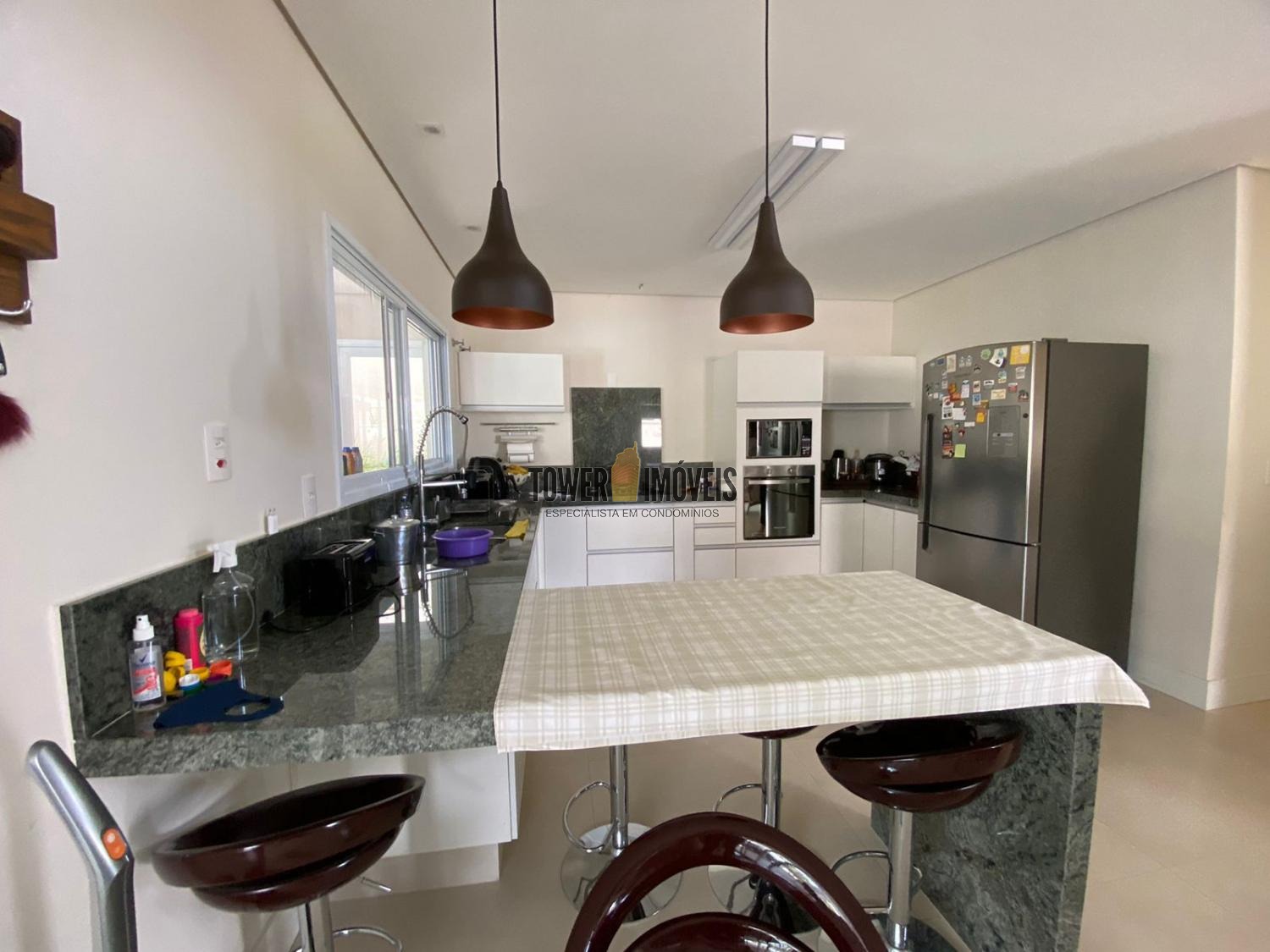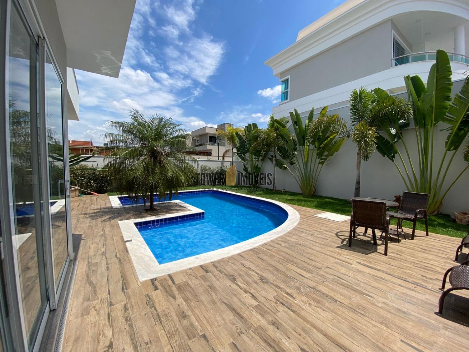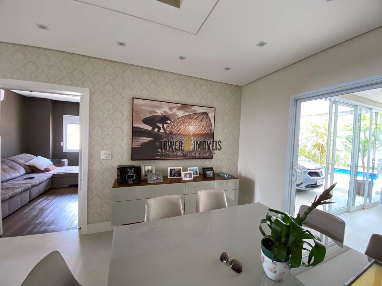 Lindo sobrado, com 4 suítes, sendo 1 suíte no piso térreo, lavabo, salas de estar, jantar e TV, área gourmet completa, com churrasqueira e forno de pizza. No piso superior tem 3 suítes, escritório, roupeiro, varandas espaçosas com linda vista, área de piscina e garagem coberta. O Residencial fica próximo ao comercio local no complexo condominial.