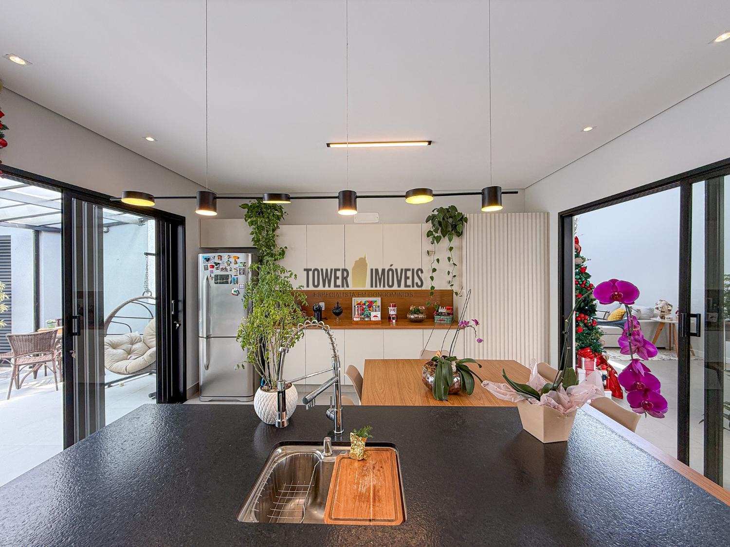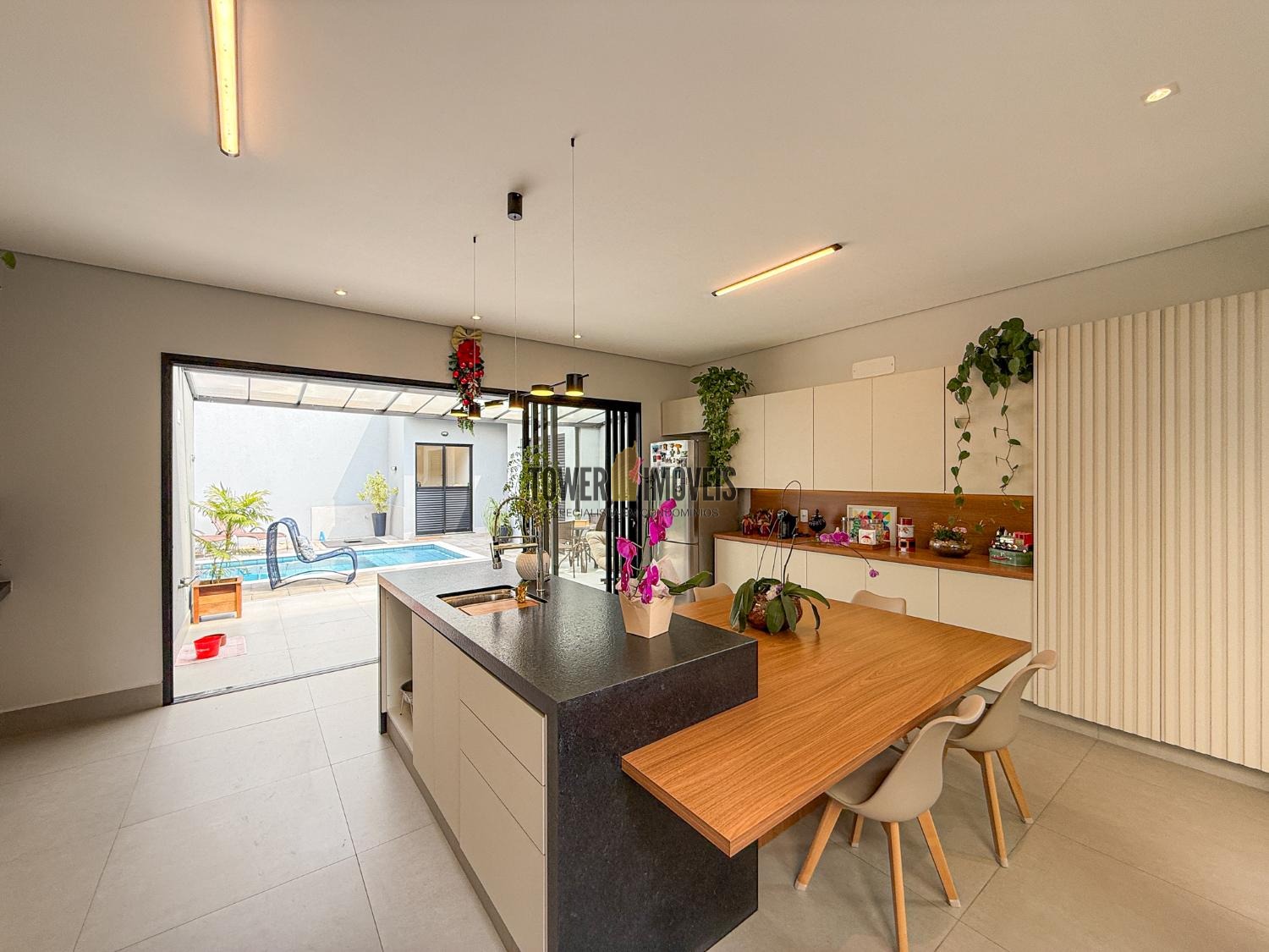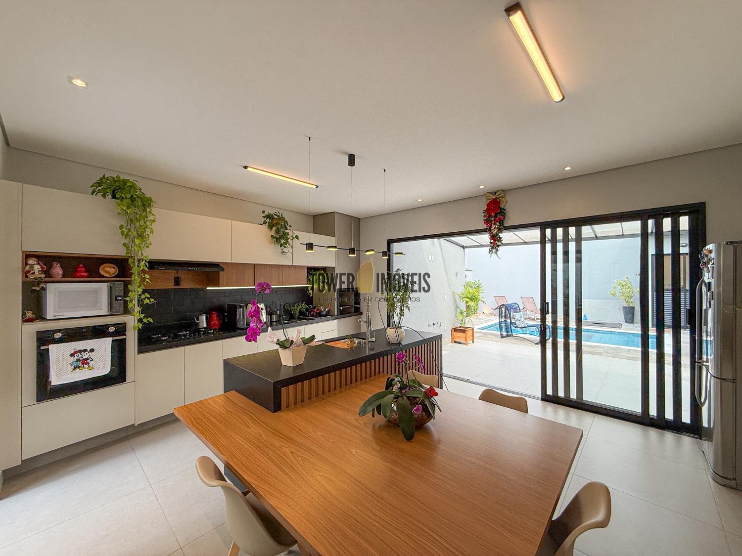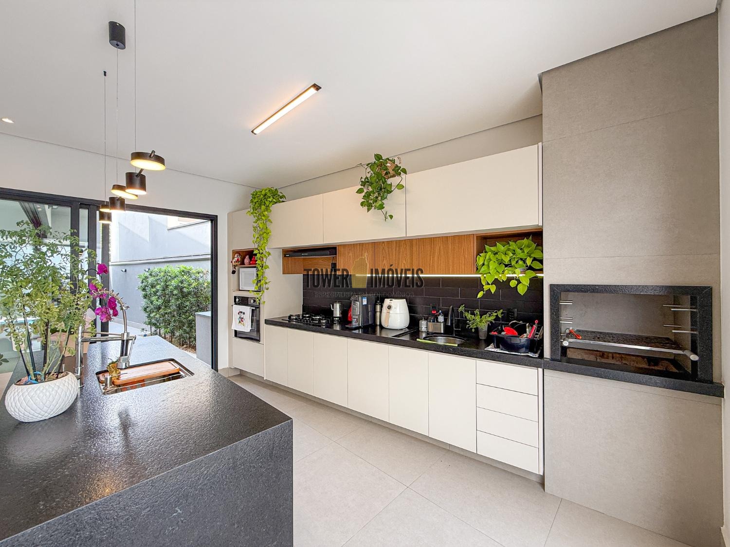 - Cozinha completa com churrasqueira, Cooktop, Forno Elétrico e mesa planejada