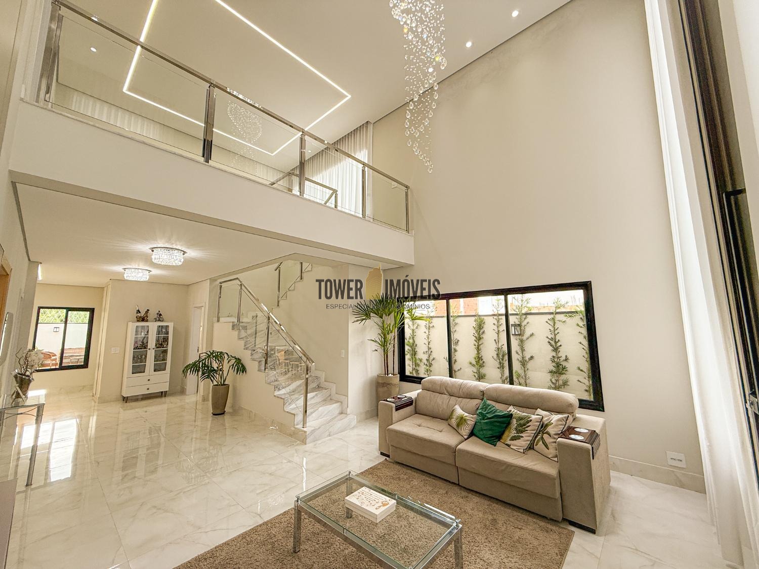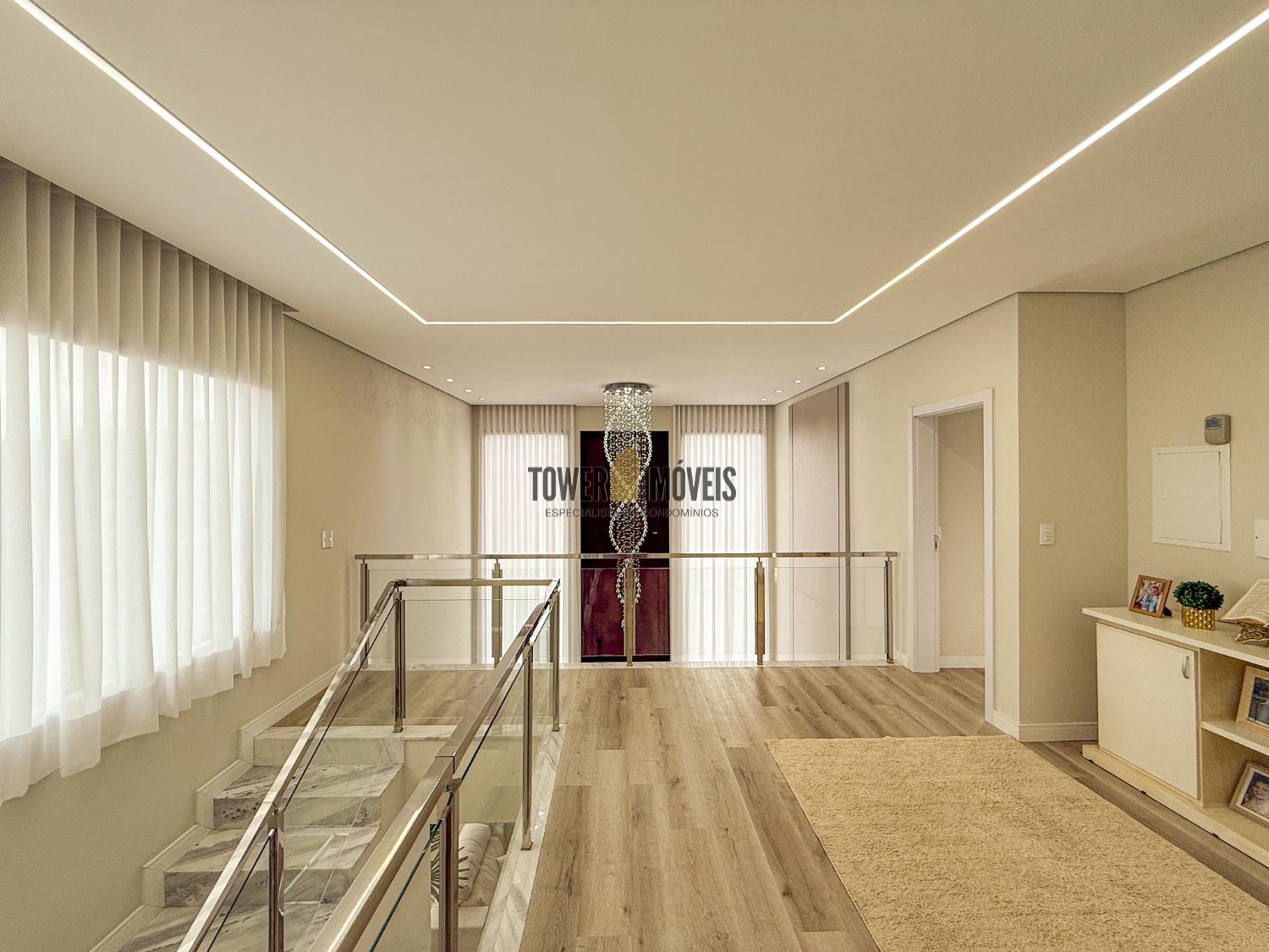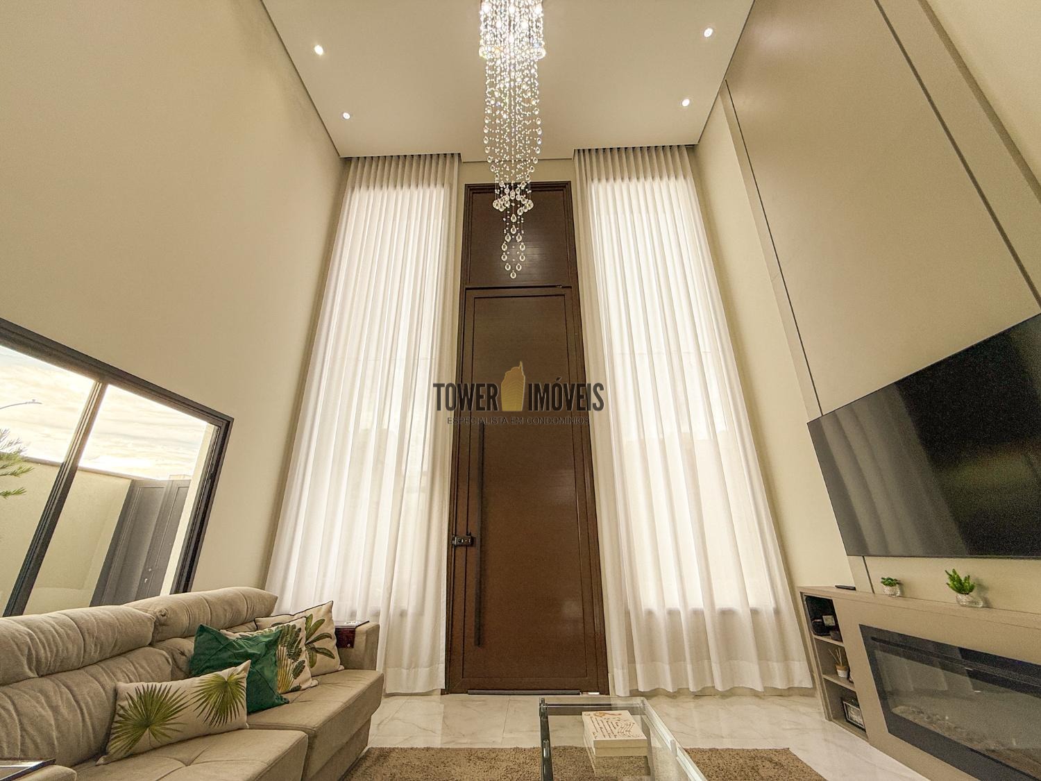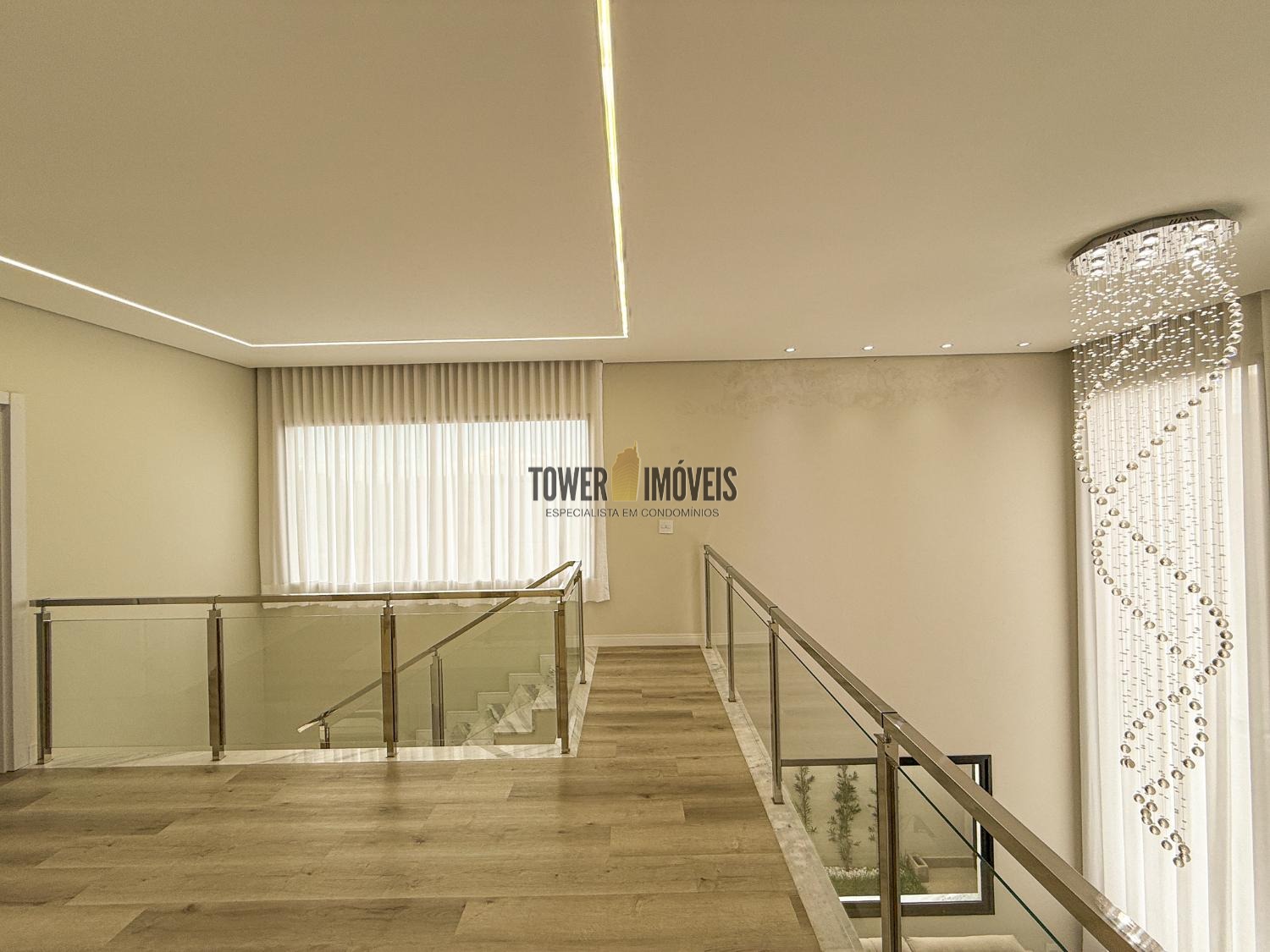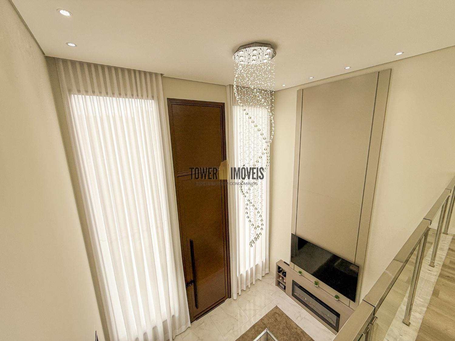 Projeto moderno, sofisticado e prático. Com ótimos acabamentos, projeto de iluminação em Led na casa toda. Piso inferior todo integrado, com sala de estar ampla, lareira elétrica, pé direito alto, lavabo, suíte térrea com varanda, linda cozinha americana repleta de armários, balcão, despensa, área de serviço com armários.