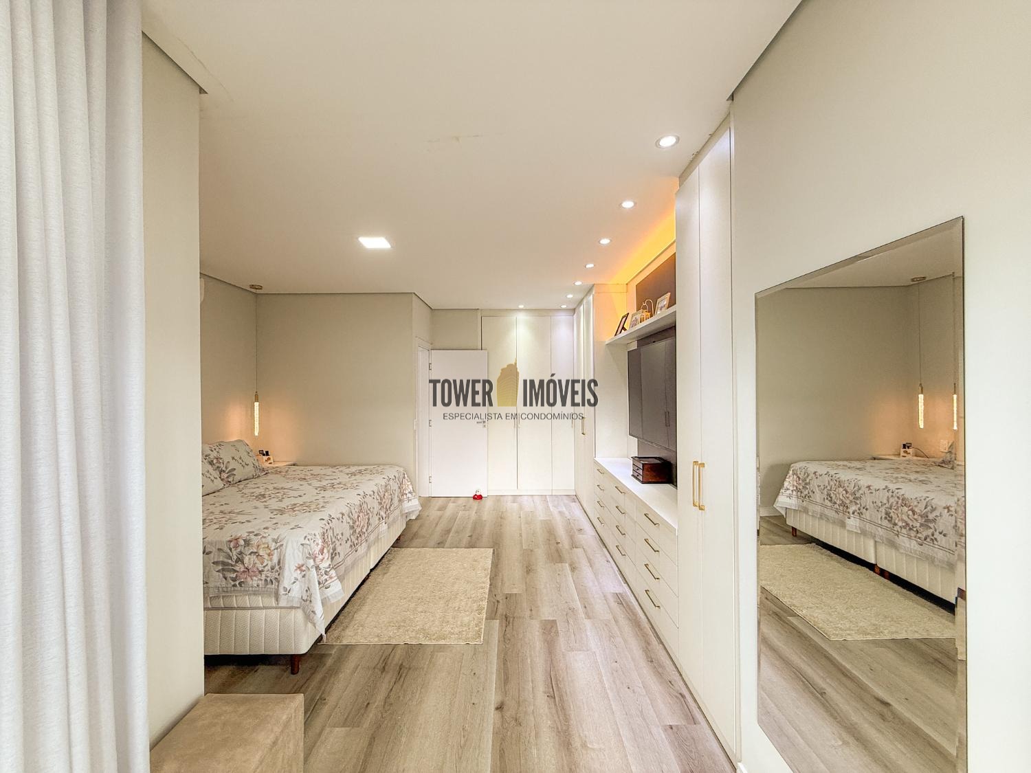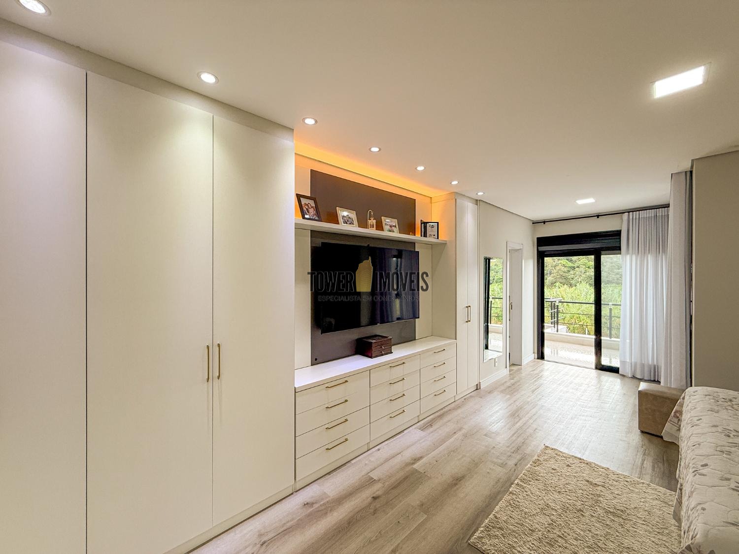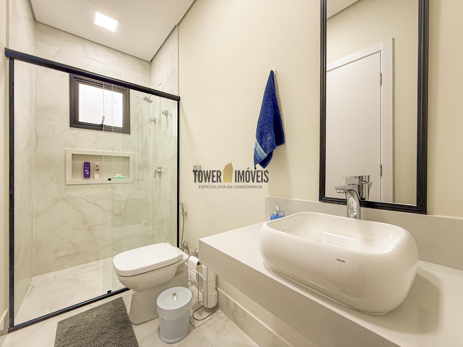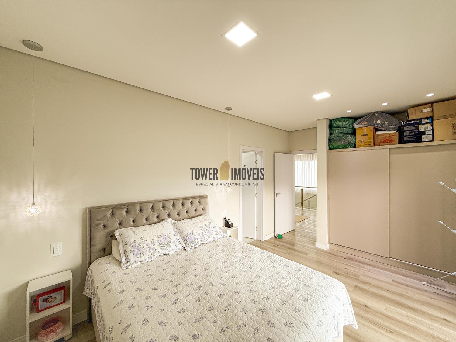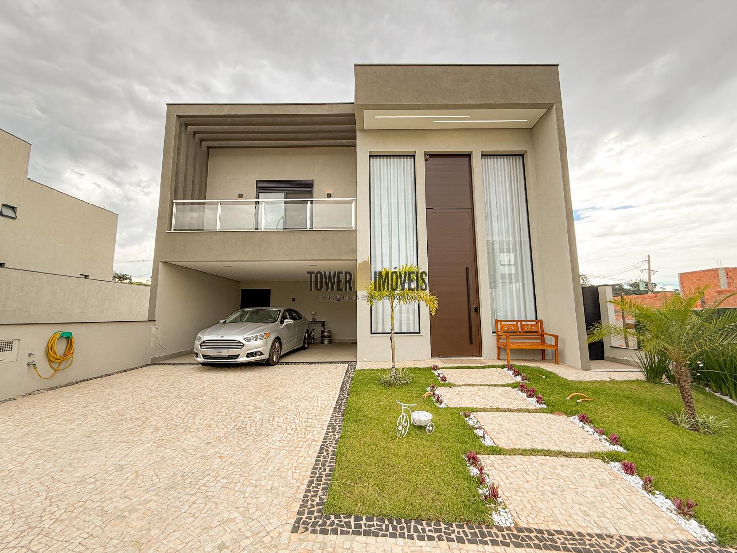 Projeto moderno, sofisticado e prático. Com ótimos acabamentos, projeto de iluminação em Led na casa toda. Piso inferior todo integrado, com sala de estar ampla, lareira elétrica, pé direito alto, lavabo, suíte térrea com varanda, linda cozinha americana repleta de armários, balcão, despensa, área de serviço com armários.