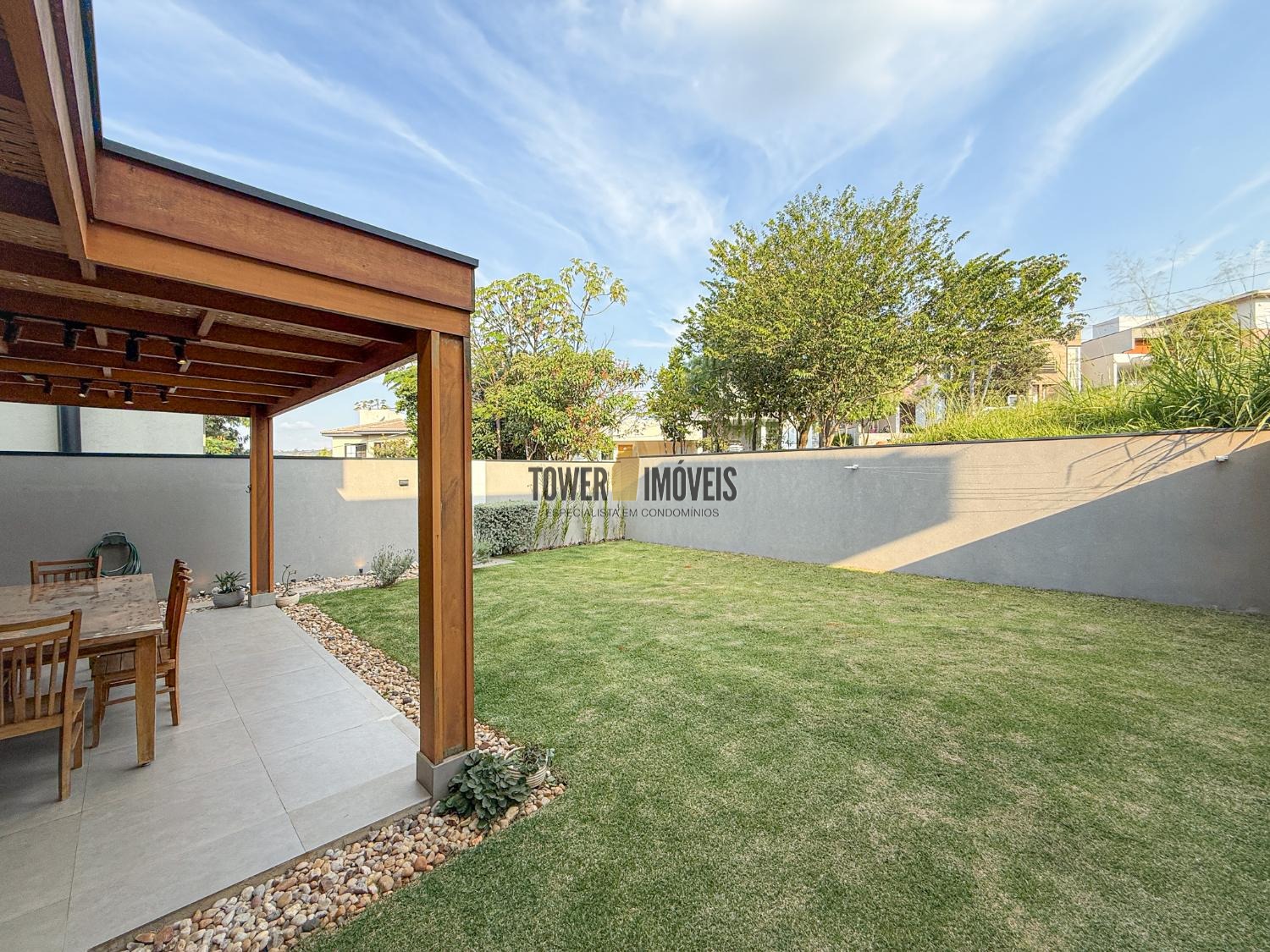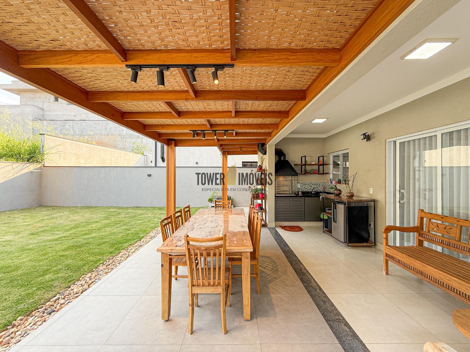 A área gourmet está inegrada, quintal grande gramado.