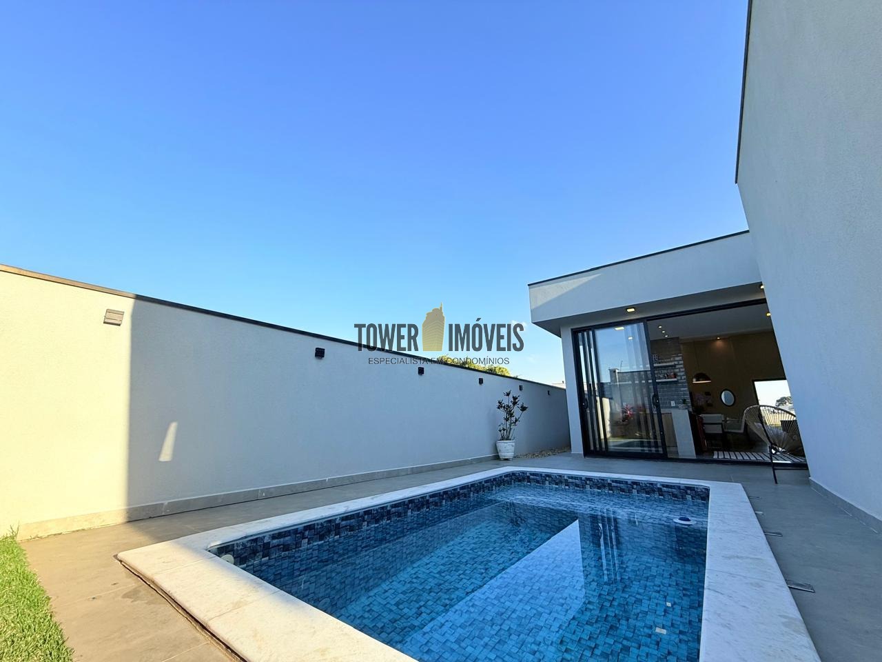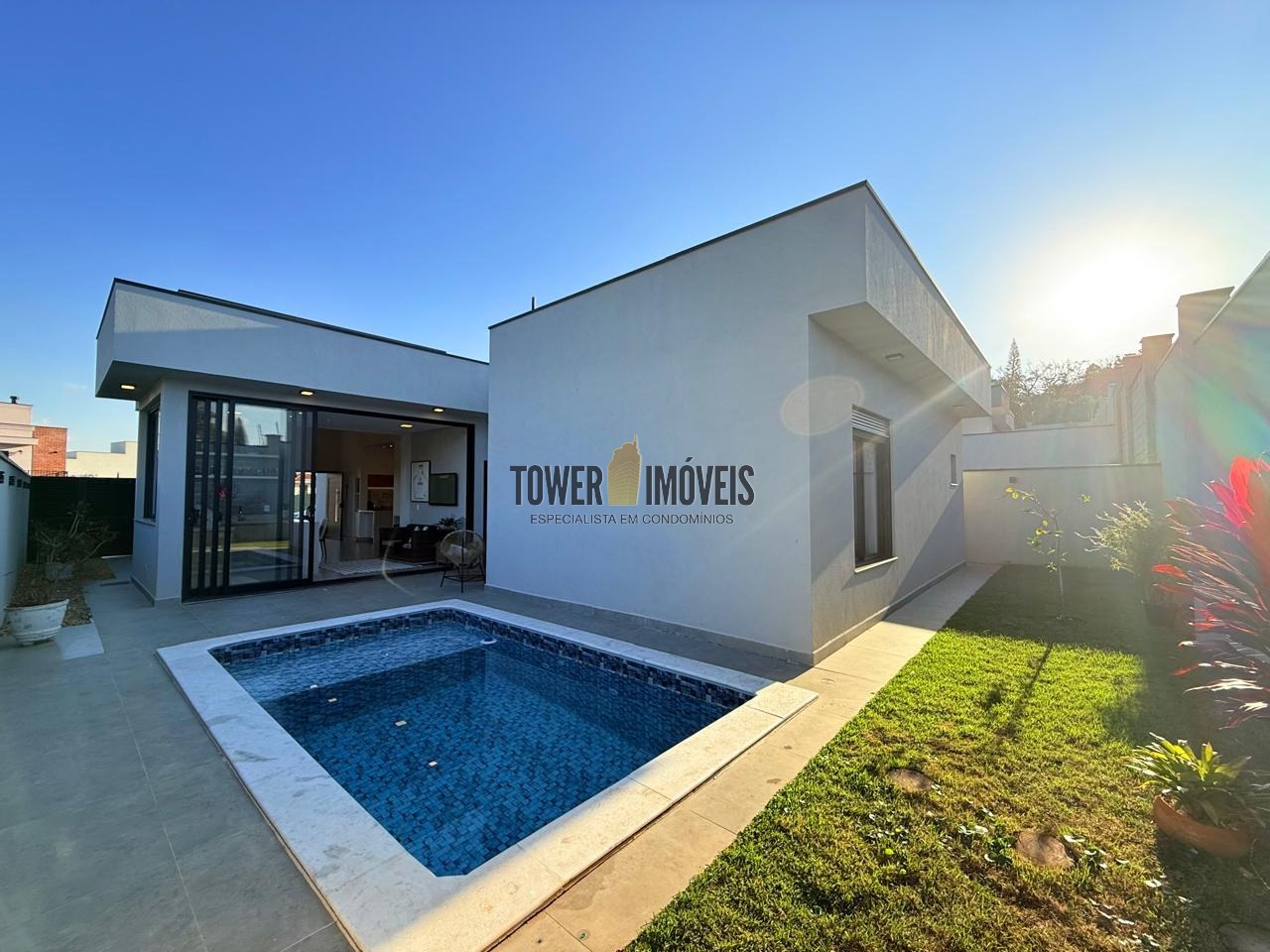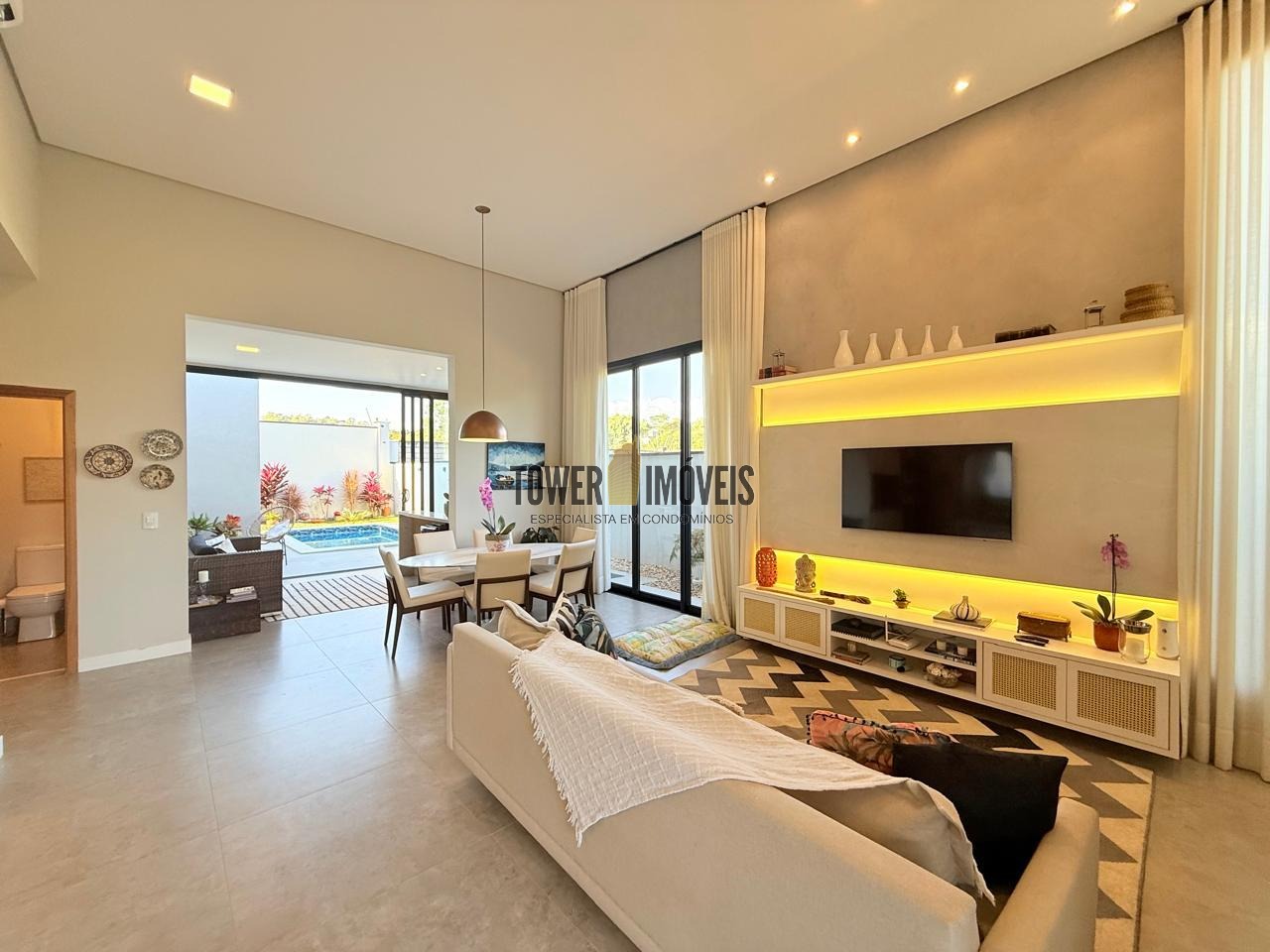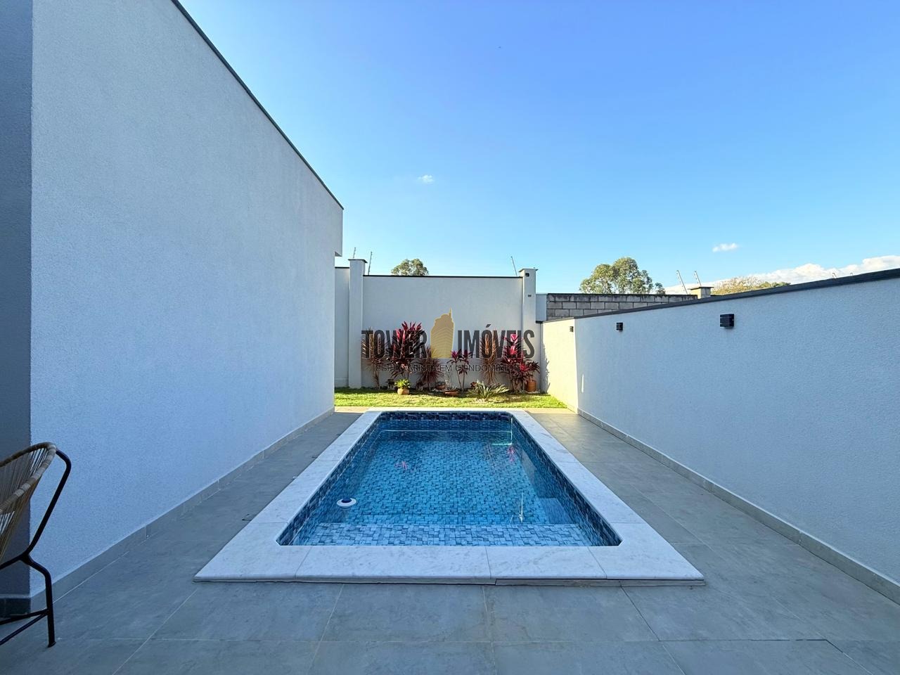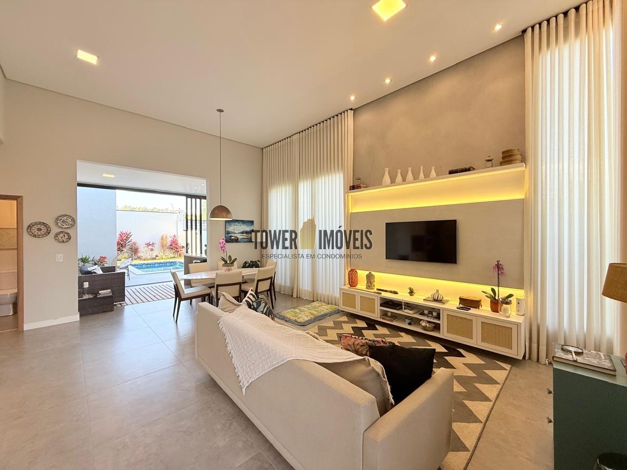 Belíssima casa térrea com 410 m² de terreno e 200 m² de construção, conceito de ambientes integrados, ao entrar na casa no deparamos com a sala de TV e jantar amplas e integradas, a cozinha e a área gourmet, todos os ambientes espaçosos e planejados com móveis de qualidade, o quintal conta com uma piscina aquecida por trocador de calor e um gramado nos fundos, a casa possui 3 suítes sendo uma master com closet.