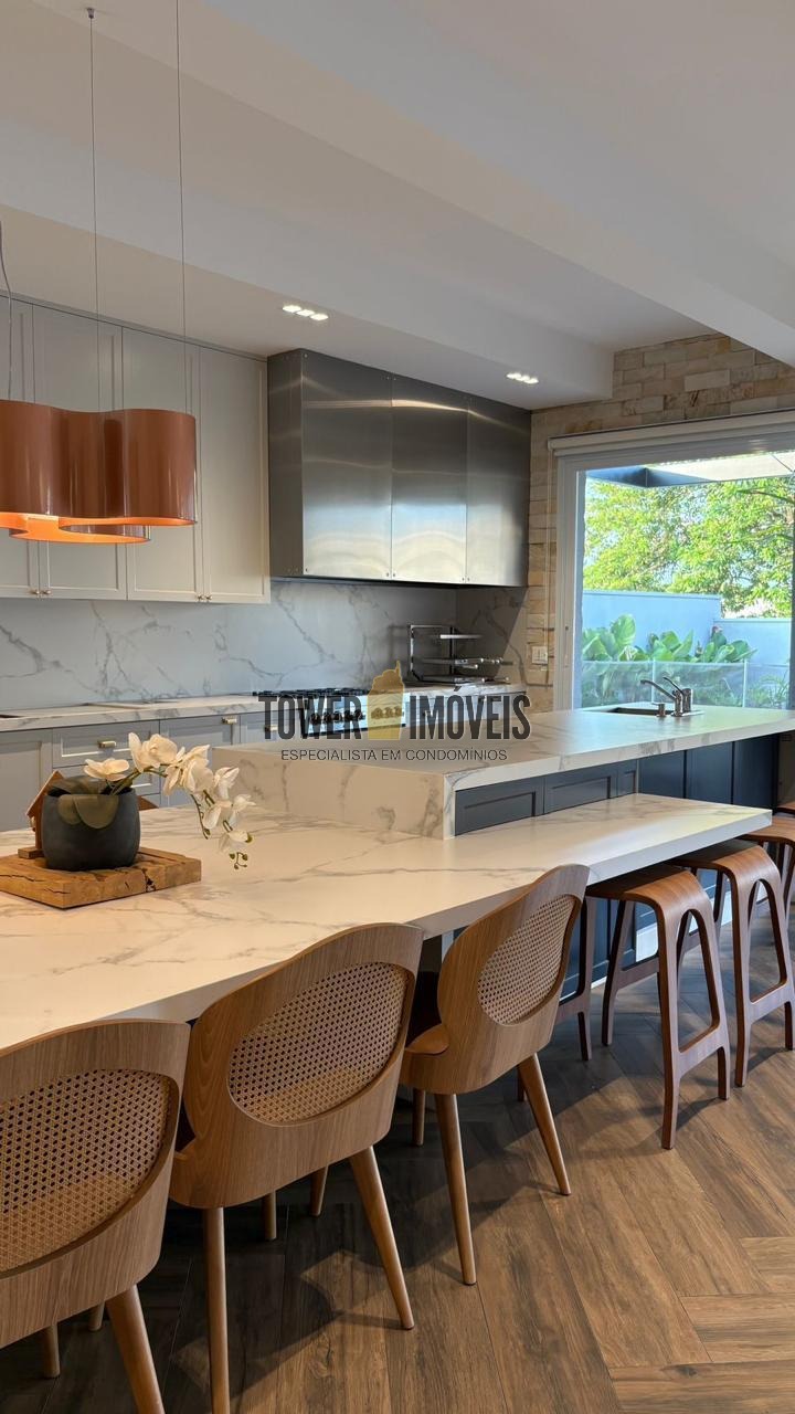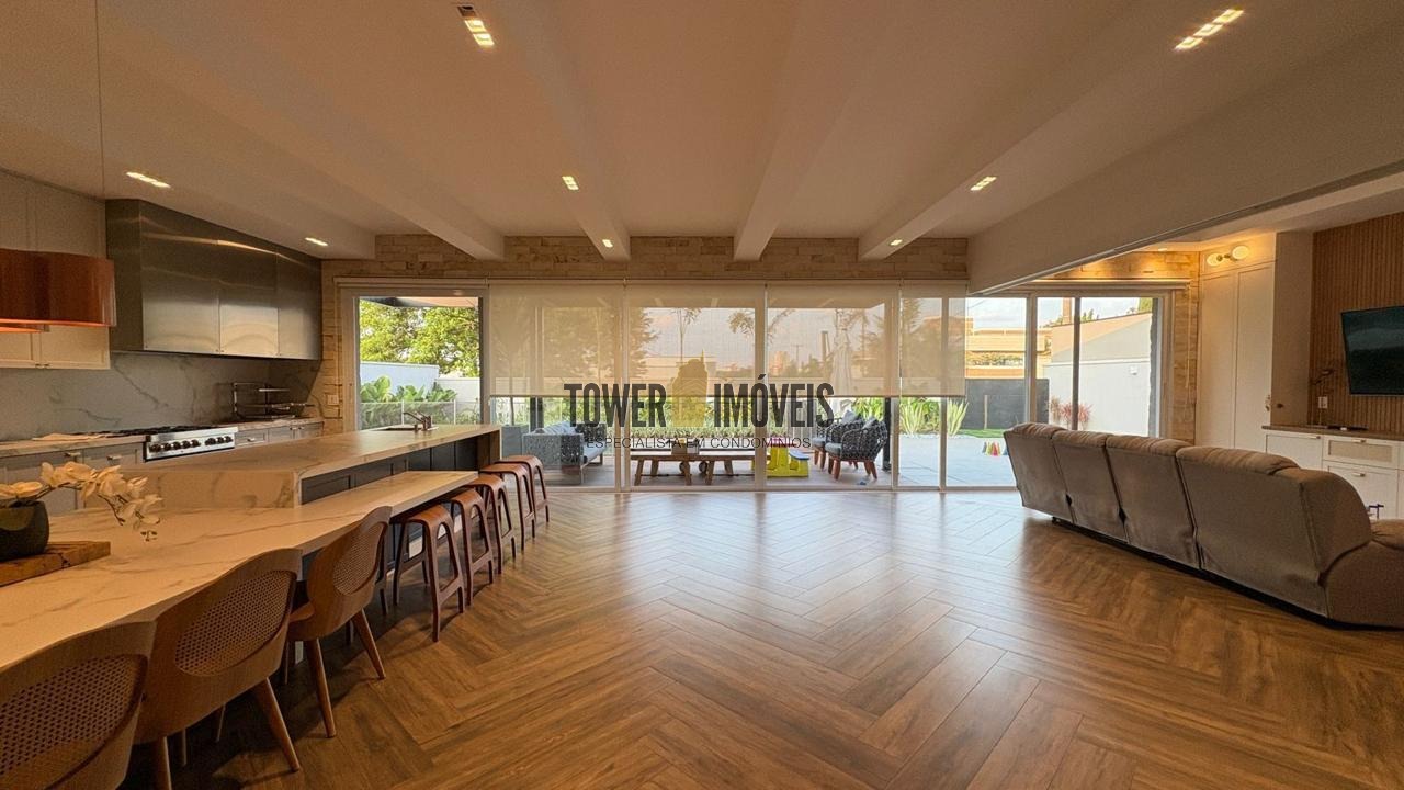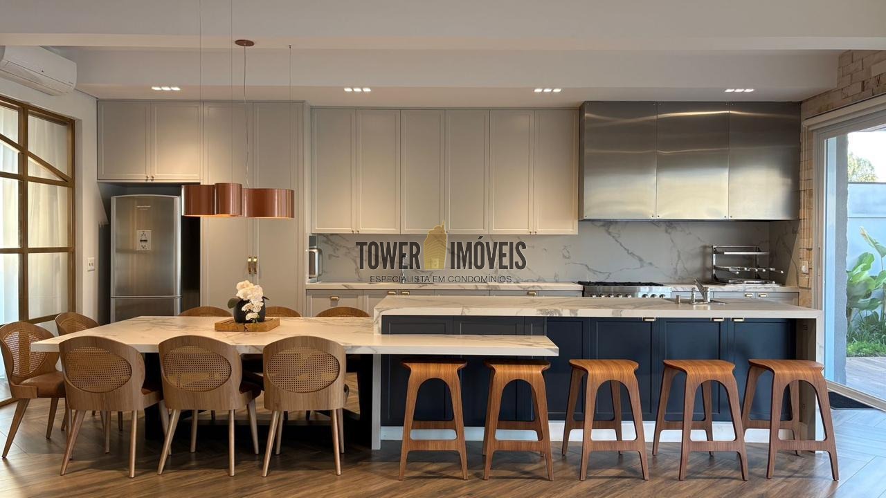 Cozinha em conceito aberto e integrada ao gourmet é o coração da casa onde podemos apreciar o lindo paisagismo no quintal, desfrutar da piscina nos momentos de lazer e descontração.