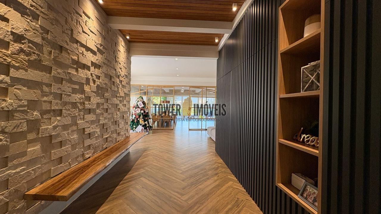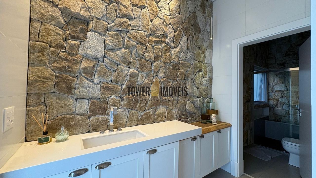 Toda a casa possui excelentes acabamentos em porcelanato, madeira e pedra na parede.