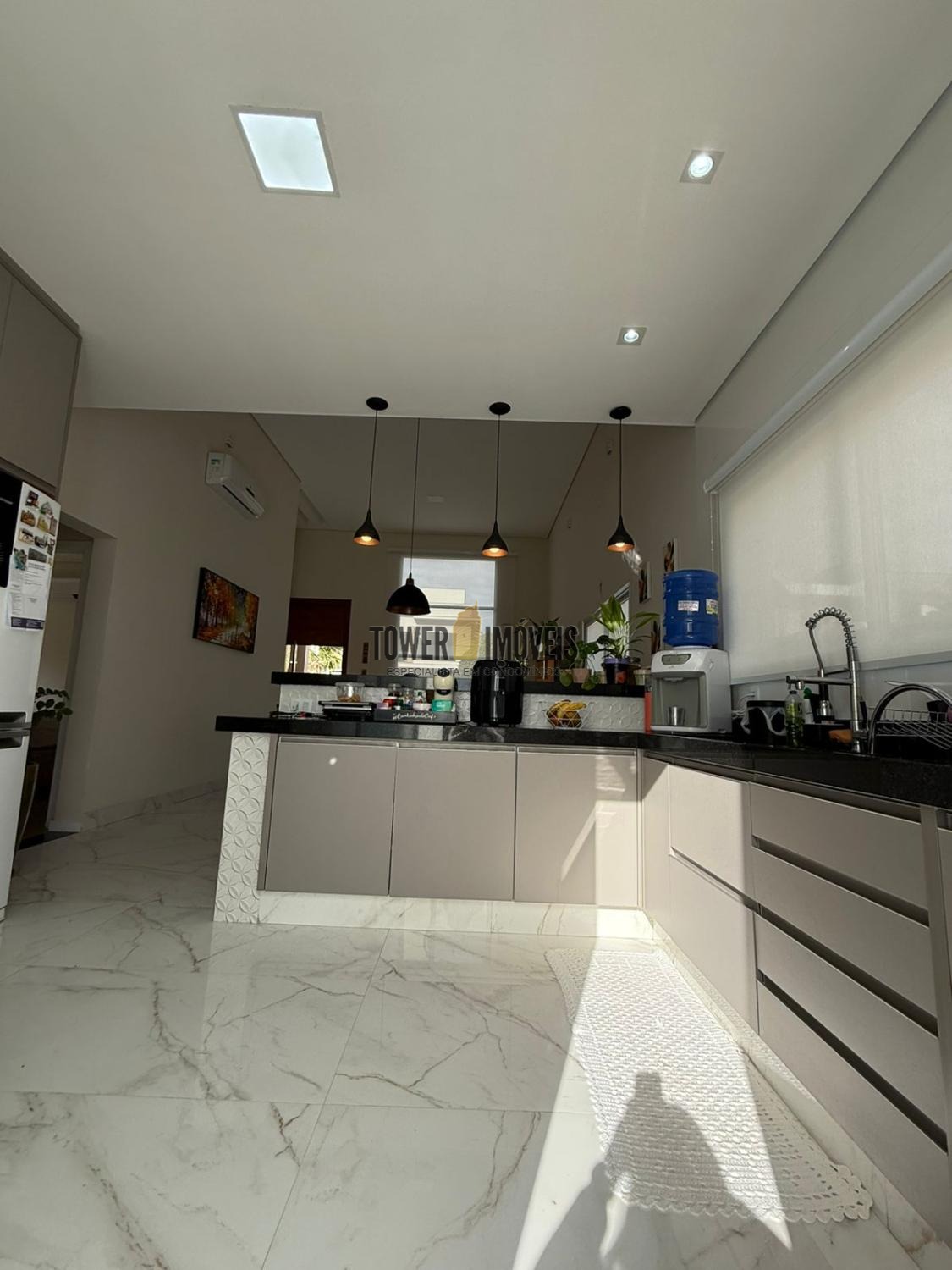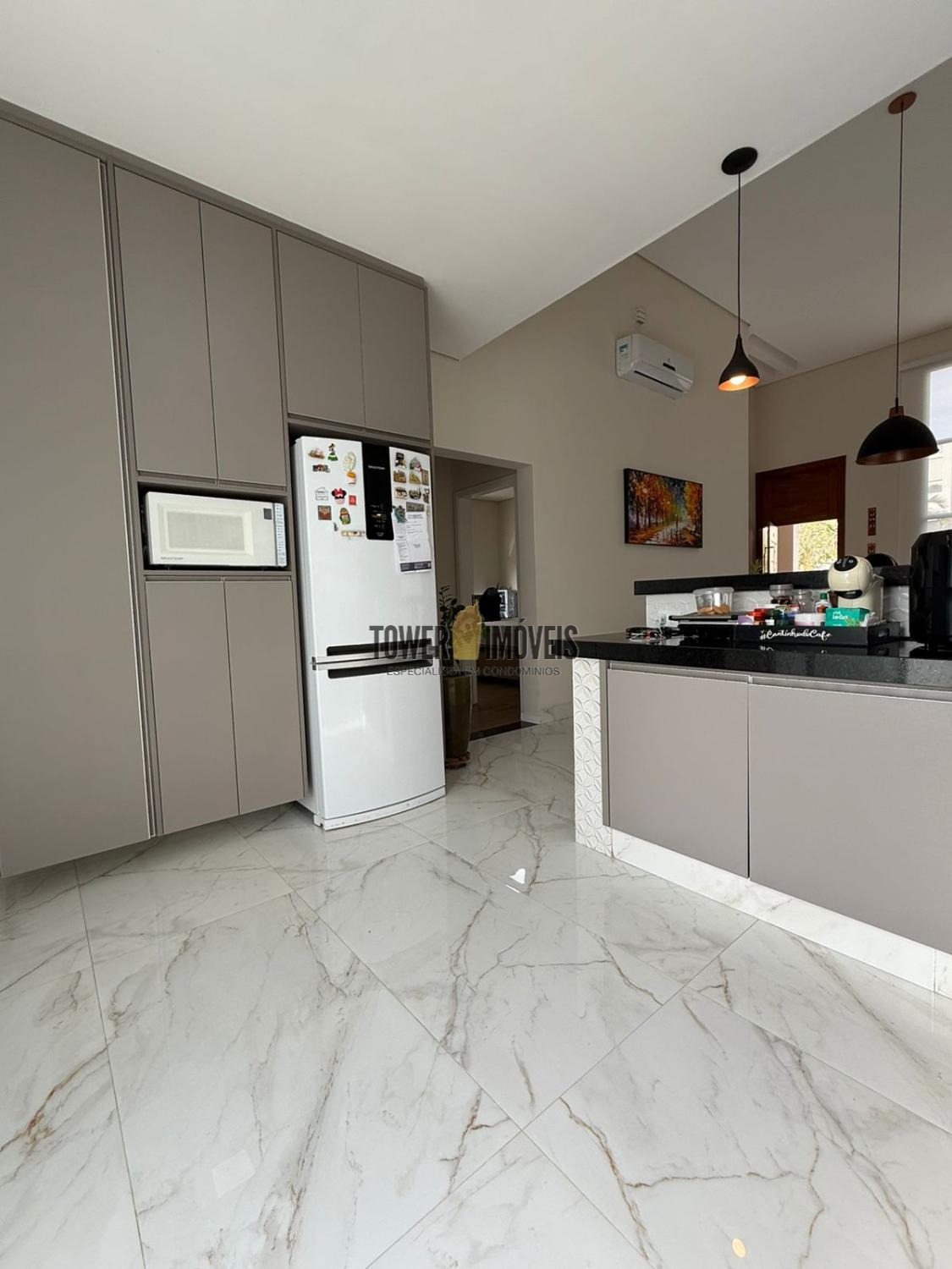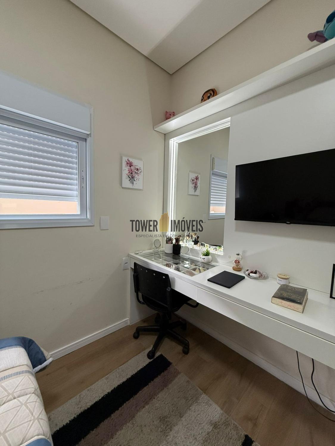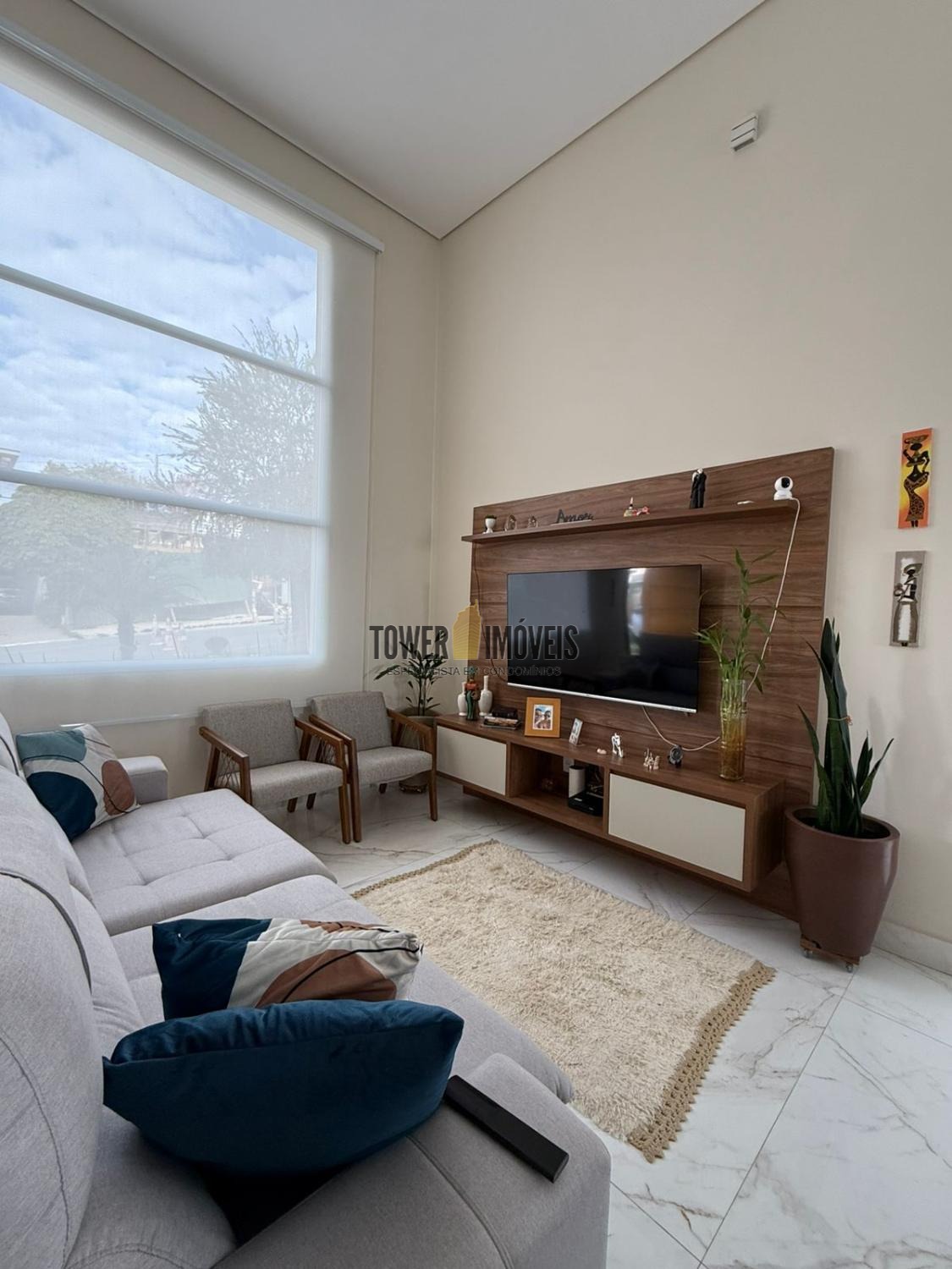 Possui sala de estar com painel de TV e pé direito alto, sala de jantar, cozinha americana com armários embutidos, despensa, lavanderia, 3 quartos com armários planejados, sendo 2 suítes (uma suíte com closet e sacada), banheiro social com box e armários.
