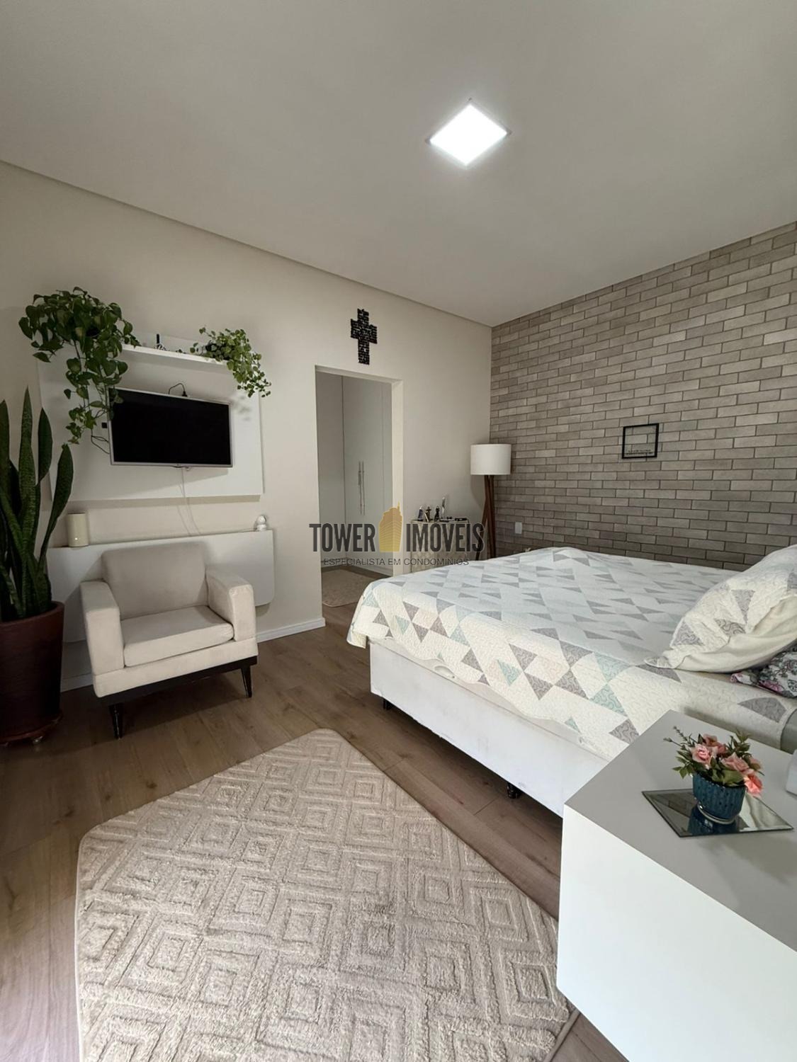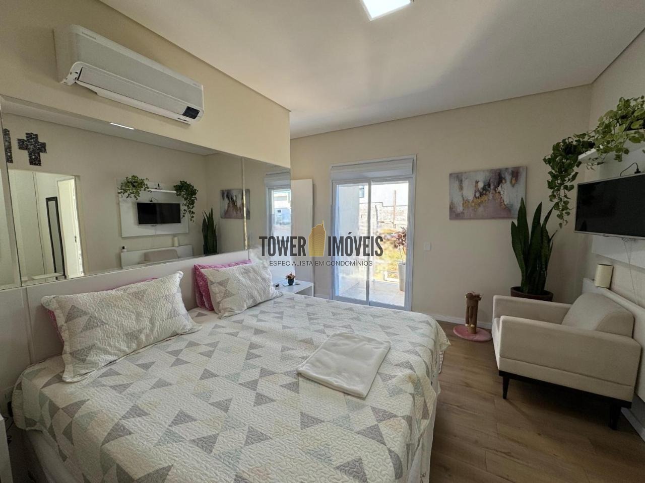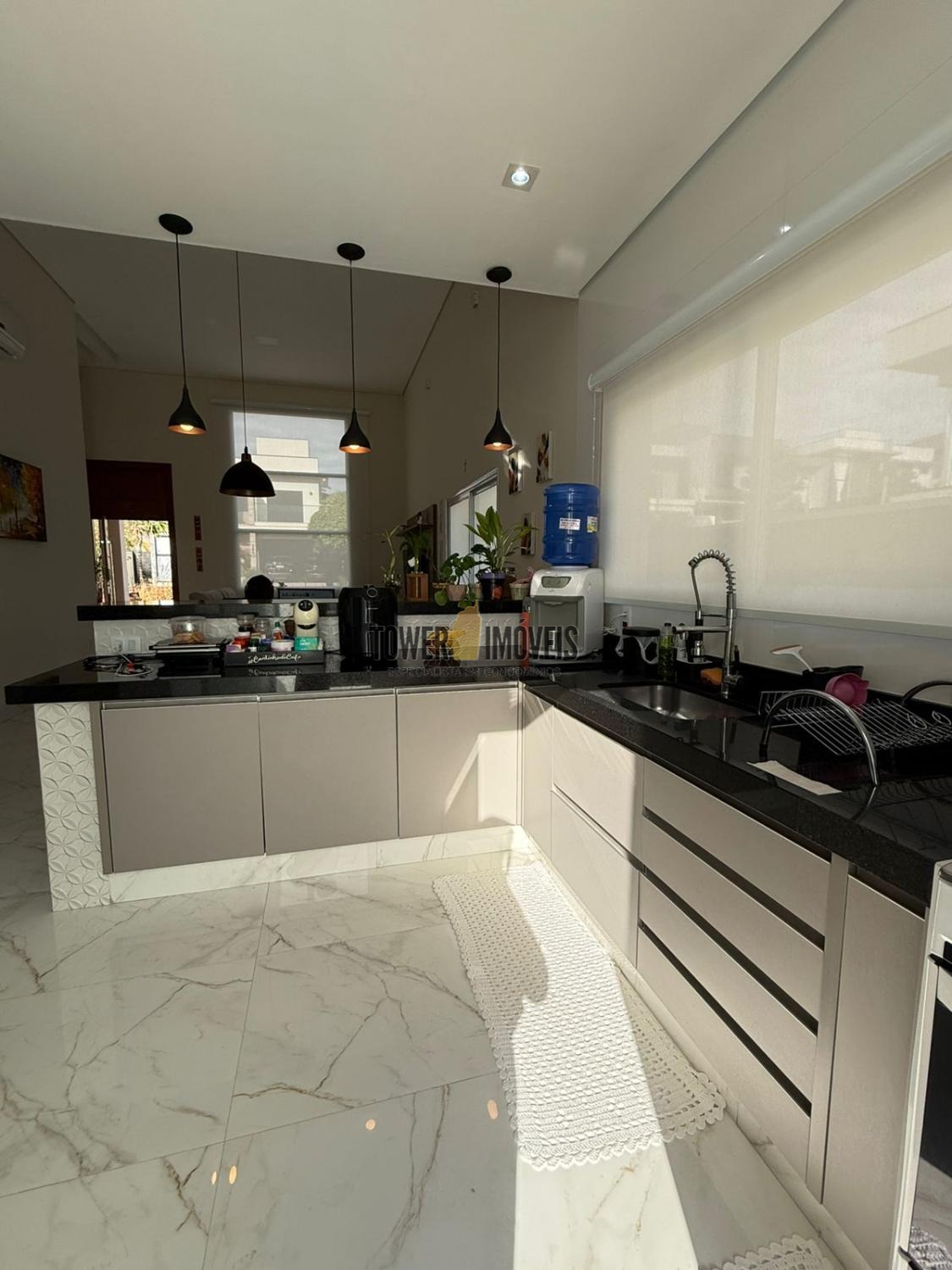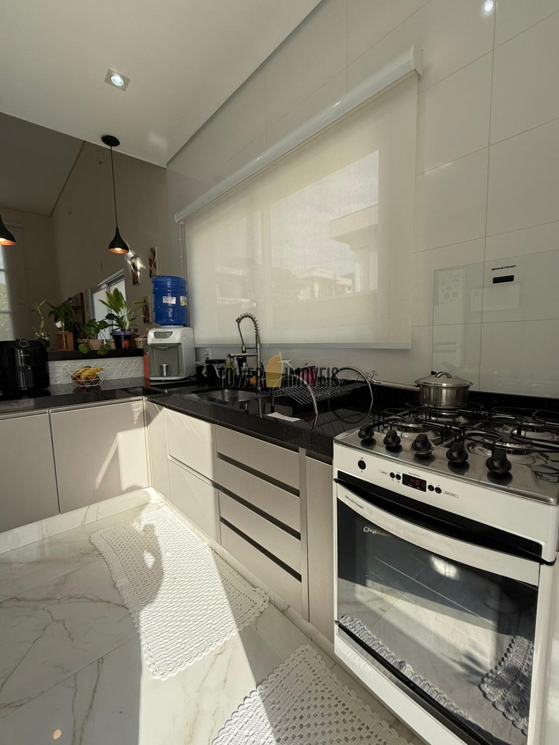 Possui sala de estar com painel de TV e pé direito alto, sala de jantar, cozinha americana com armários embutidos, despensa, lavanderia, 3 quartos com armários planejados, sendo 2 suítes (uma suíte com closet e sacada), banheiro social com box e armários.