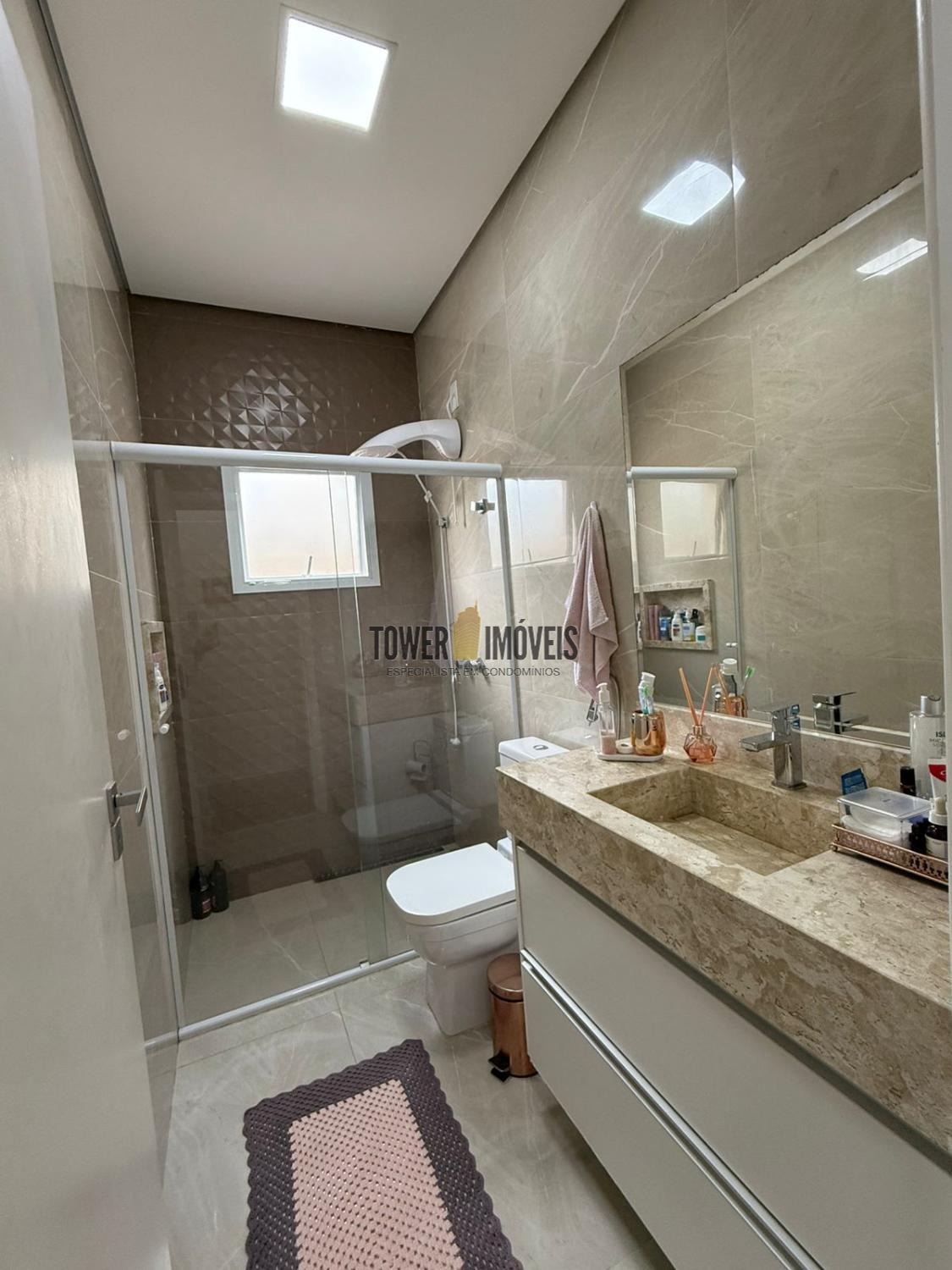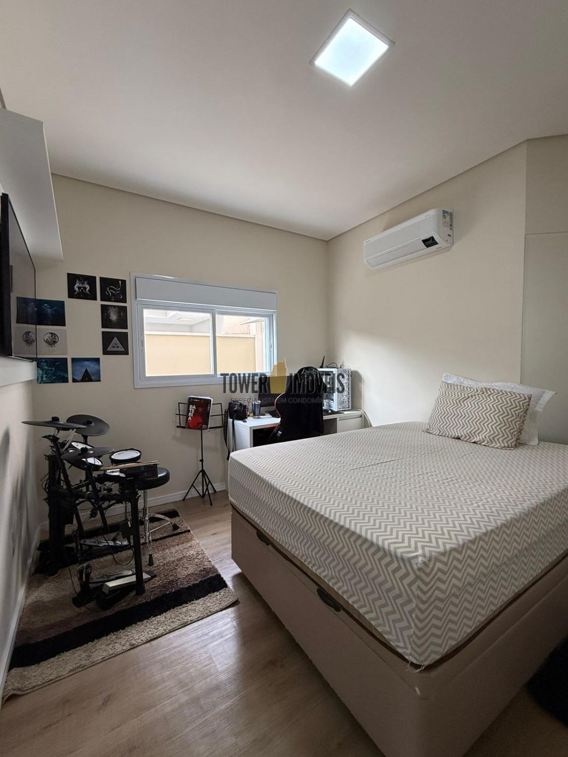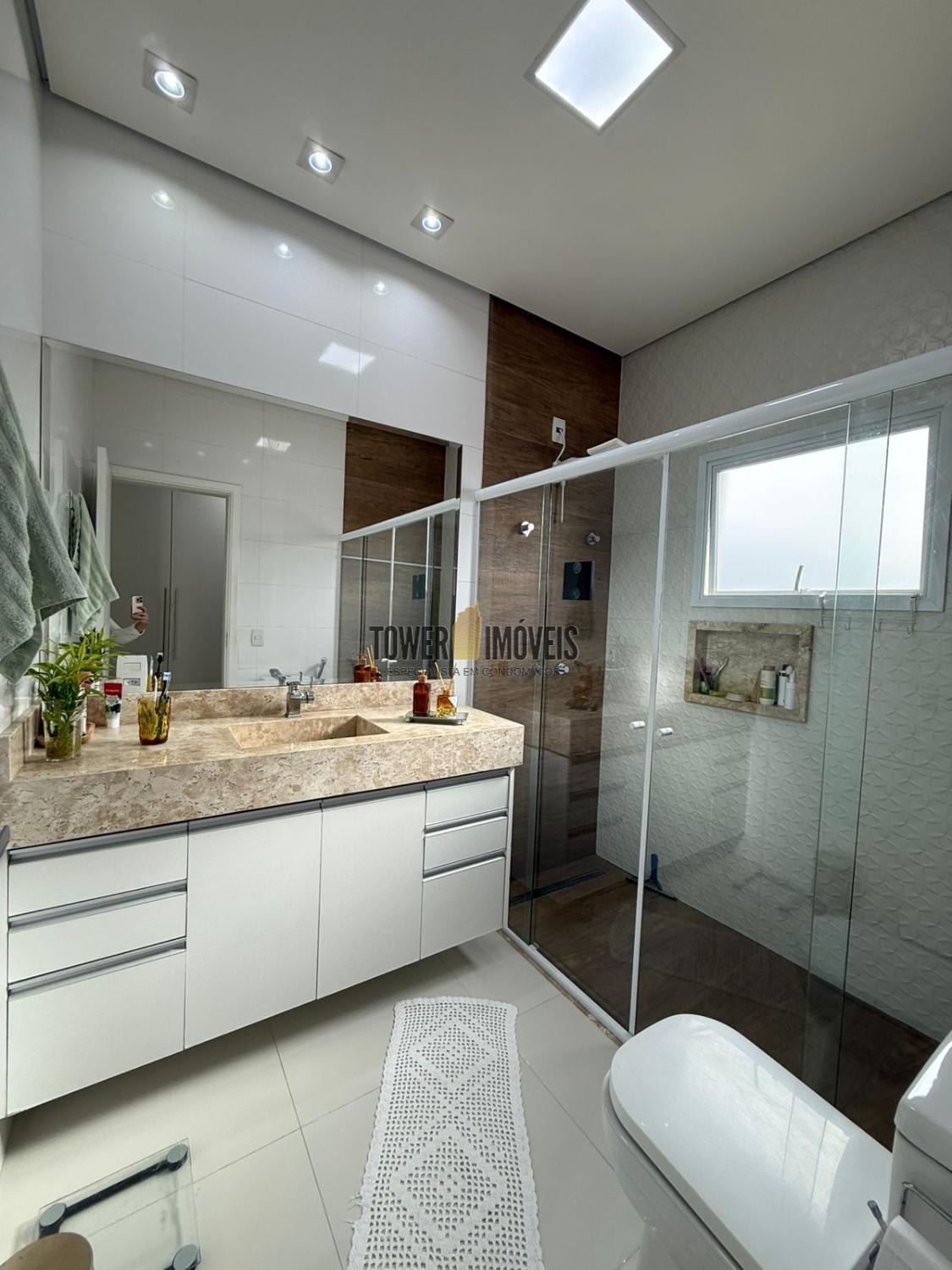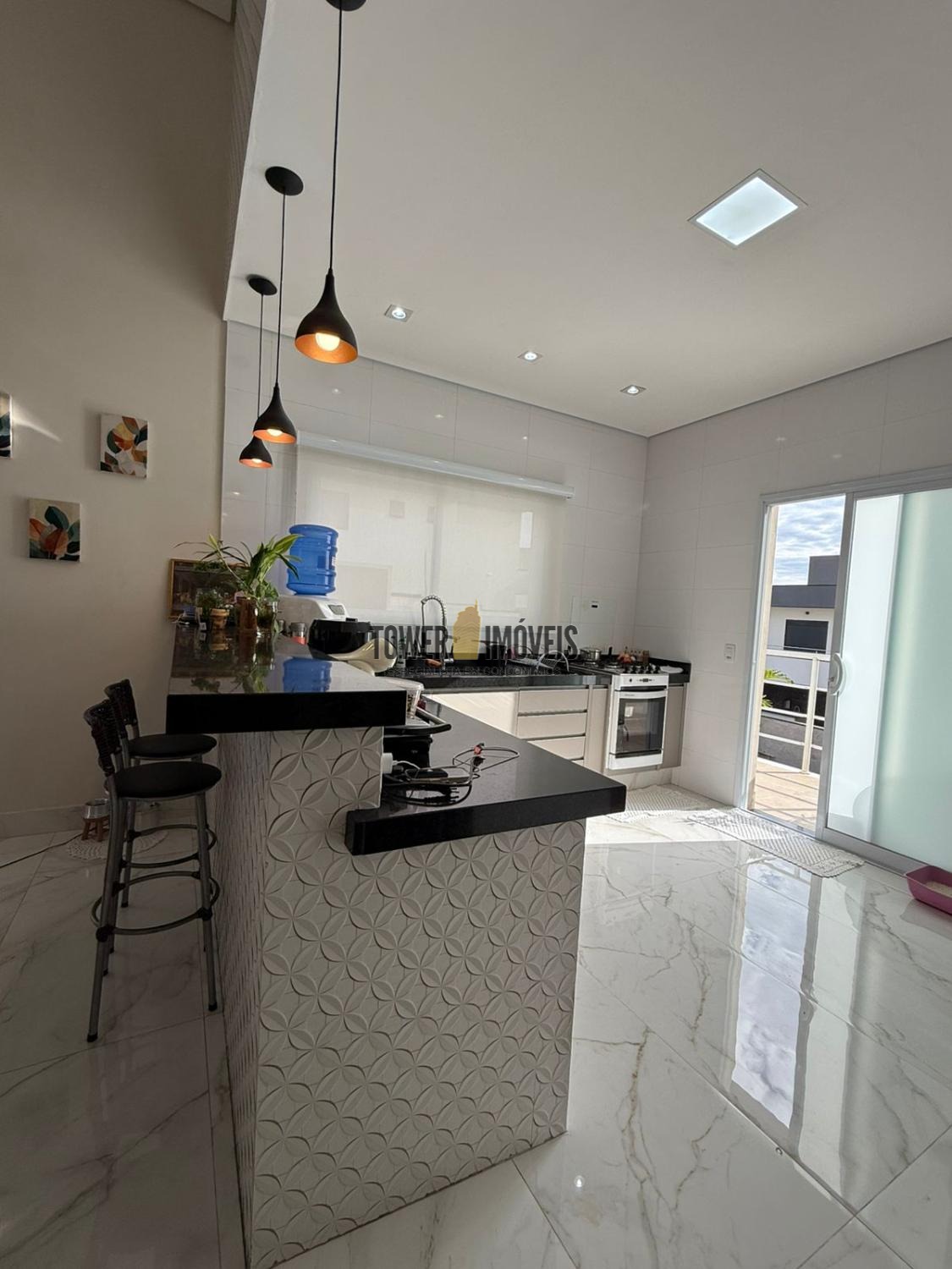Possui sala de estar com painel de TV e pé direito alto, sala de jantar, cozinha americana com armários embutidos, despensa, lavanderia, 3 quartos com armários planejados, sendo 2 suítes (uma suíte com closet e sacada), banheiro social com box e armários.