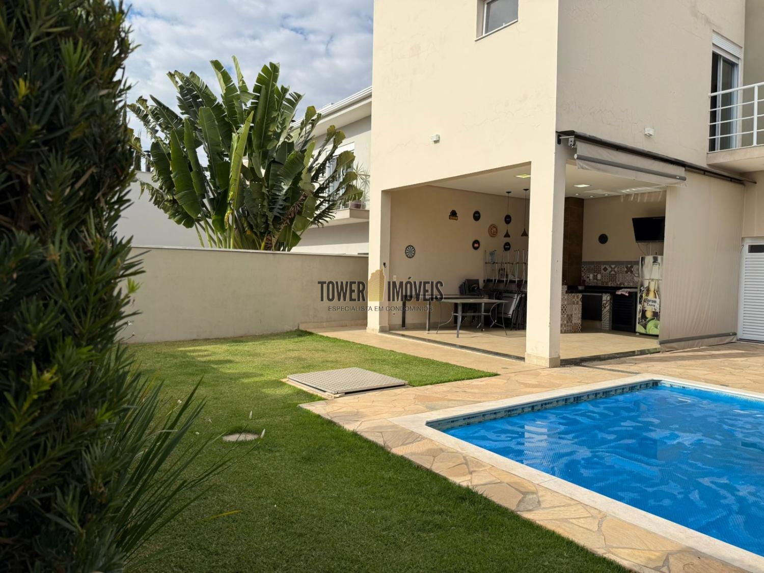 Lazer com piscina aquecida, espaço gourmet com churrasqueira, banheiro externo, jardim e 4 vagas de garagem sendo 2 cobertas.