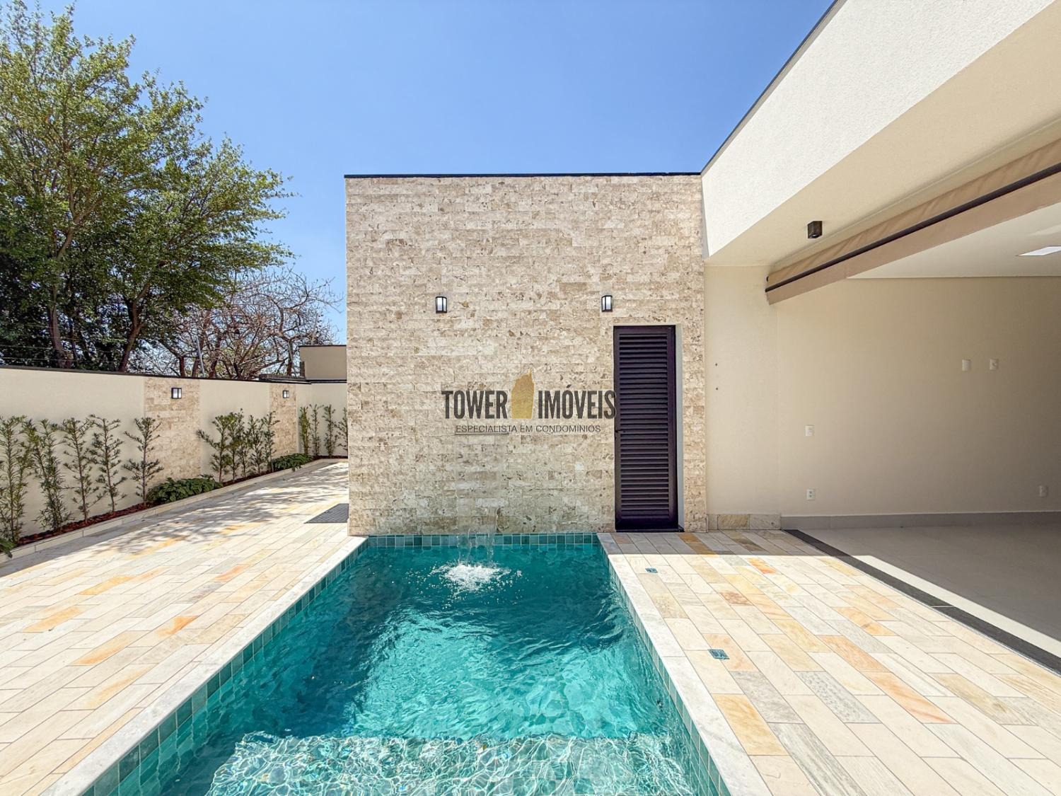 Piscina aquecida com cascata