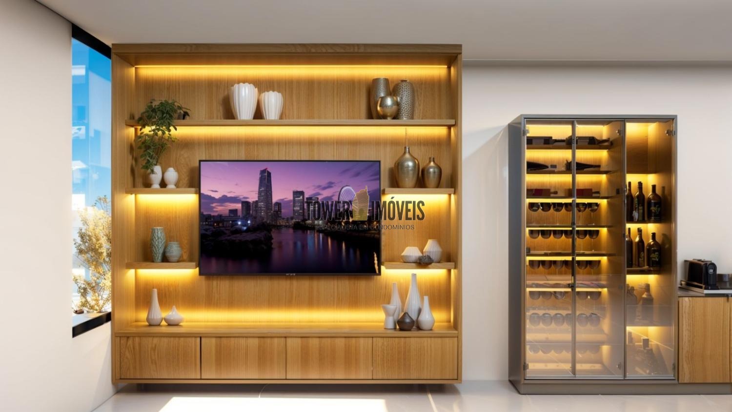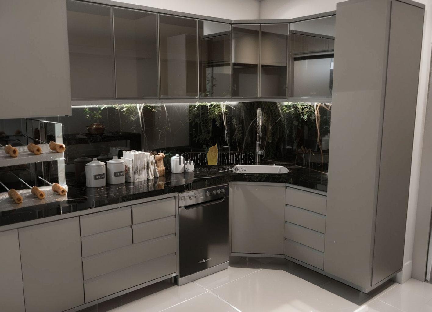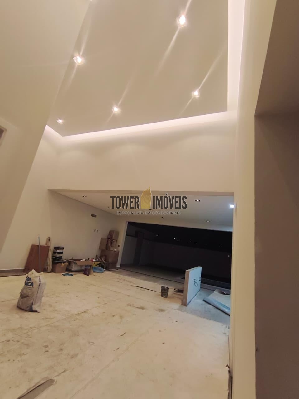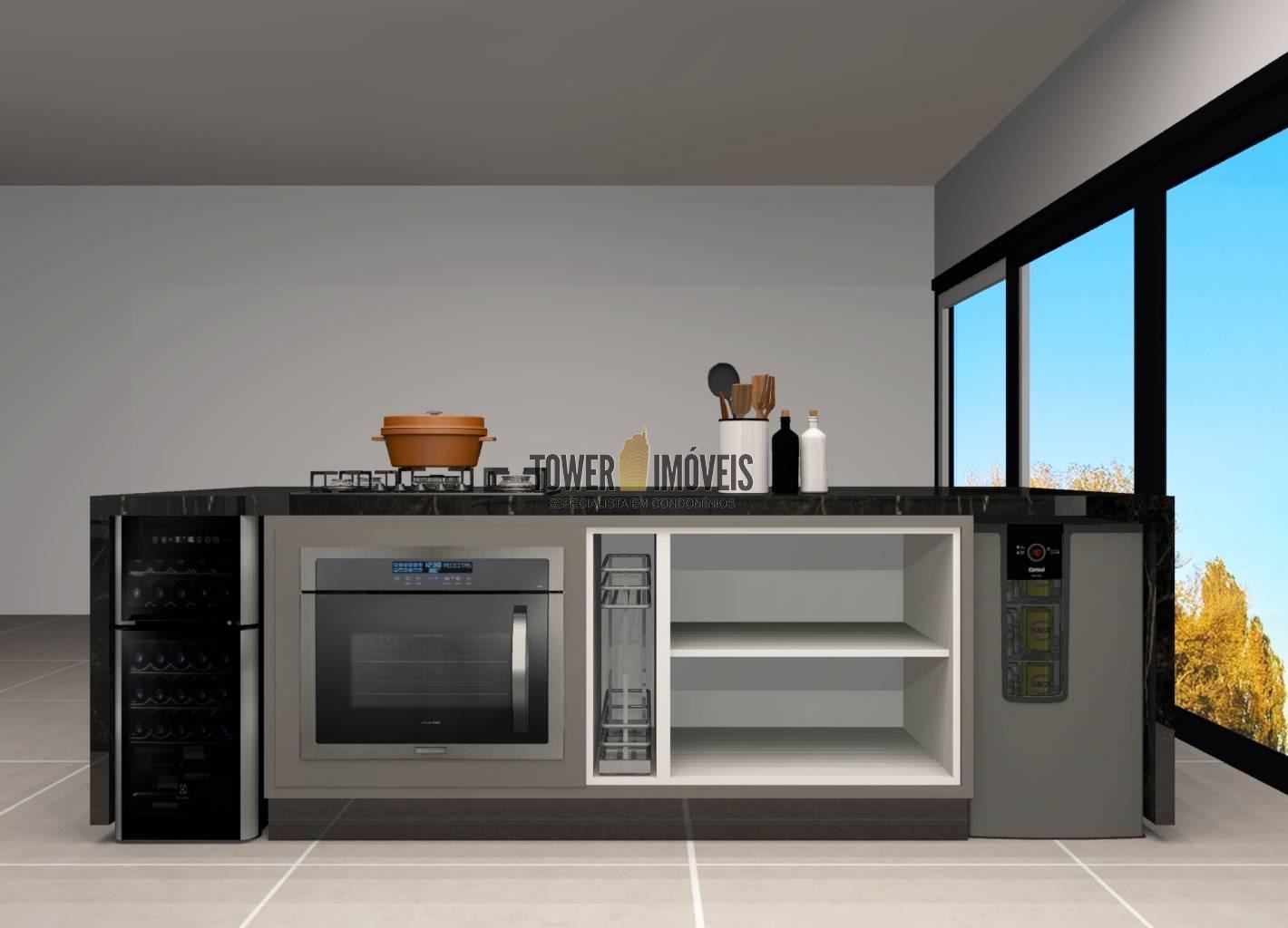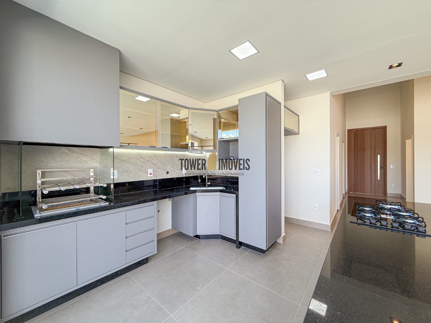 Sala living para dois ambientes, lavabo, cozinha, área gourmet com churrasqueira e quintal com piscina.