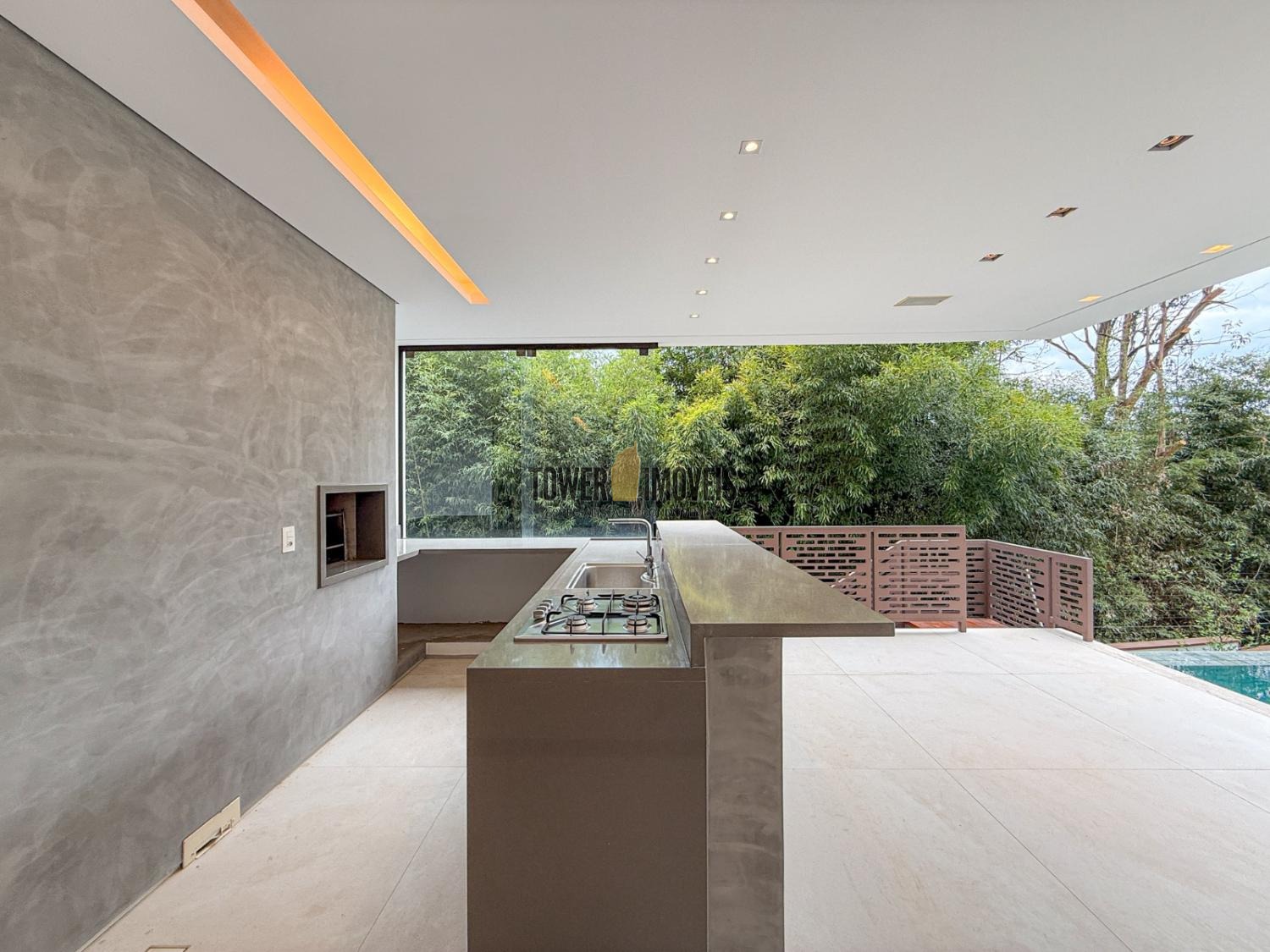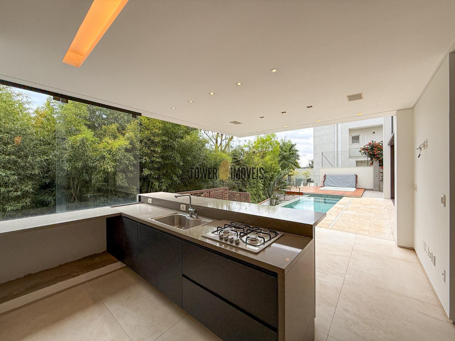 - Espaço gourmet com churrasqueira, som embutido e vista para a piscina e mata preservada