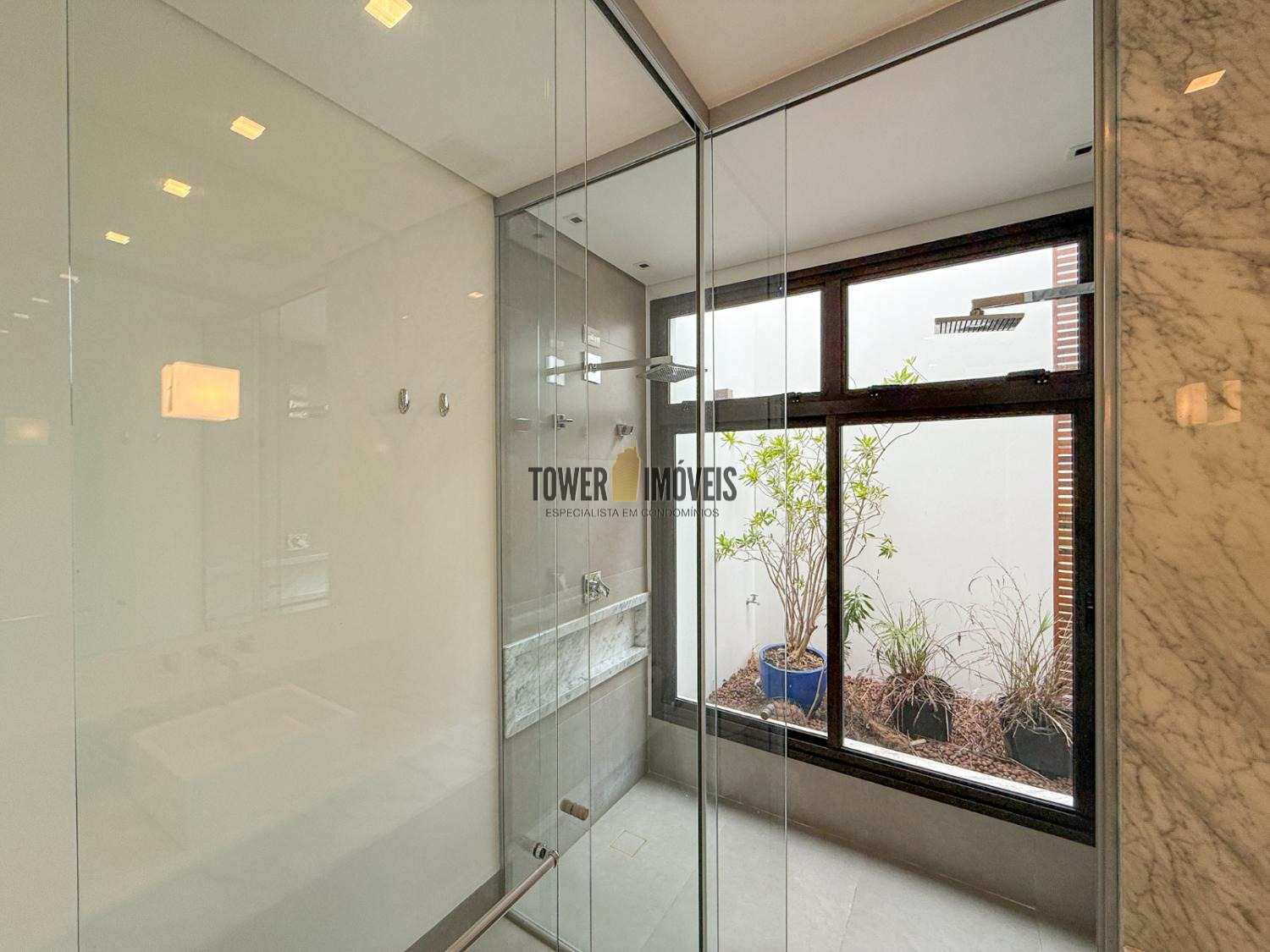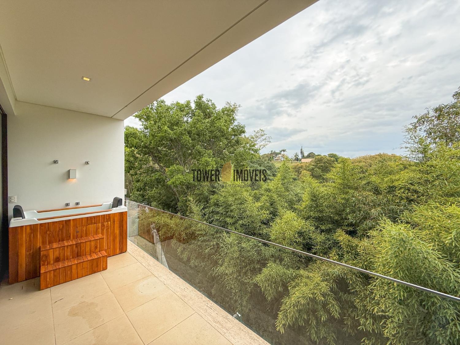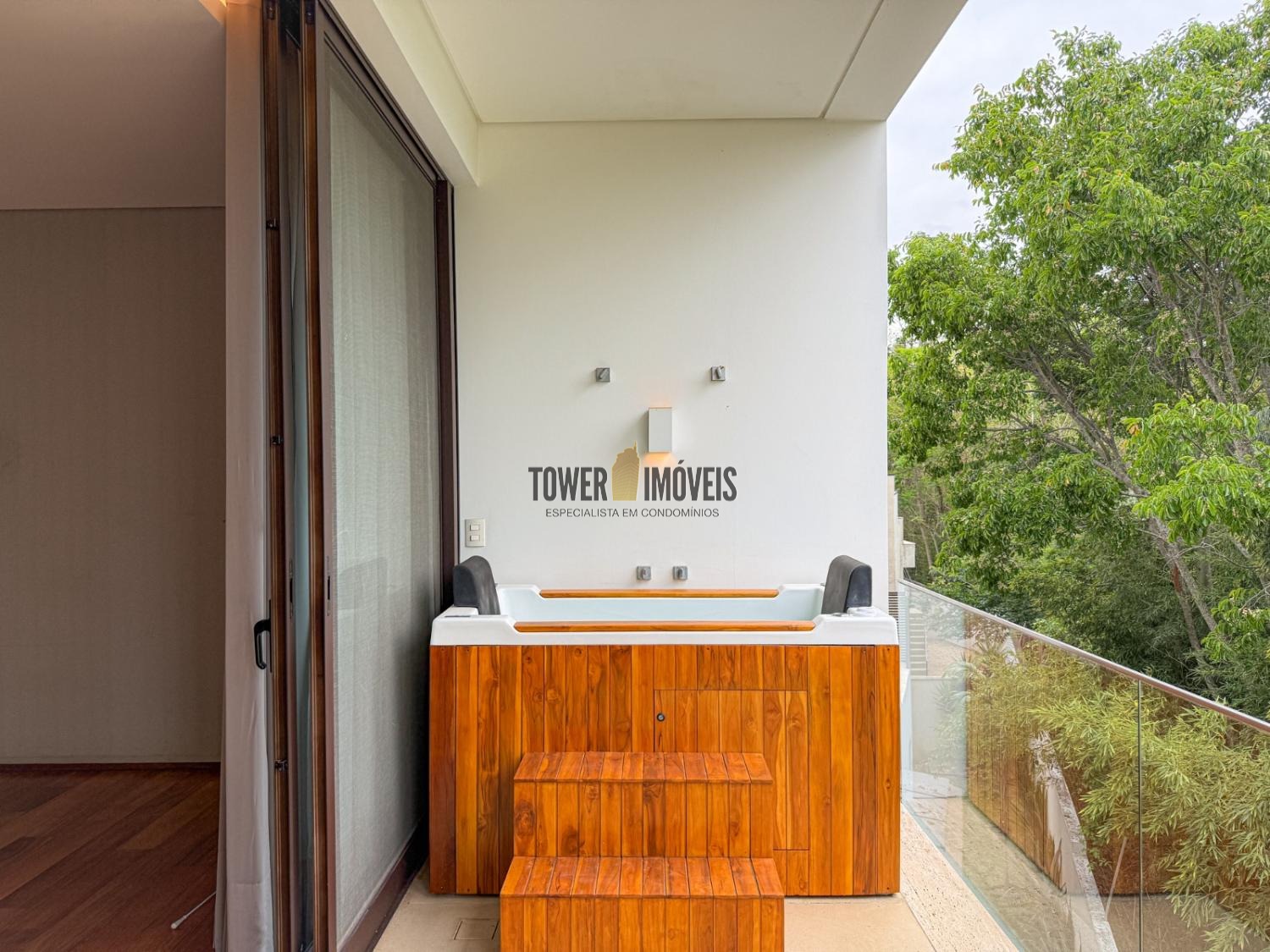 - Suíte máster possui closet, banheiro com pia e chuveiro duplo, fechamento antirruído e varanda com ofurô com vista para a mata preservada