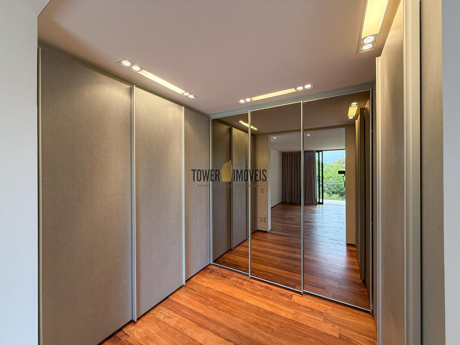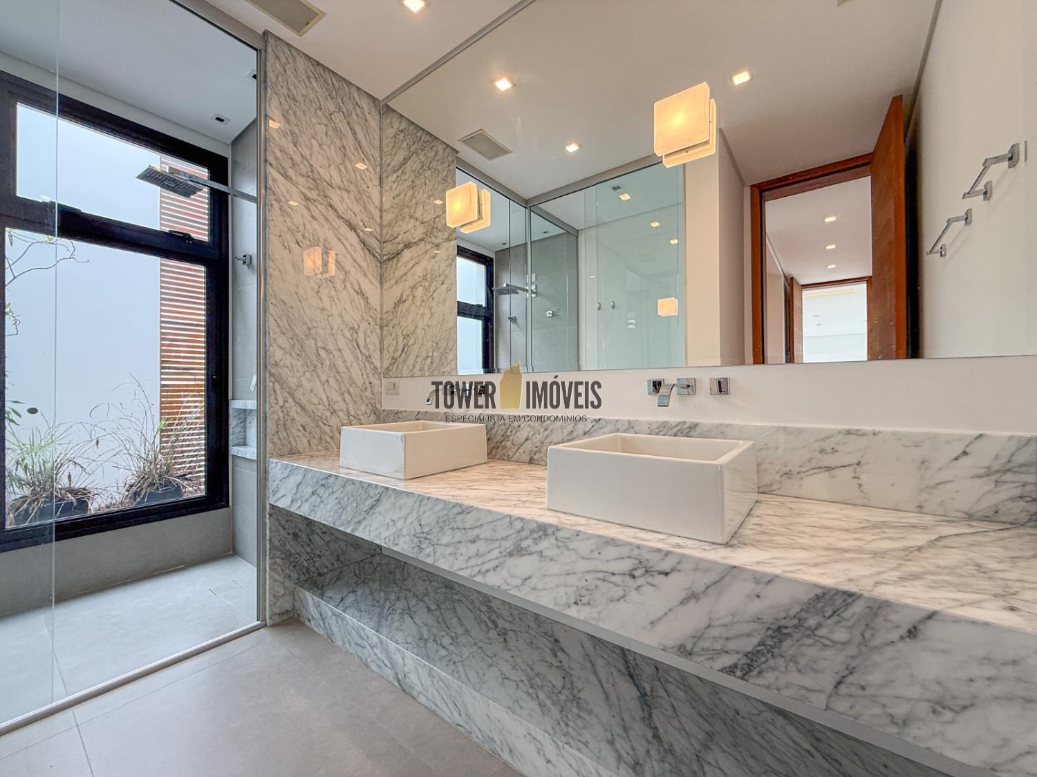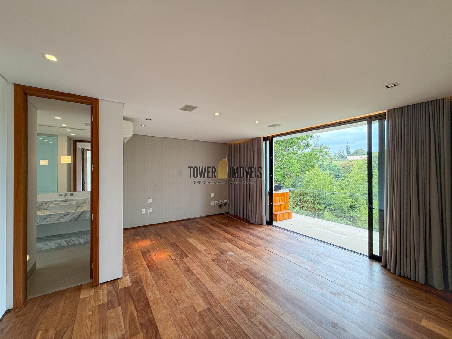 - Suíte máster possui closet, banheiro com pia e chuveiro duplo, fechamento antirruído e varanda com ofurô com vista para a mata preservada