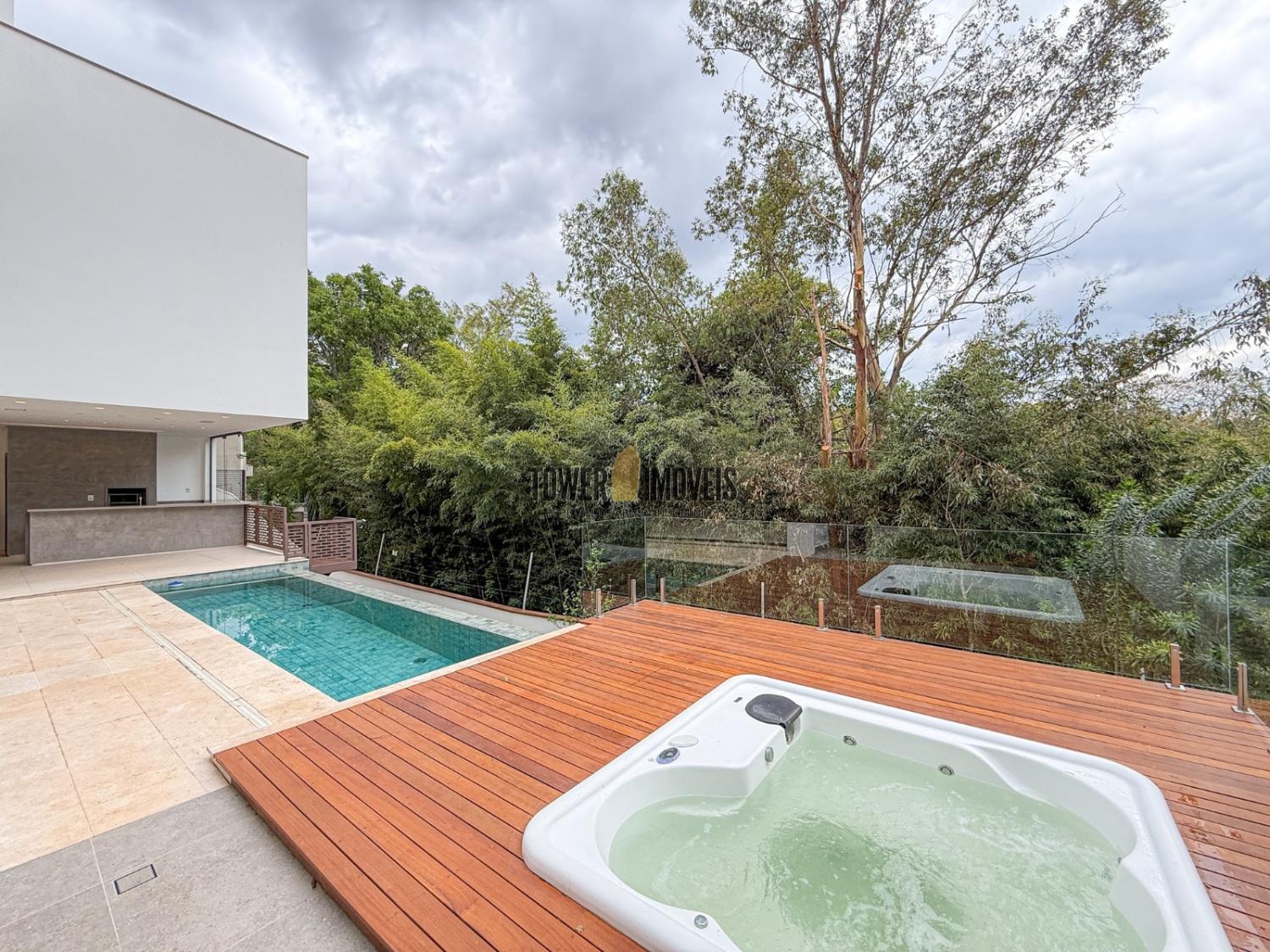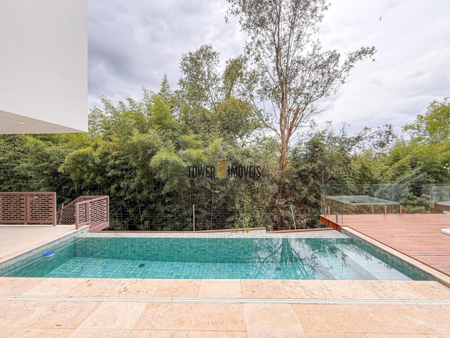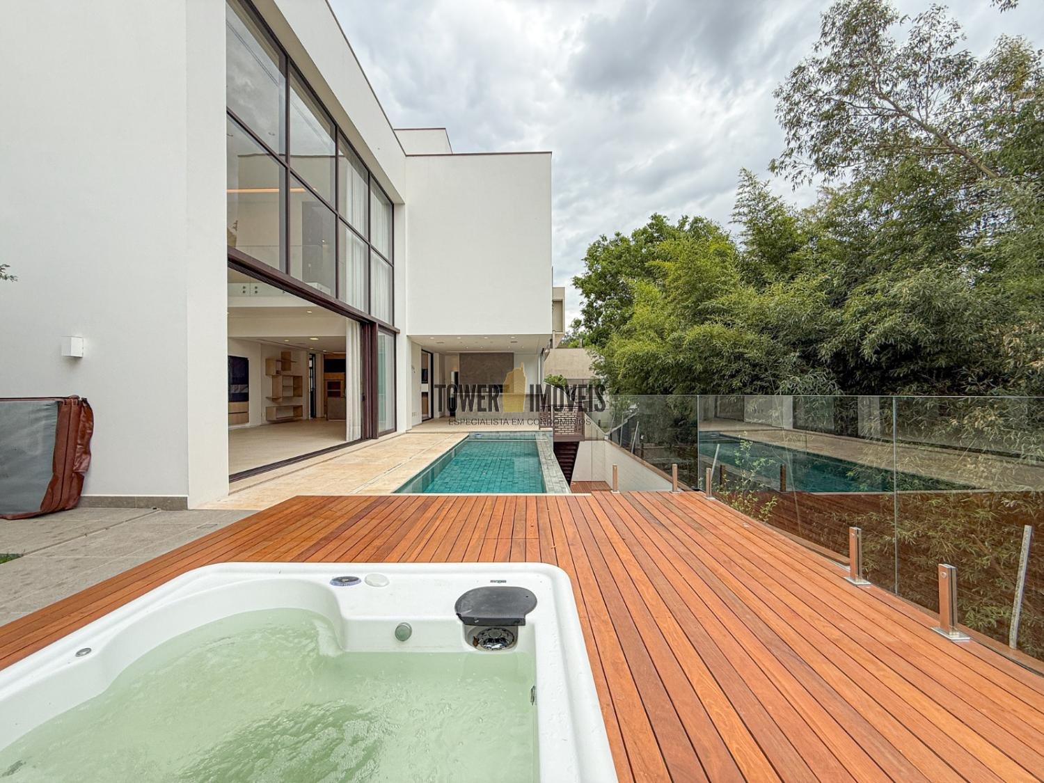 - Deck em cumaru e guarda-corpo em vidro
