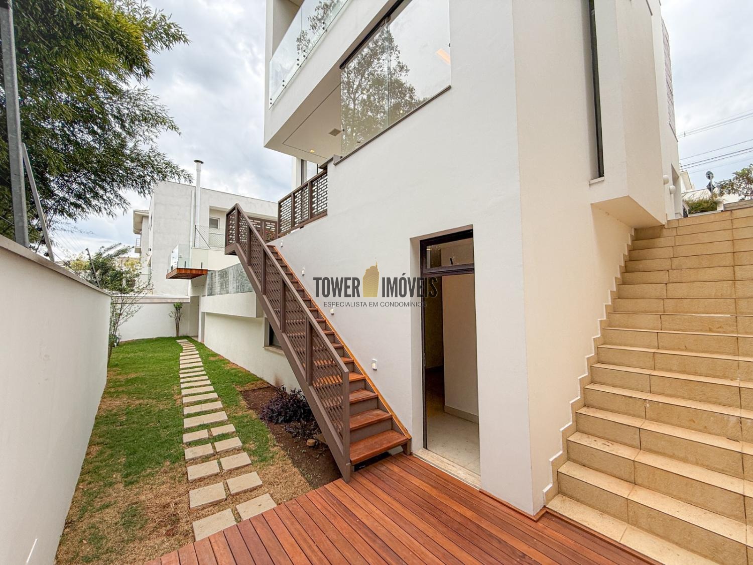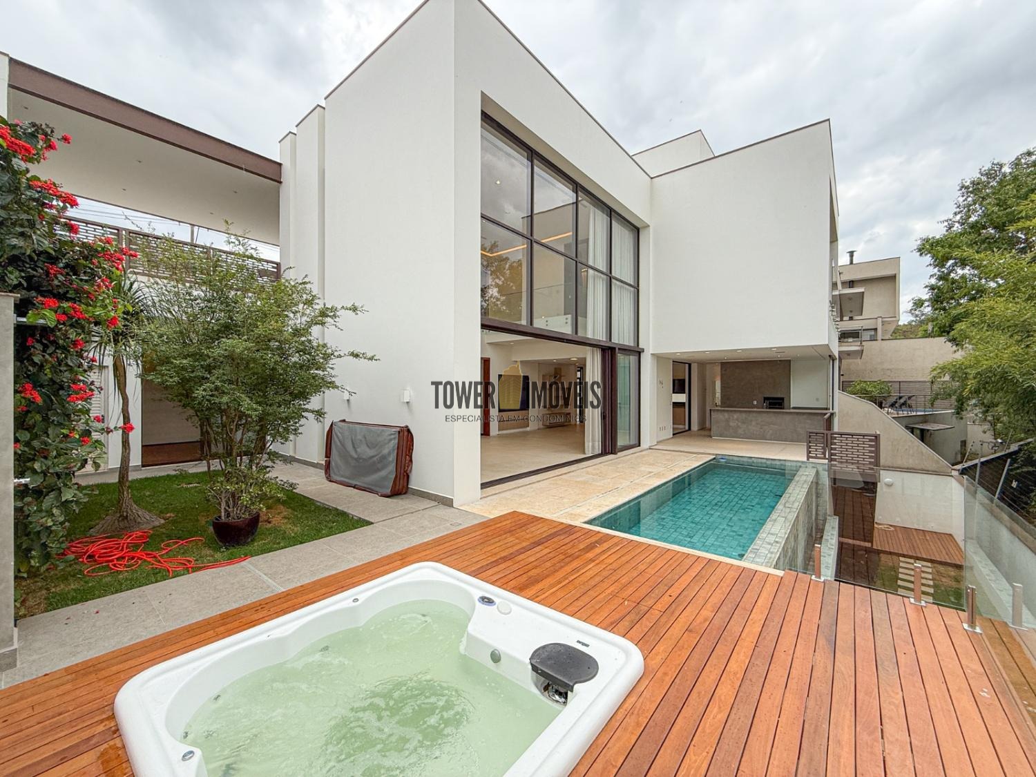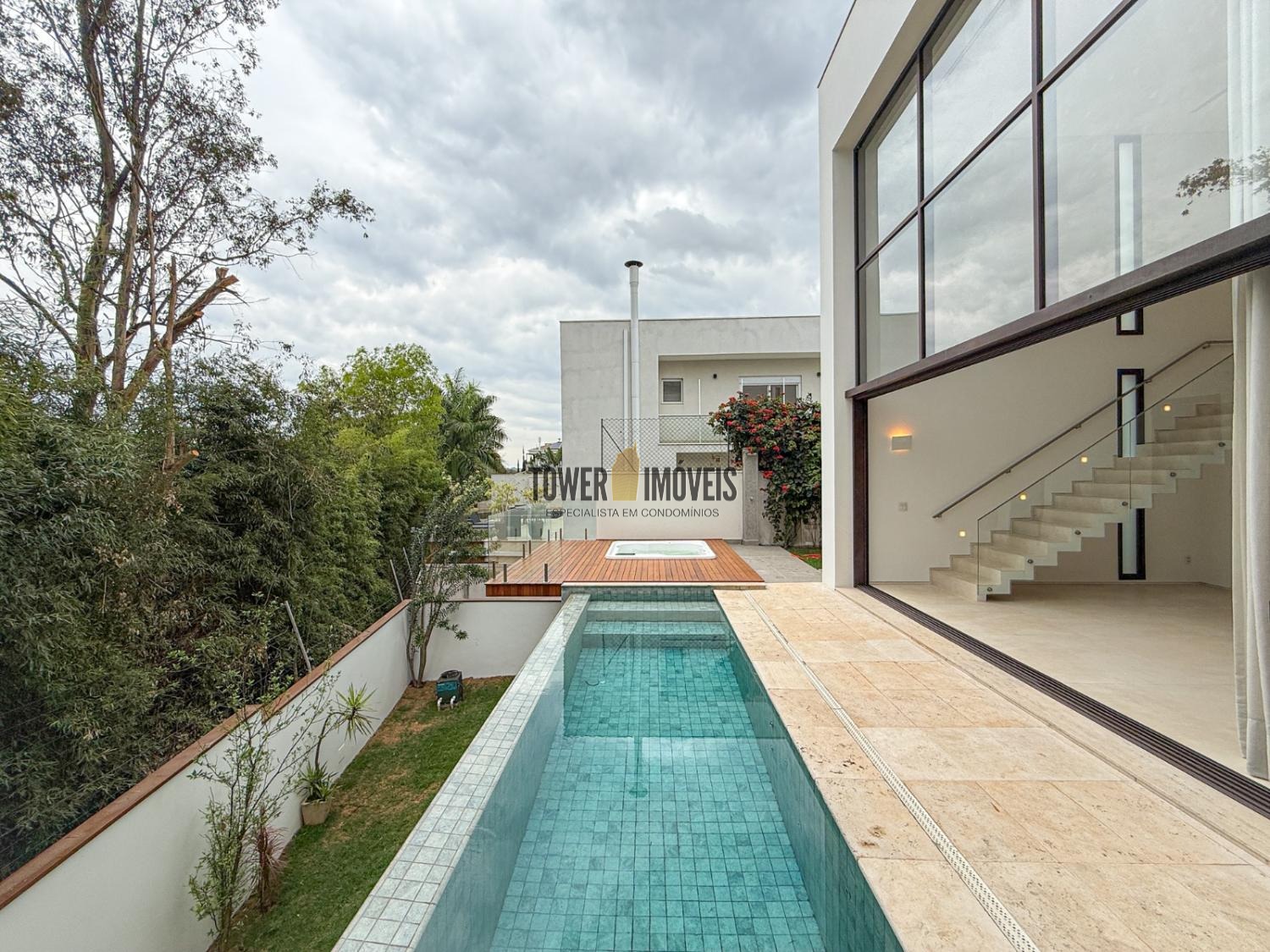 - Deck em cumaru e guarda-corpo em vidro