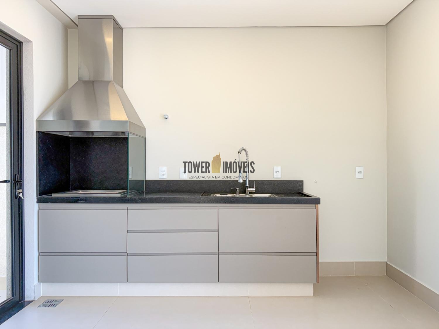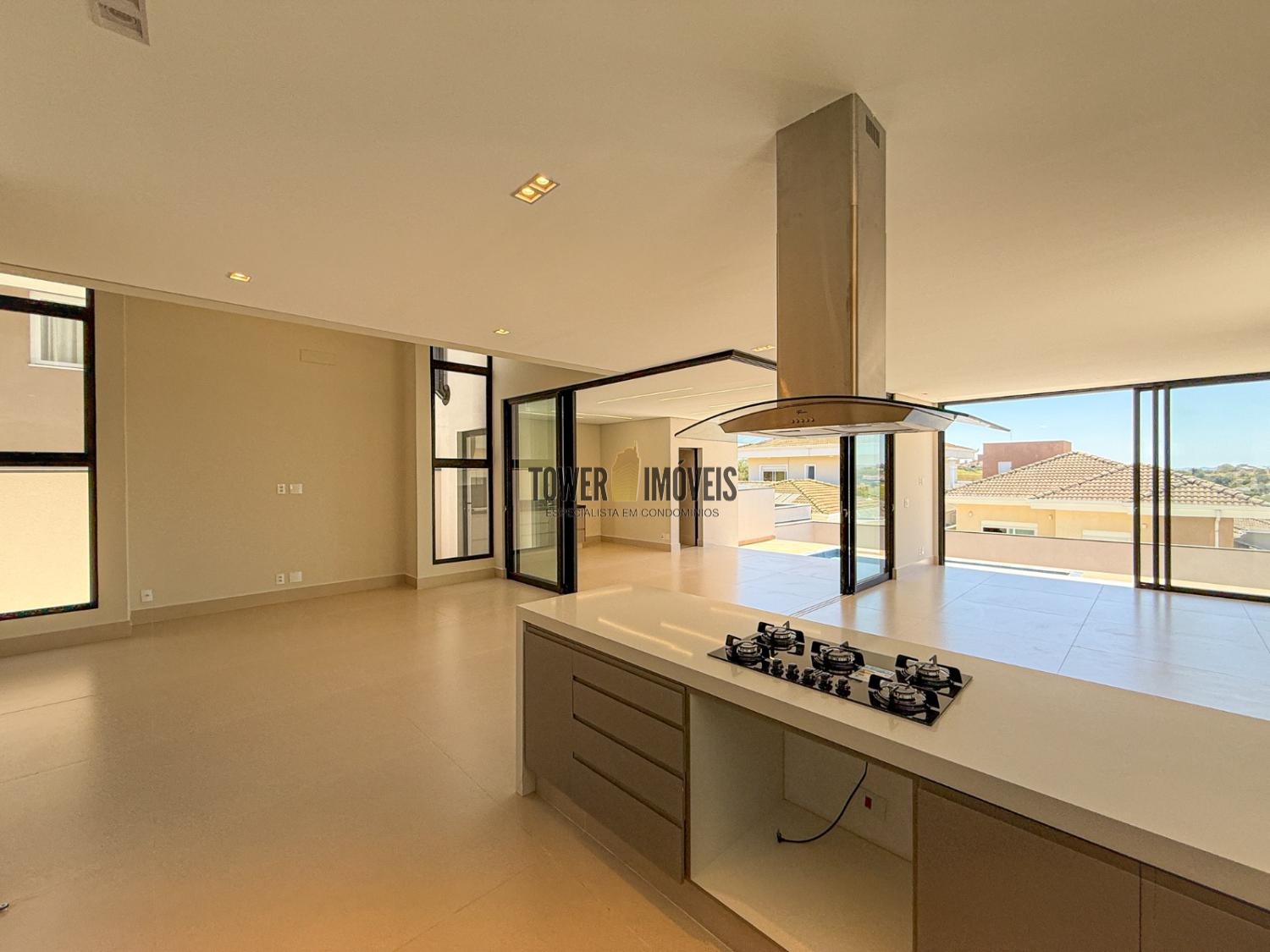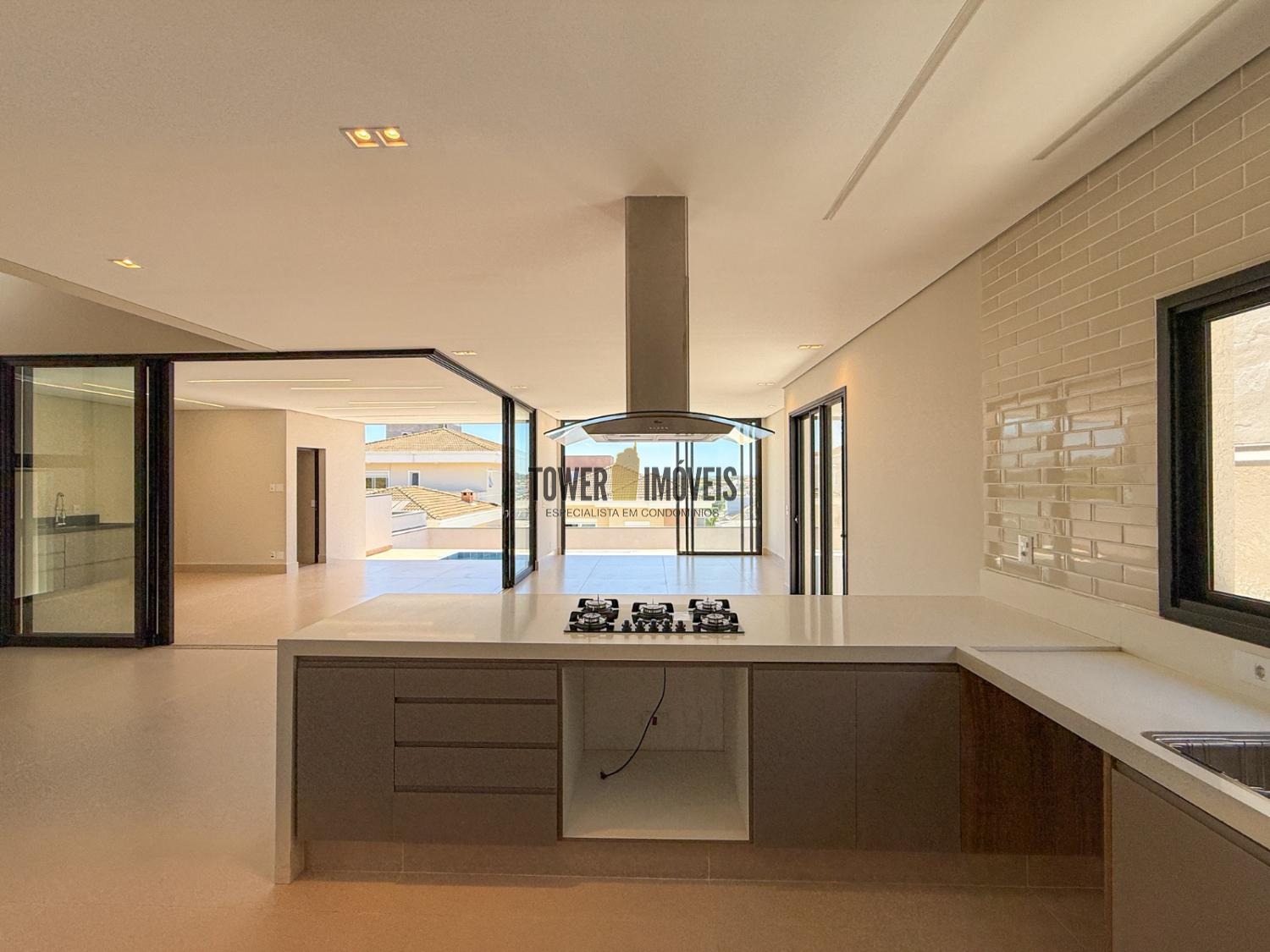 - Cozinha planejada com cooktop e coifa intalados, despensa com prateleiras em quartzo branco