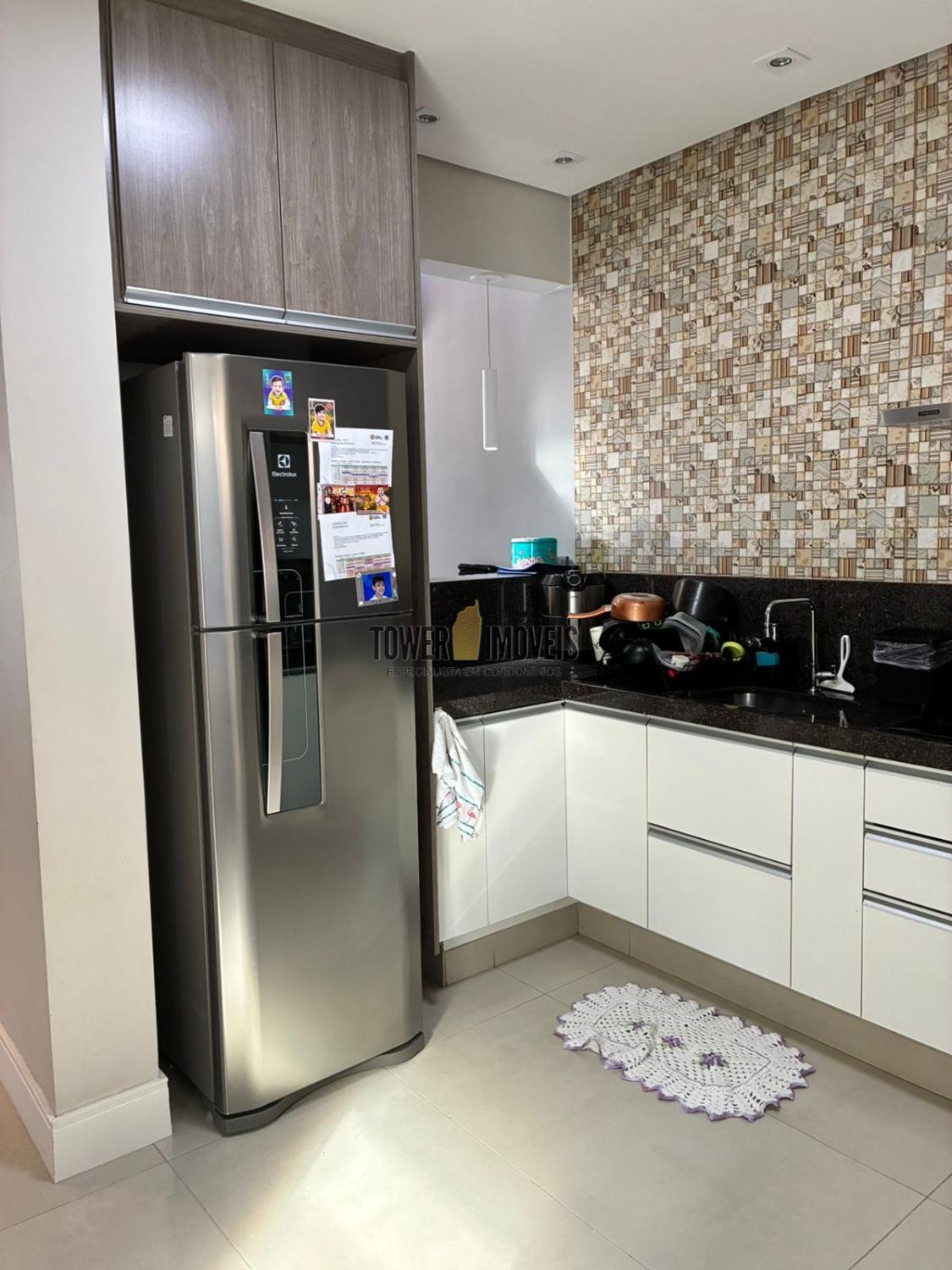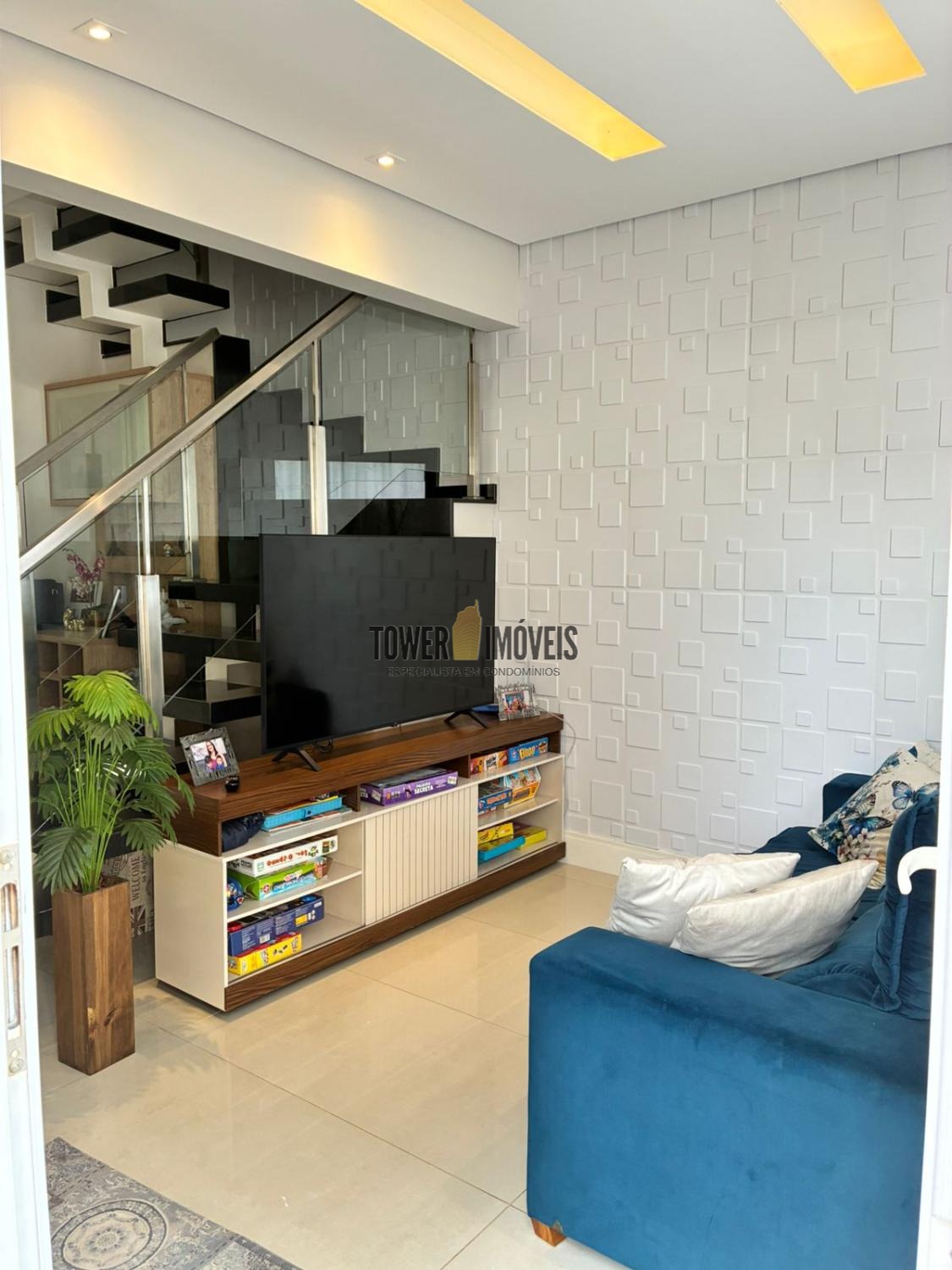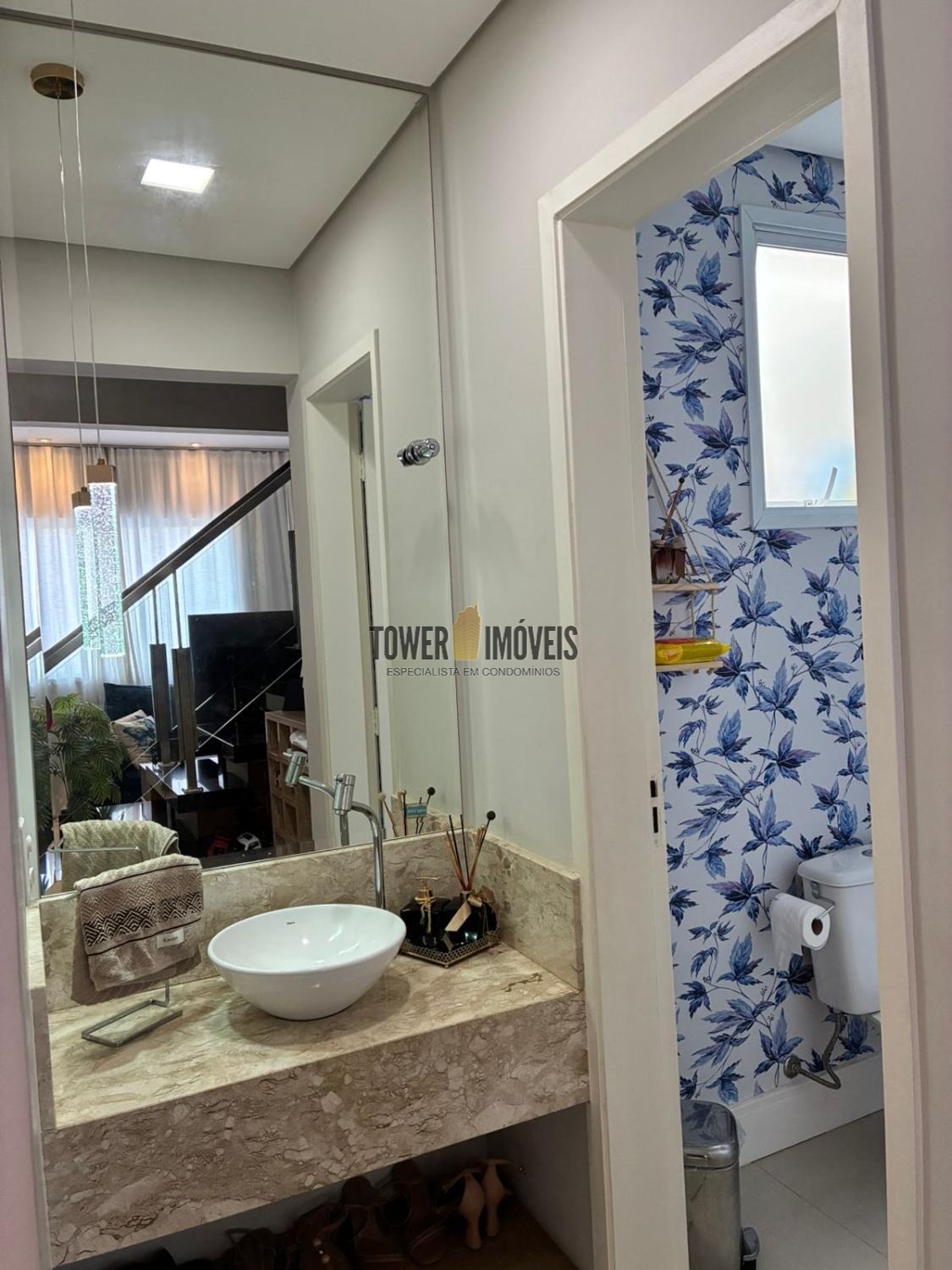 No piso inferior linda sala conceito aberto, sala de jantar, cozinha planejada e integrada à lavanderia.