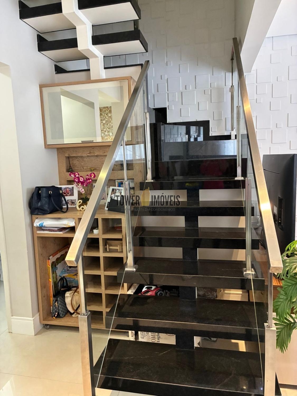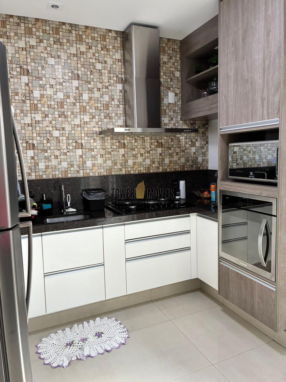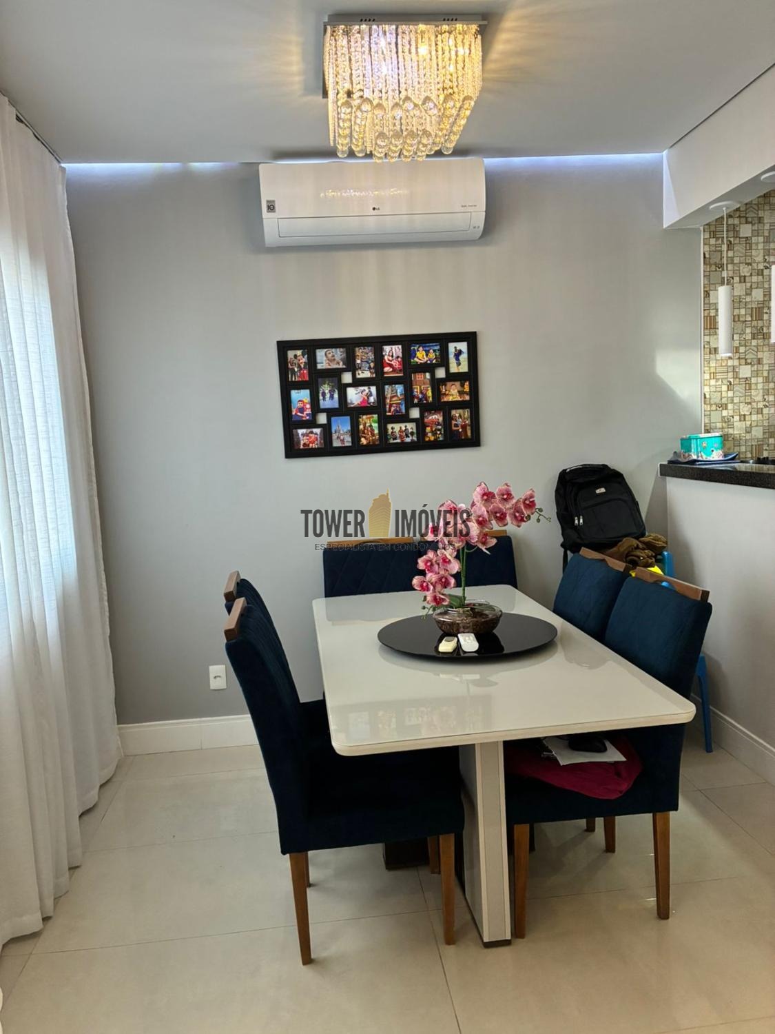 No piso inferior linda sala conceito aberto, sala de jantar, cozinha planejada e integrada à lavanderia.
