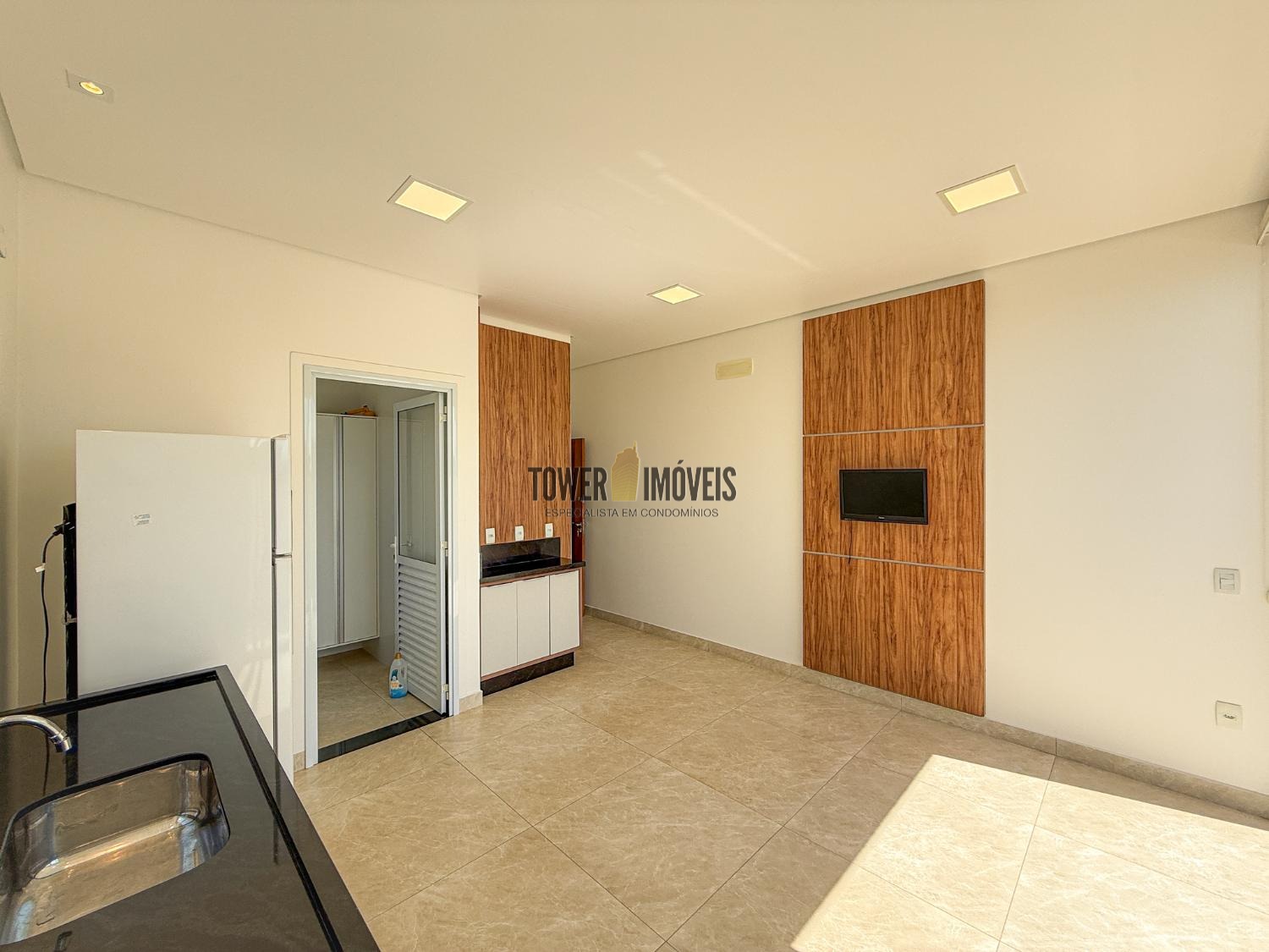 - Área gourmet com armários e preparação para churrasqueira à gás