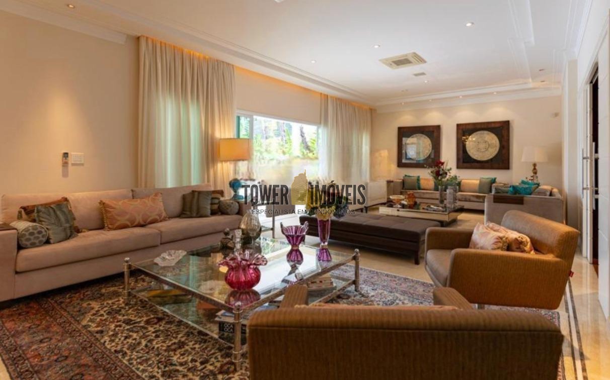 O imóvel dispõe de 5 amplas suítes, todas com hidromassagem e closet, garantindo privacidade e conforto absoluto para moradores e hóspedes. São 9 banheiros sociais, além de lavabo, e a casa é pet-friendly. Conta ainda com 10 vagas de garagem cobertas.