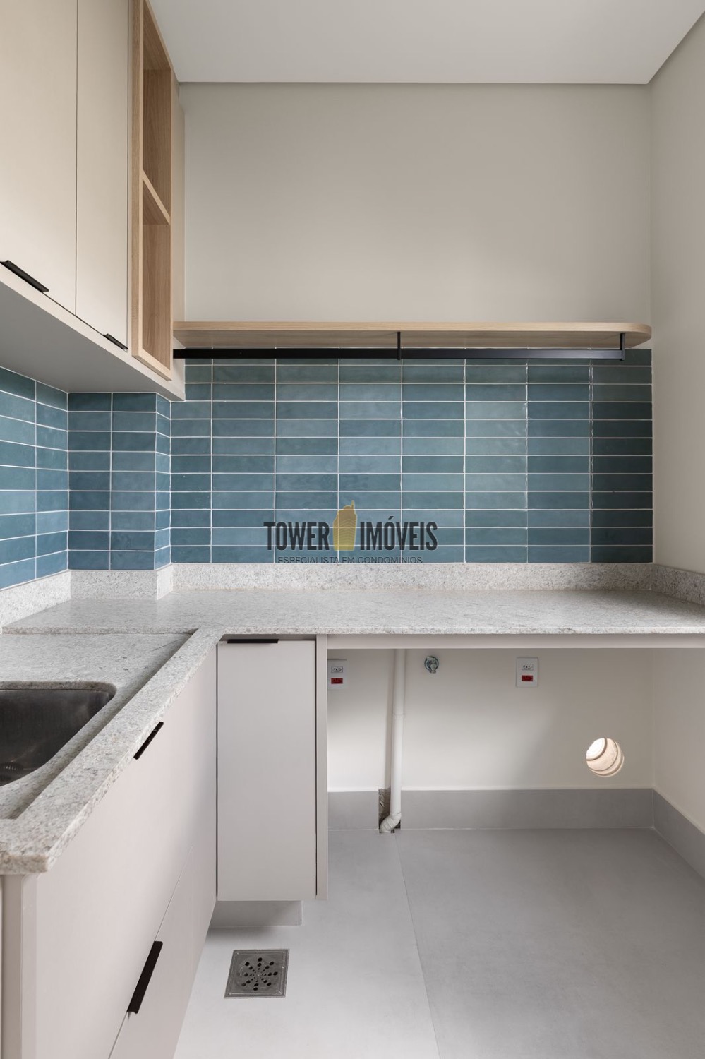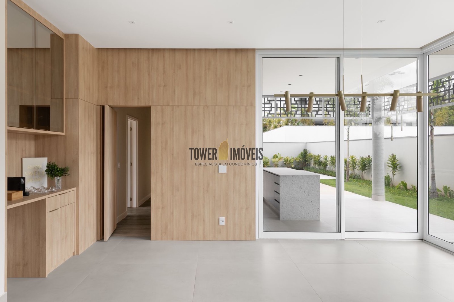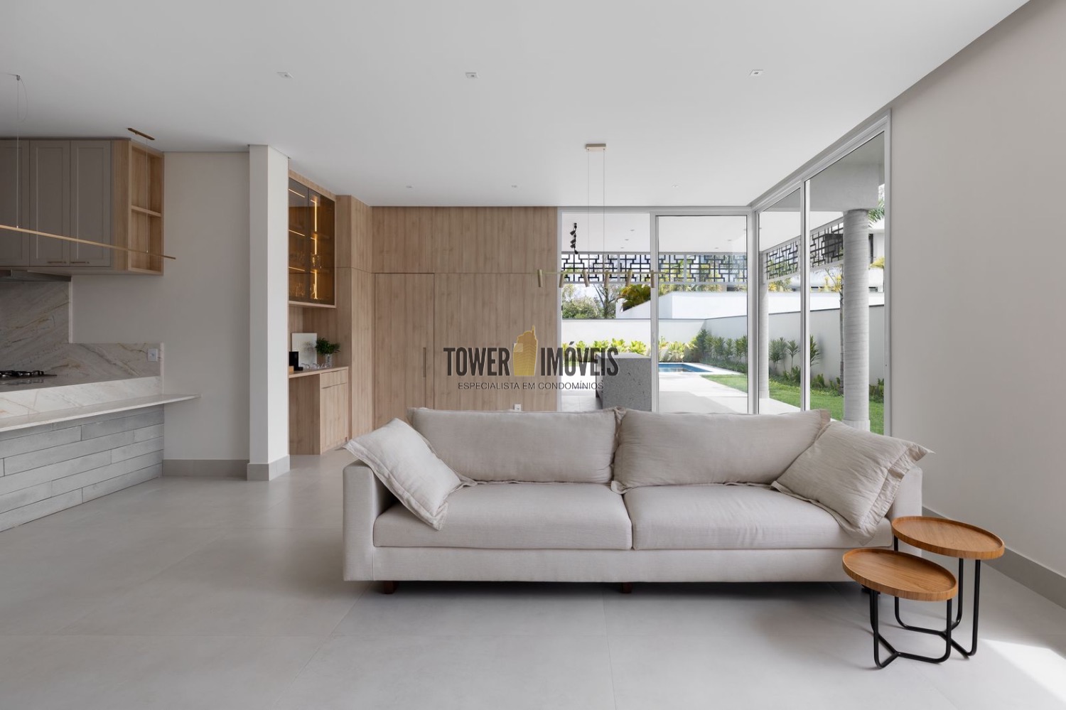 - Living amplo com cozinha americana e ilha + área gourmet com churrasqueira