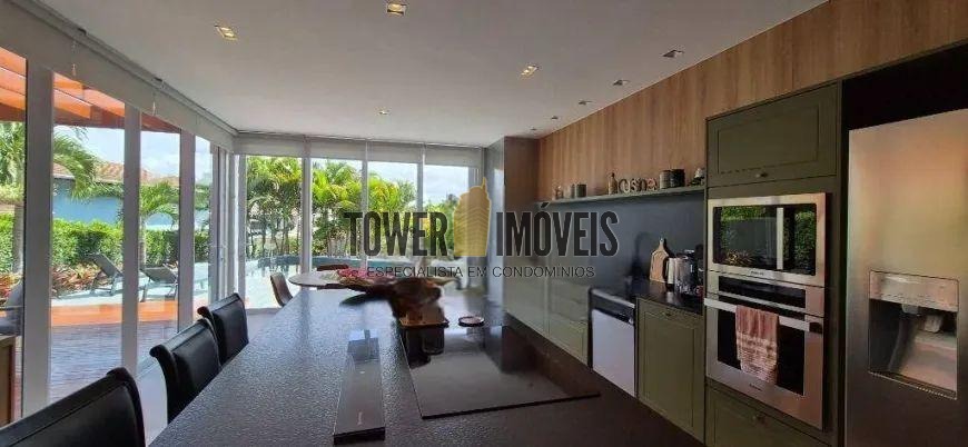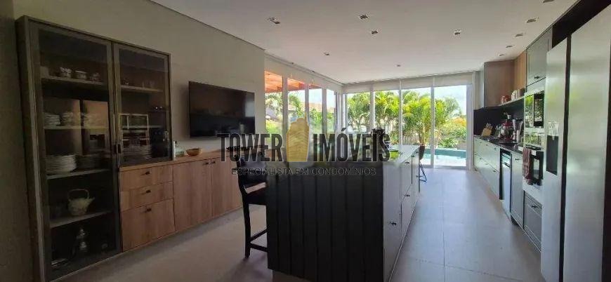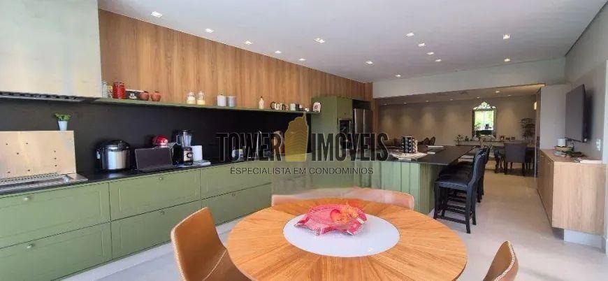 A cozinha é um verdadeiro destaque: extremamente convidativa, com marcenaria Bontempo, metais e utensílios de alto padrão, além de uma vista encantadora para o pomar — um ambiente perfeito para cafés demorados e boas conversas.