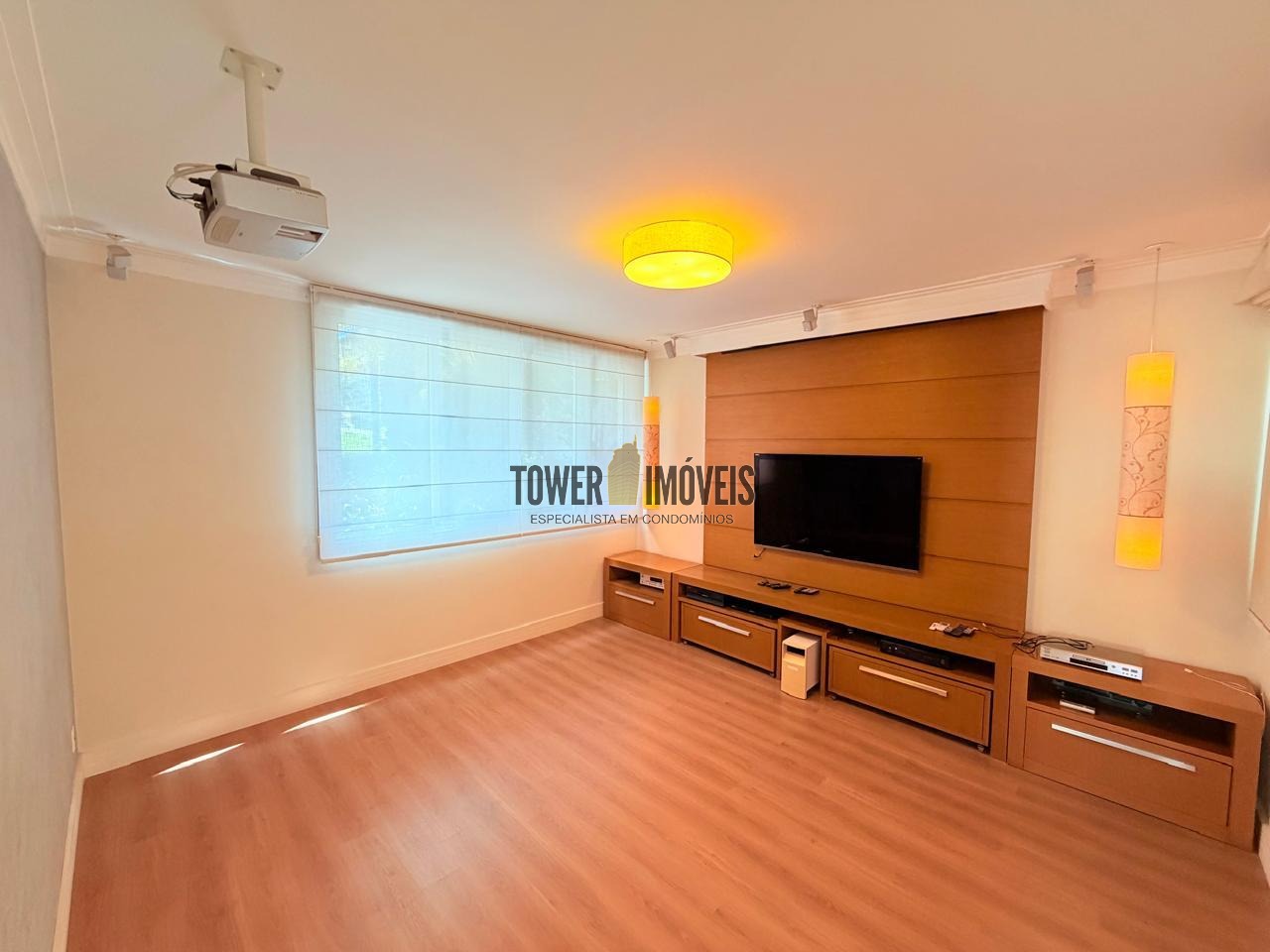 • Sala de TV espaçosa com projetor instalado e cortinas black-out