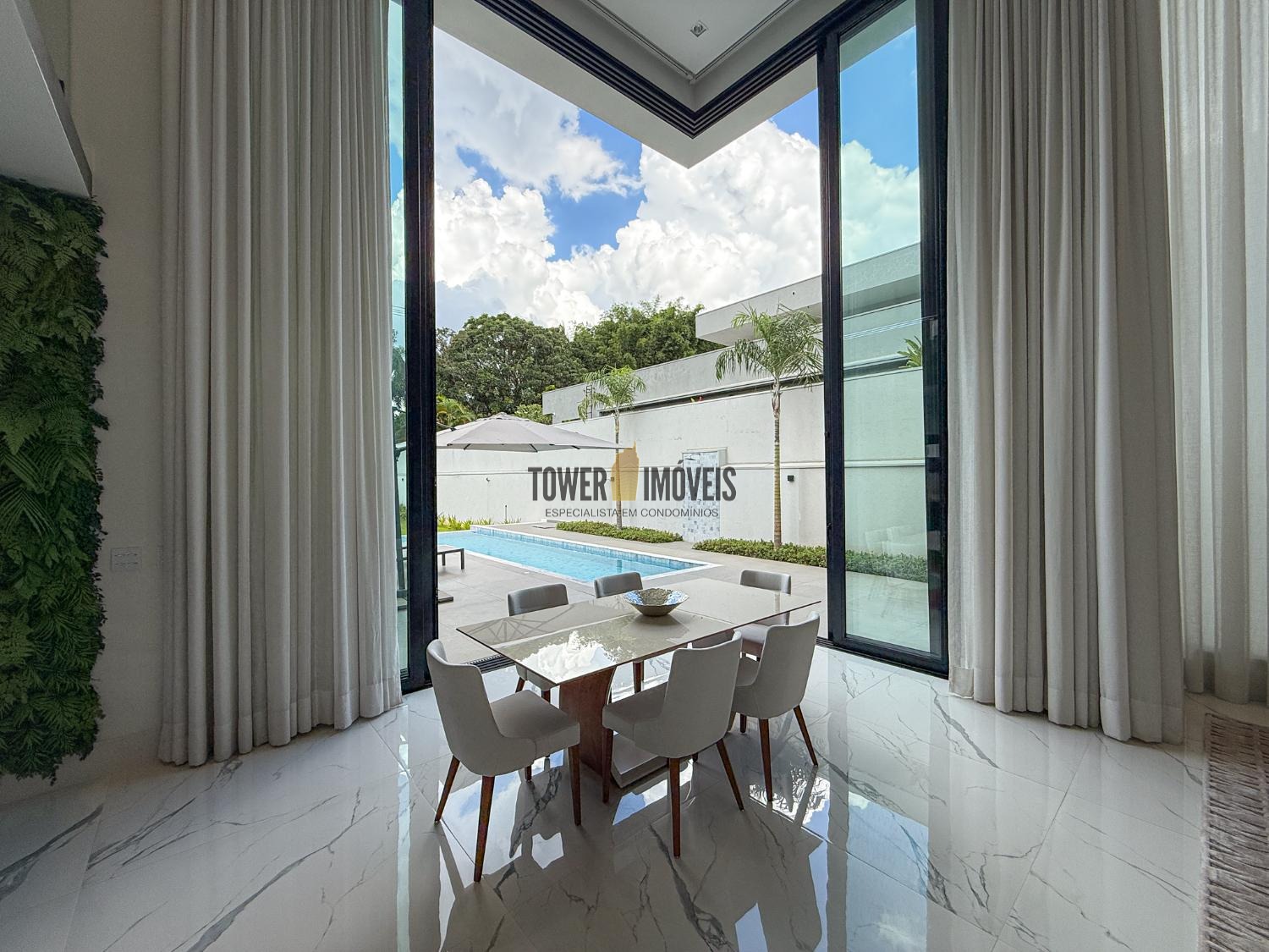 - Sala de jantar com vista para a piscina