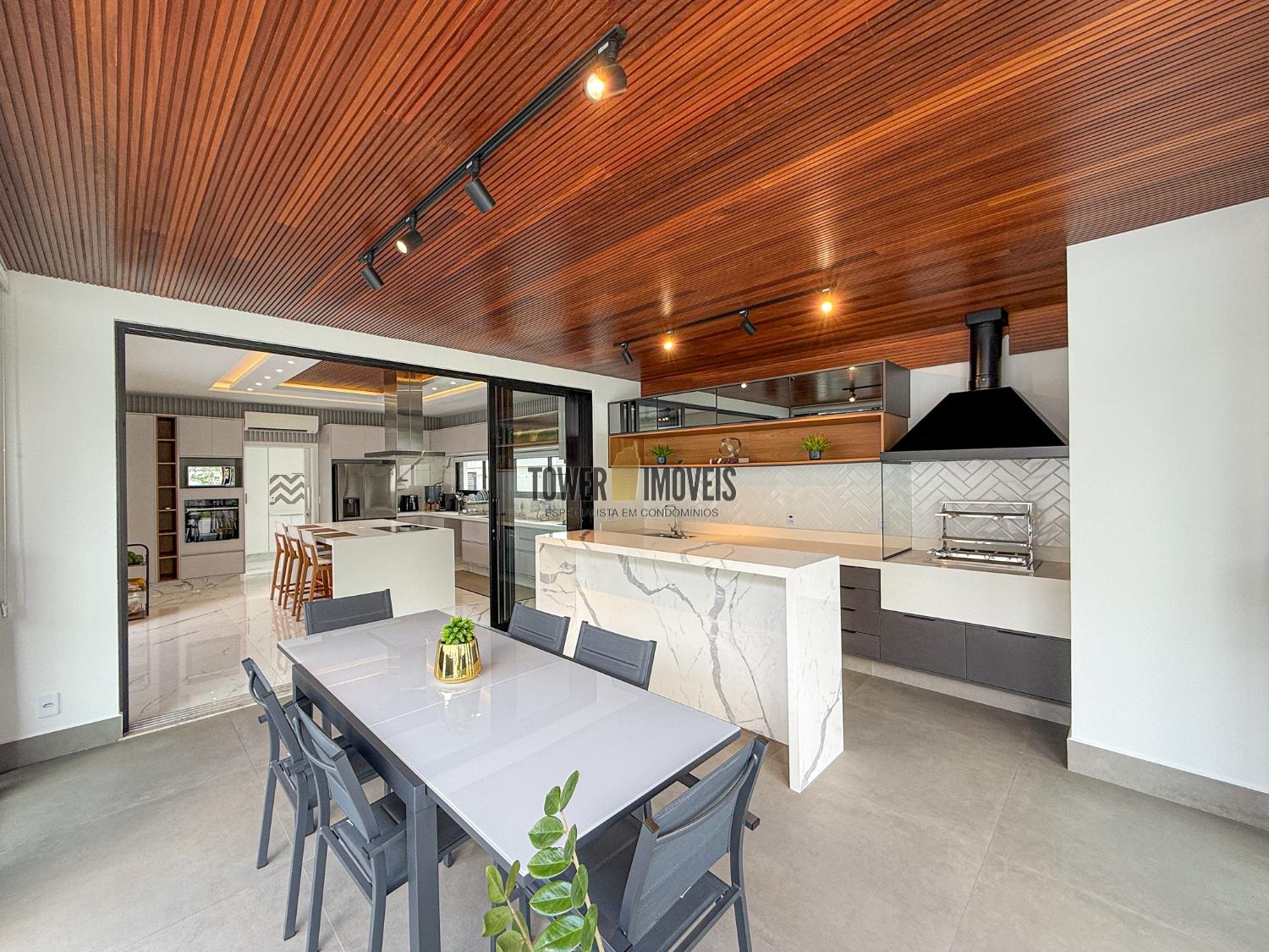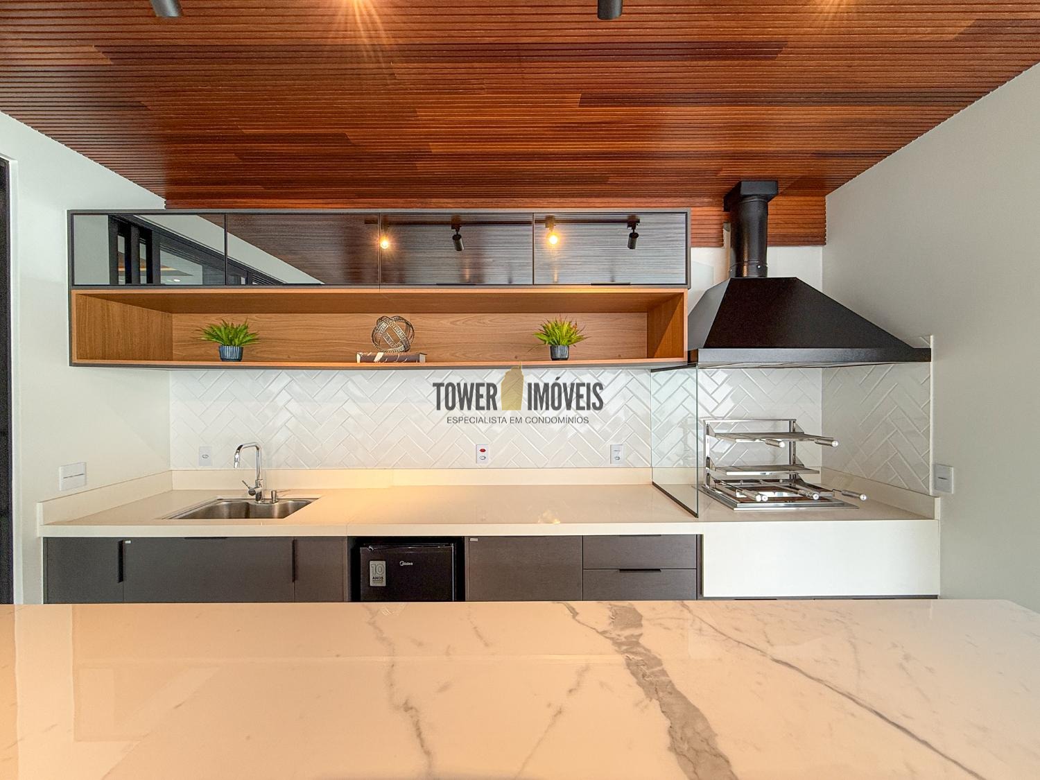 - Espaço gourmet integrado com churrasqueira à carvão