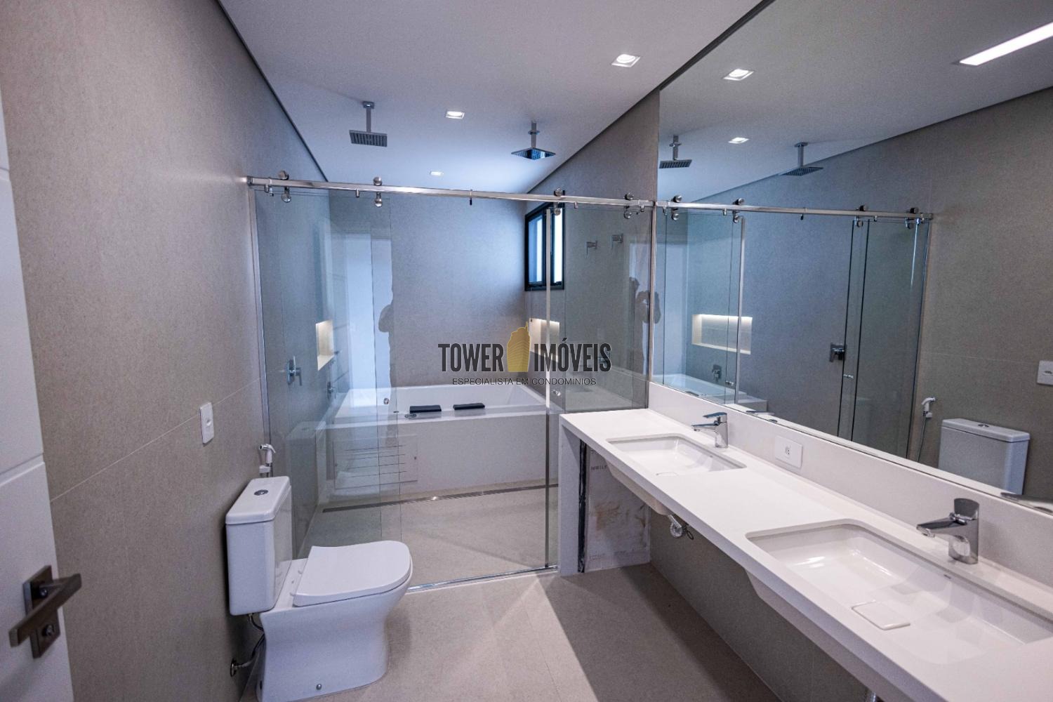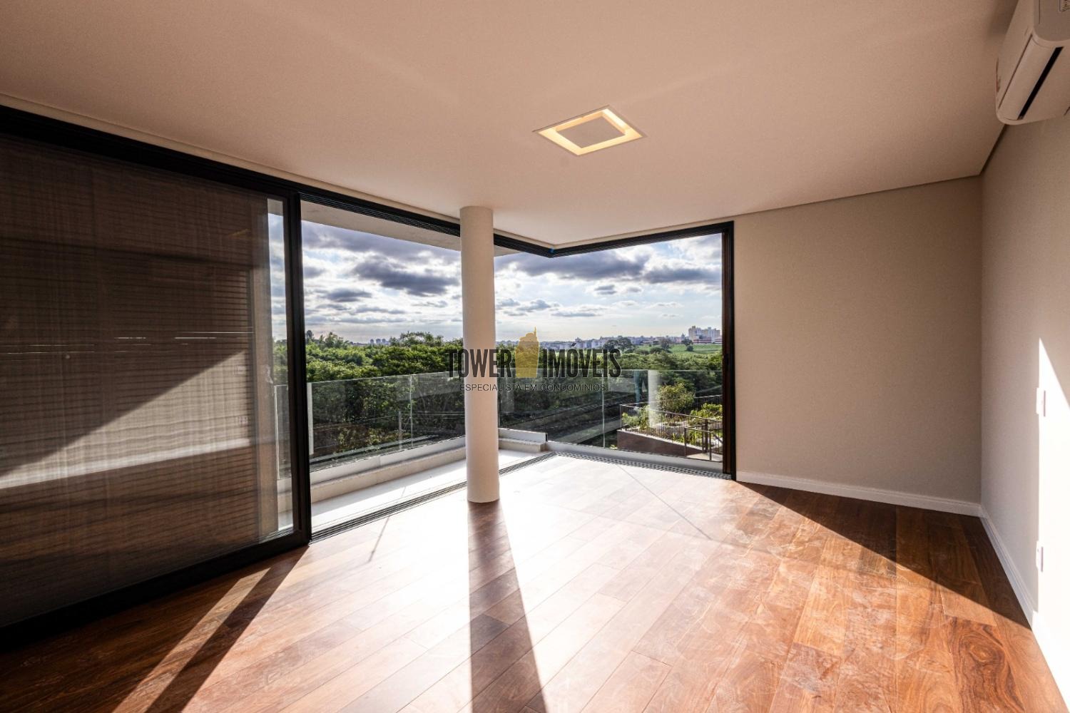 No piso térreo, um elegante hall de entrada conduz a 4 suítes espaçosas, cuidadosamente distribuídas para garantir privacidade e conforto. A suíte master é um verdadeiro refúgio, com cuba e chuveiros duplos, além de uma relaxante banheira de hidromassagem. O pavimento conta ainda com roupeiro e garagem para até 4 veículos.