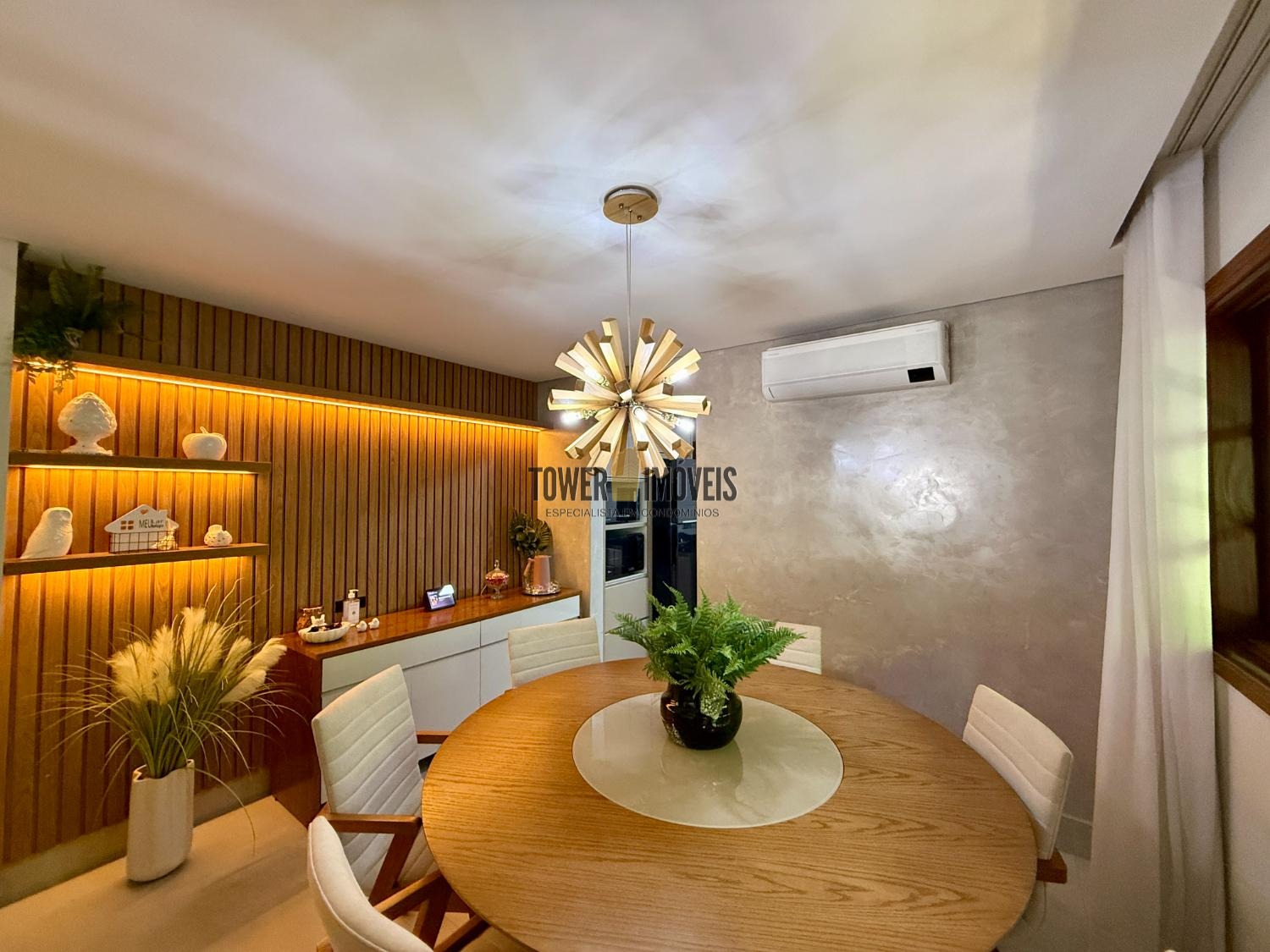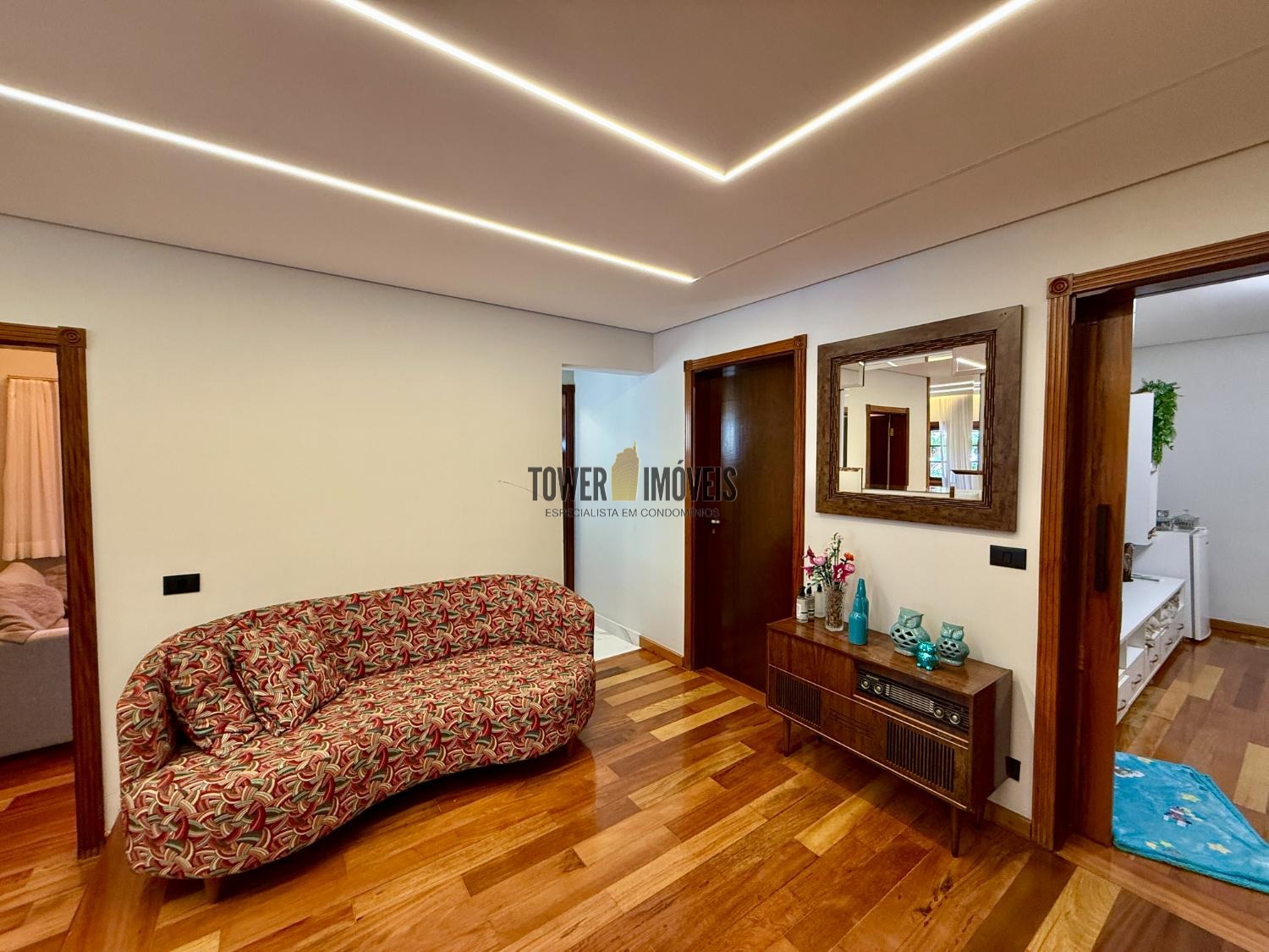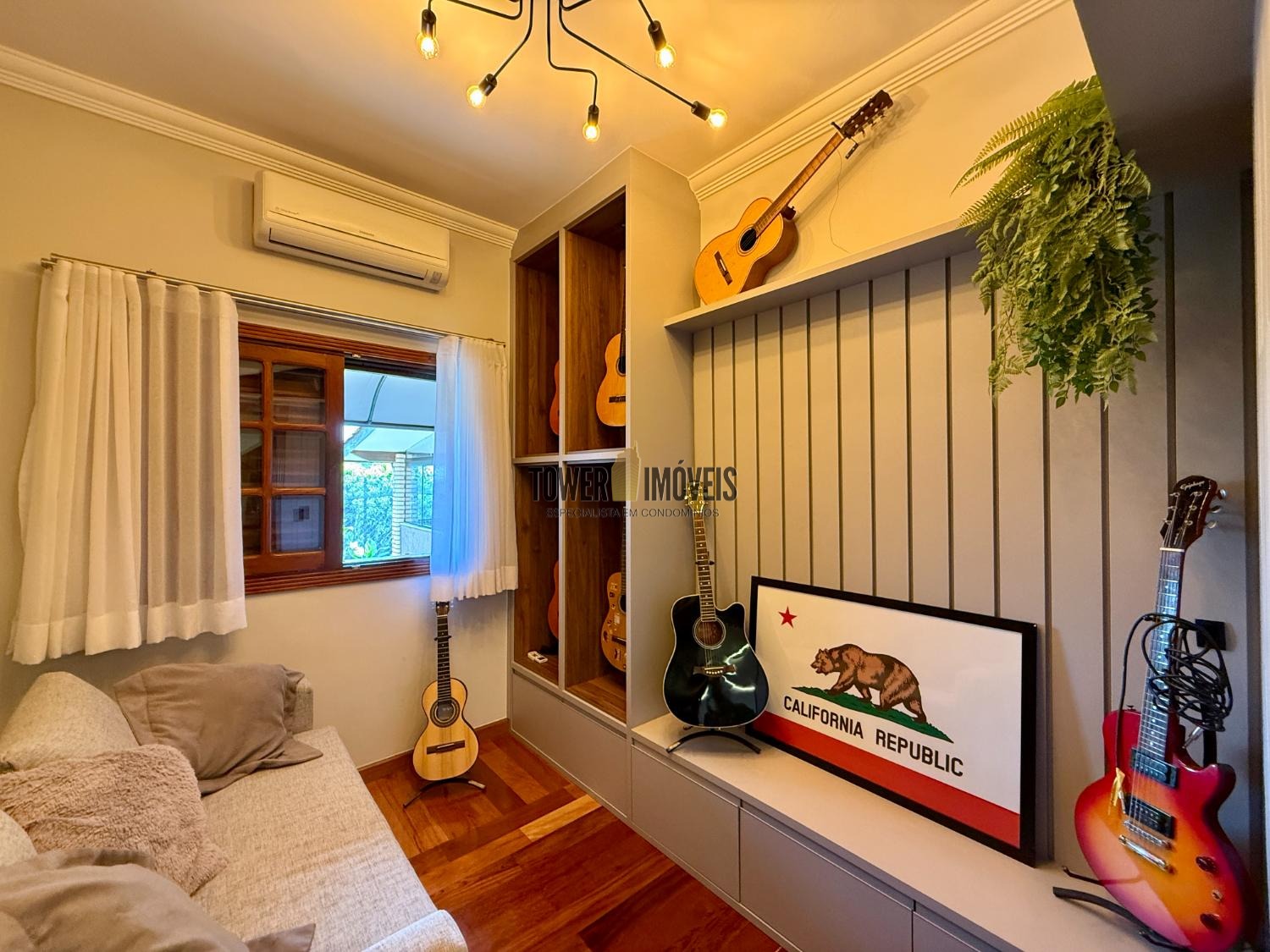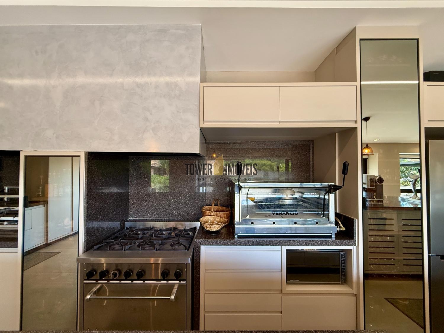 Piso Inferior: Um layout pensado para a convivência e o bem estar. Conta com cozinha planejada, despensa, sala de jantar, home theater e sala de TV. Para os momentos de lazer e cuidado pessoal, oferece uma adega exclusiva, academia privativa, uma charmosa sala de violão, lavabo e uma suíte completa com closet.