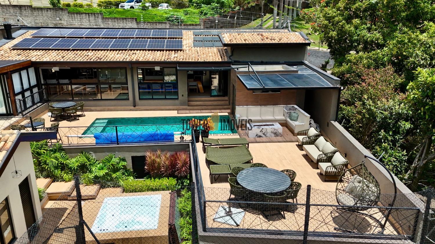 Destaques Estruturais: A casa é um exemplo de eficiência tecnológica, equipada com energia fotovoltaica e solar, poço artesiano, sistema de boiler e segurança monitorada completa.