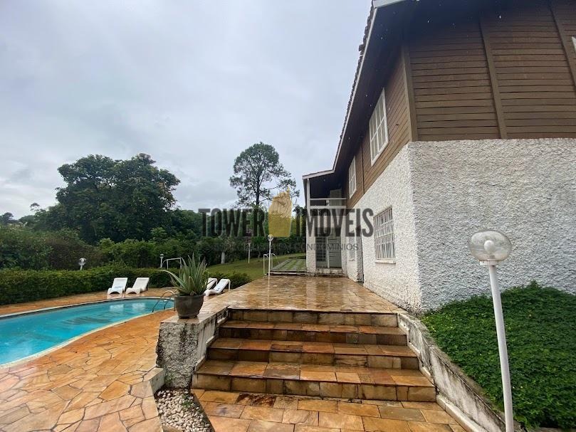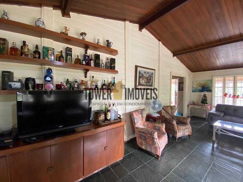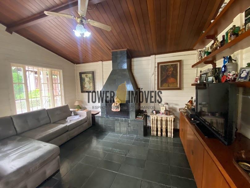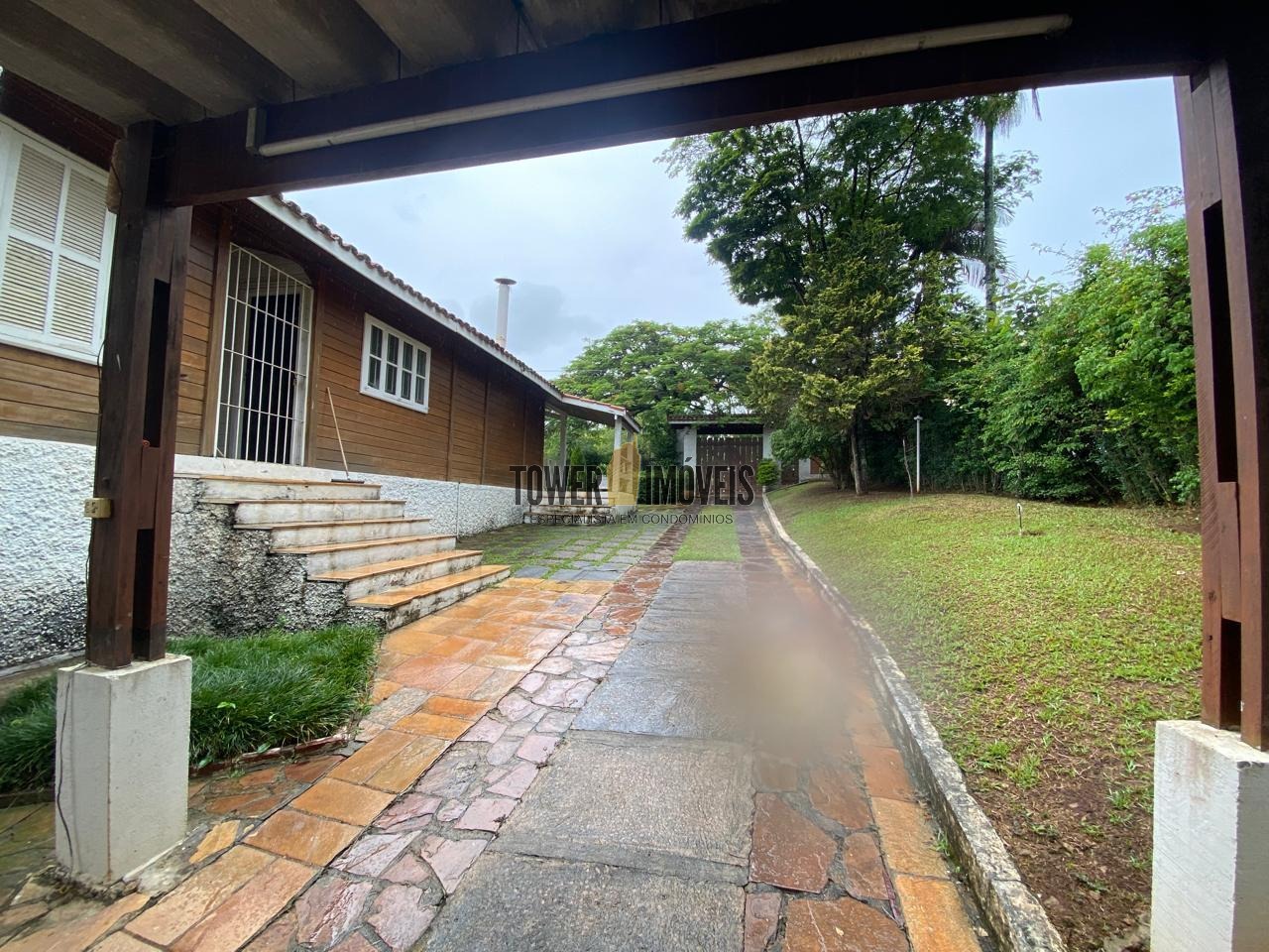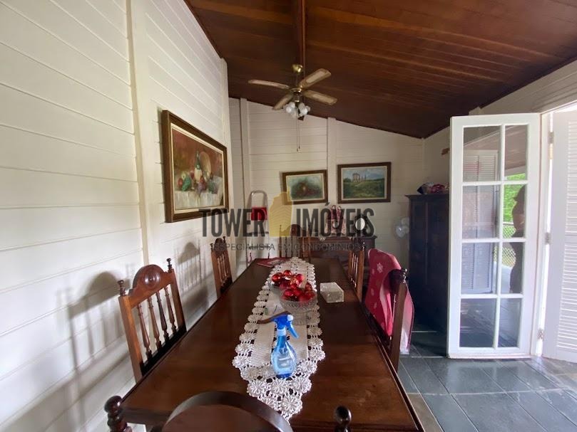 Casa de madeira toda avarandada, com 4 dormitórios com armários, roupeiro no corredor, sala ampla para 2 ambientes com lareira, cozinha planejada com despensa, espaço gourmet com churrasqueira, piscina, salão de festa, baias de cavalos, pomar, casa de caseiro. Possui 02 lotes. asfalto, Local bem arborizado.