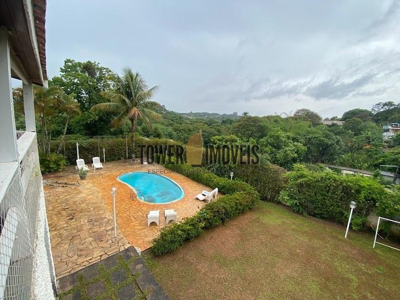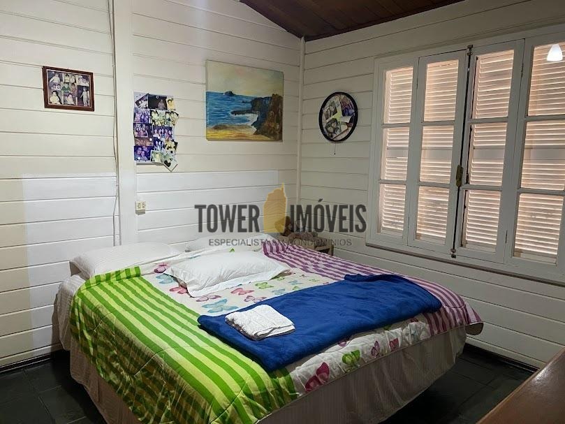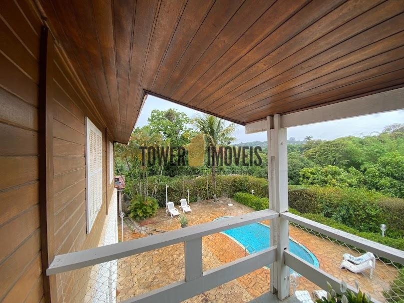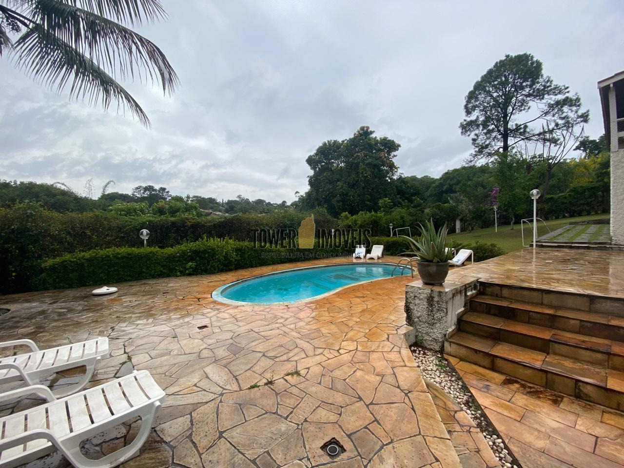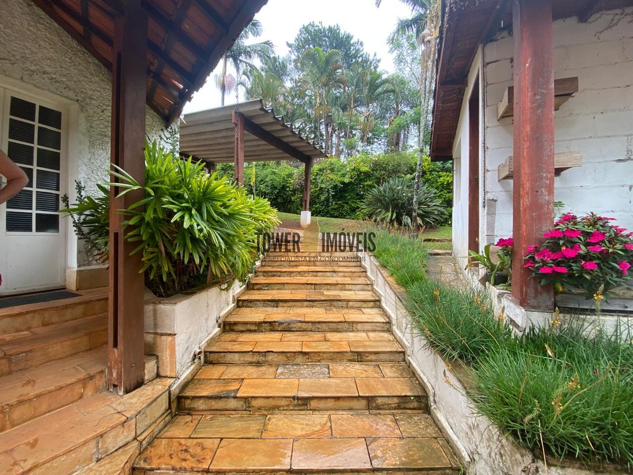 Casa de madeira toda avarandada, com 4 dormitórios com armários, roupeiro no corredor, sala ampla para 2 ambientes com lareira, cozinha planejada com despensa, espaço gourmet com churrasqueira, piscina, salão de festa, baias de cavalos, pomar, casa de caseiro. Possui 02 lotes. asfalto, Local bem arborizado.